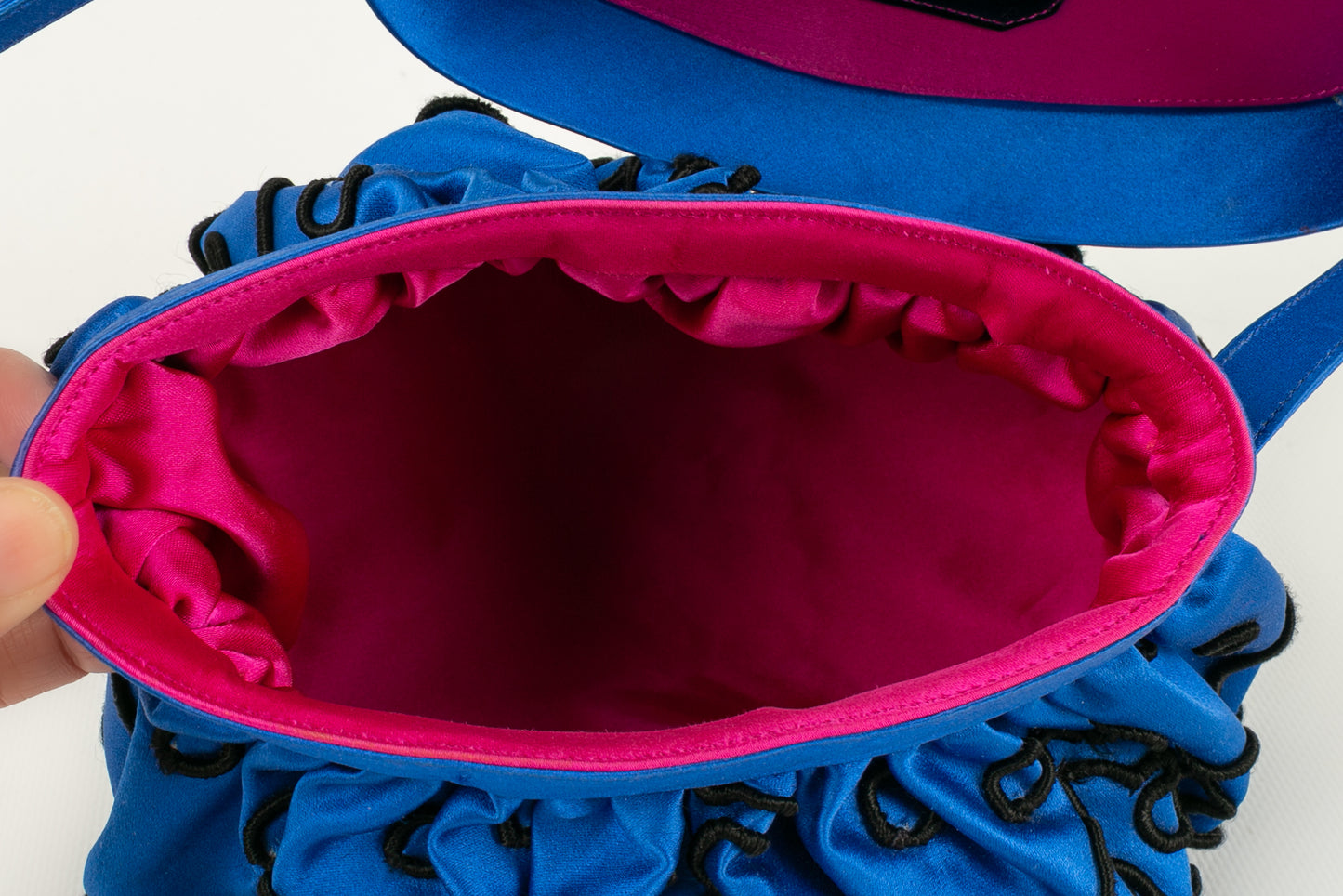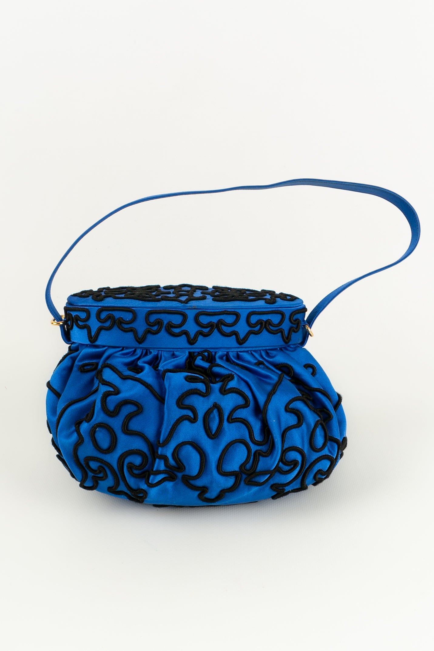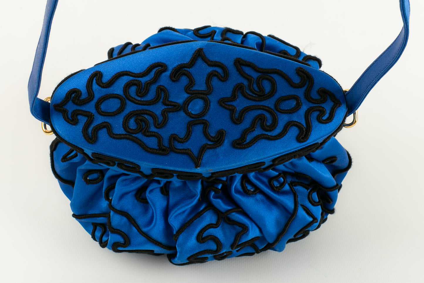 RENAUD PELLEGRINO - (Made in France) Blue silk bag with black trimmings.