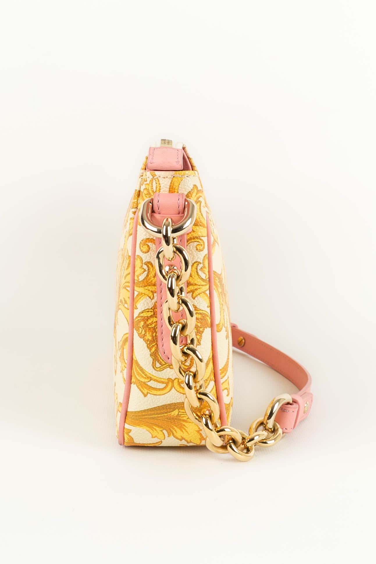 VERSACE - (Made in Italy) Leather and canvas bag illustrated with the mythical head of Gorgon.