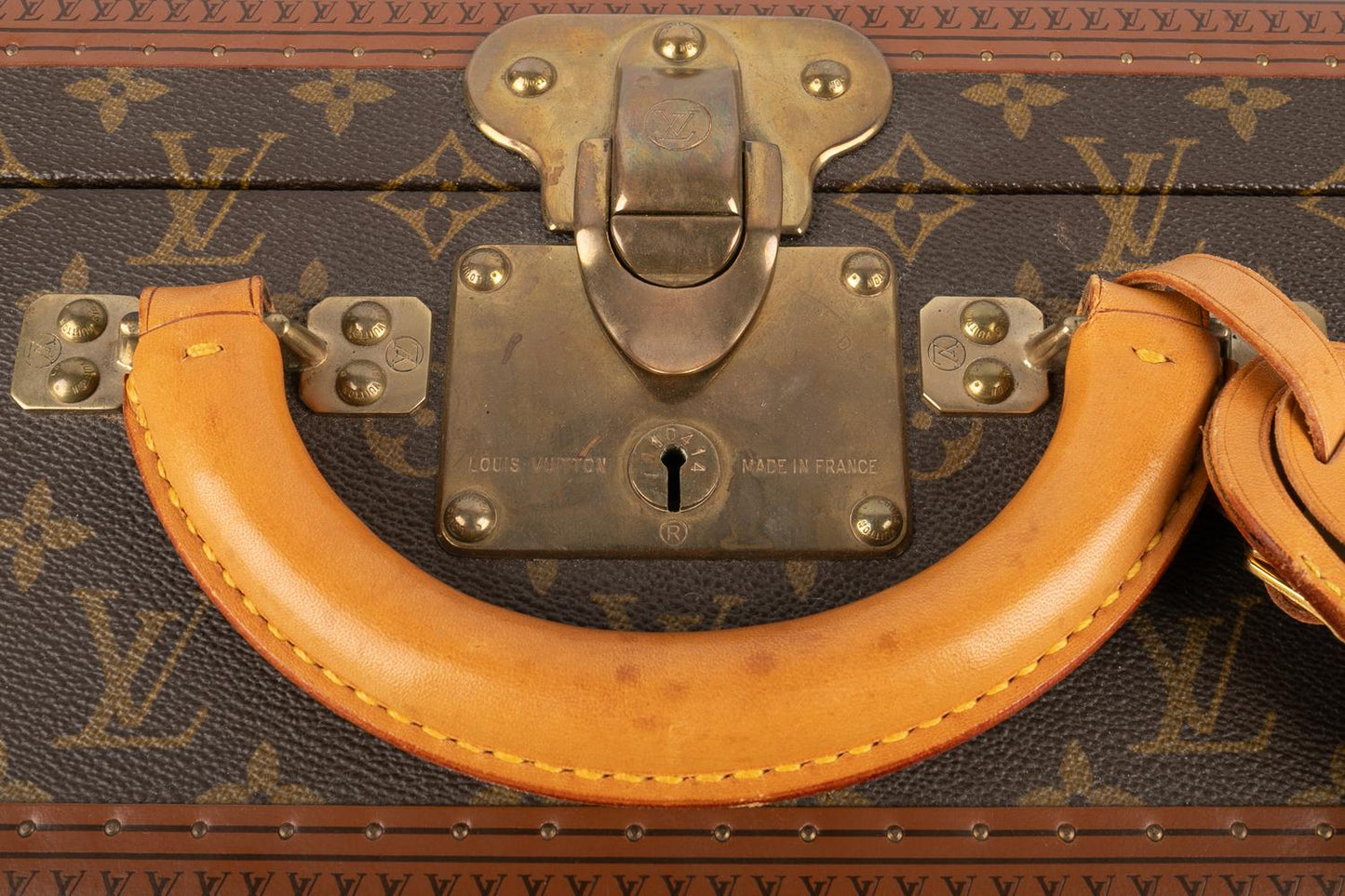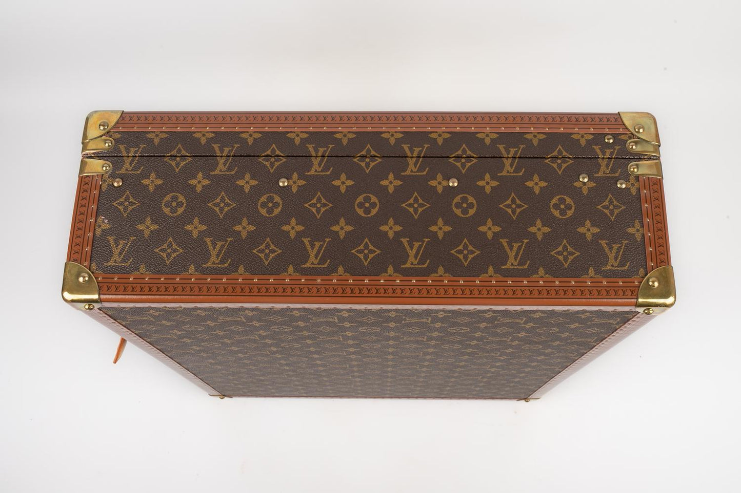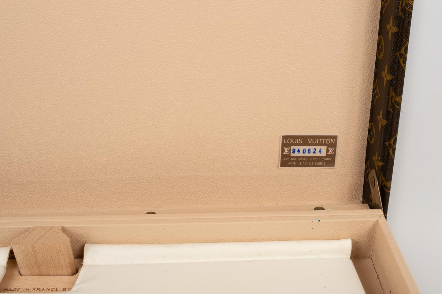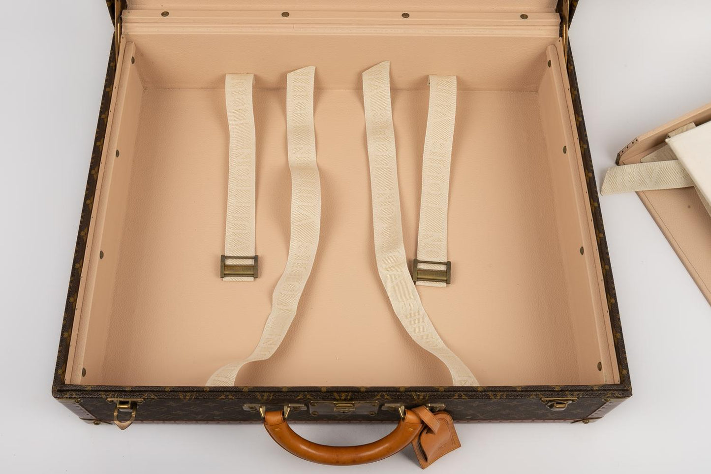 LOUIS VUITTON -Monogram canvas 'twin' suitcase with natural leather, lozine edges, golden brass fastener and ties. The interior is partitioned with washable beige Vuittonite. Louis Vuitton avenue Marceau n°940624 - Lock n°1010414.
