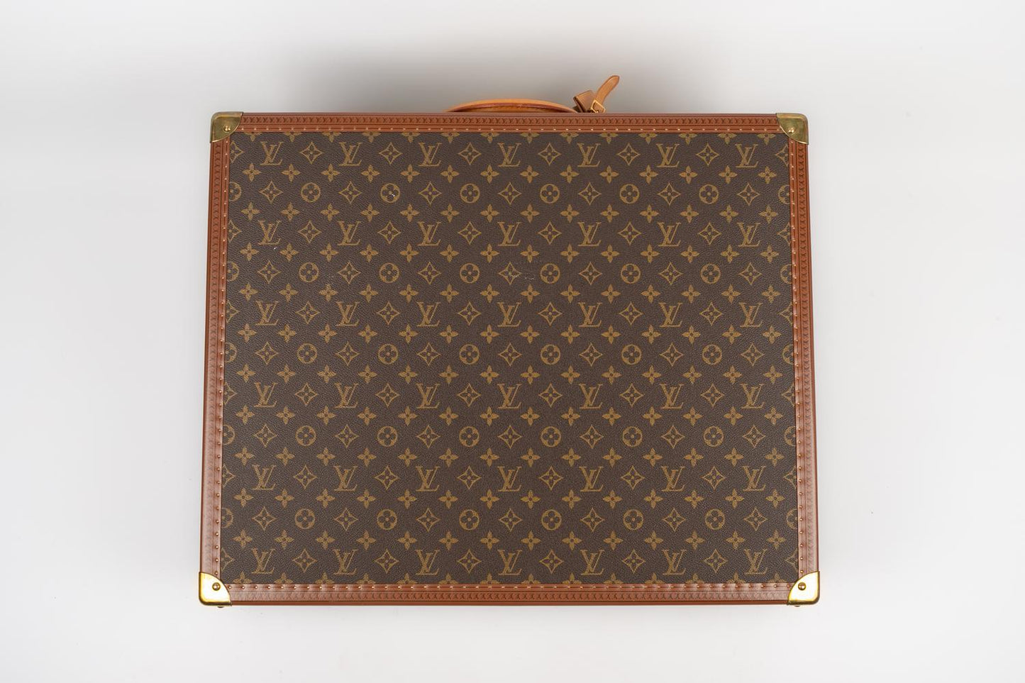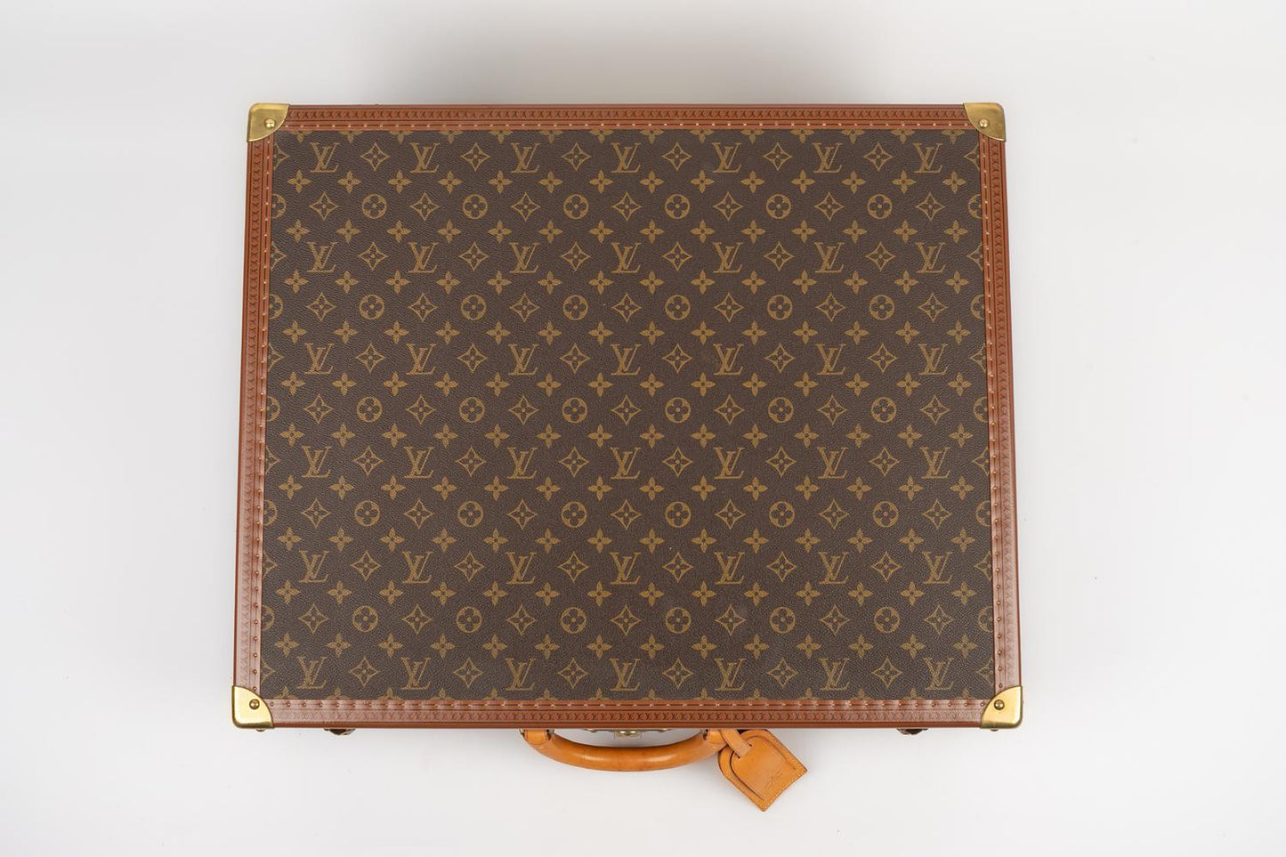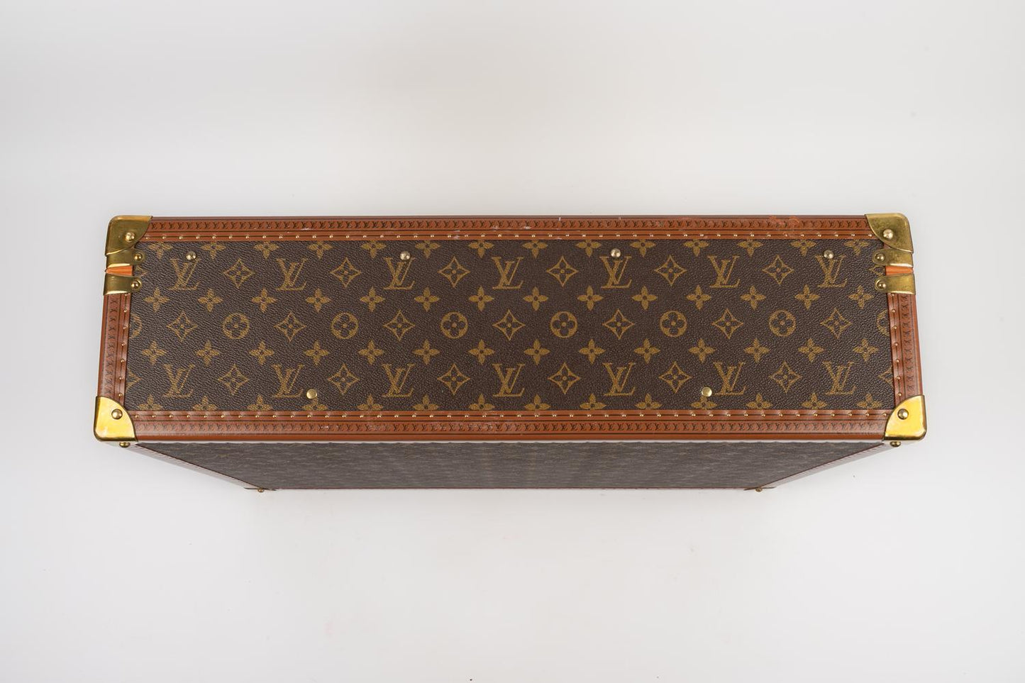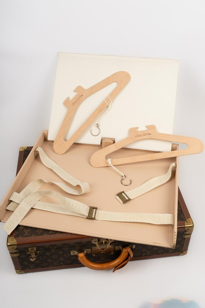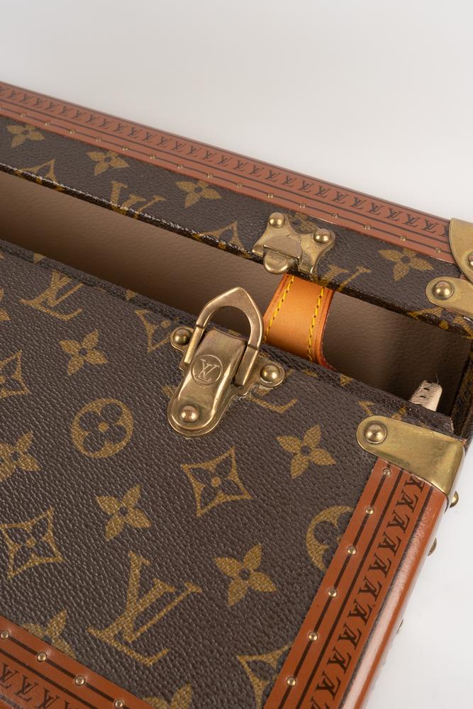 LOUIS VUITTON -Monogram canvas 'twin' suitcase with natural leather, lozine edges, golden brass fastener and ties. The interior is partitioned with washable beige Vuittonite. Louis Vuitton avenue Marceau n°940624 - Lock n°1010414.