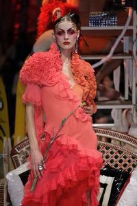 The British fashion designer John Galliano is famous for his overjoyed imagination and theatrical creations.