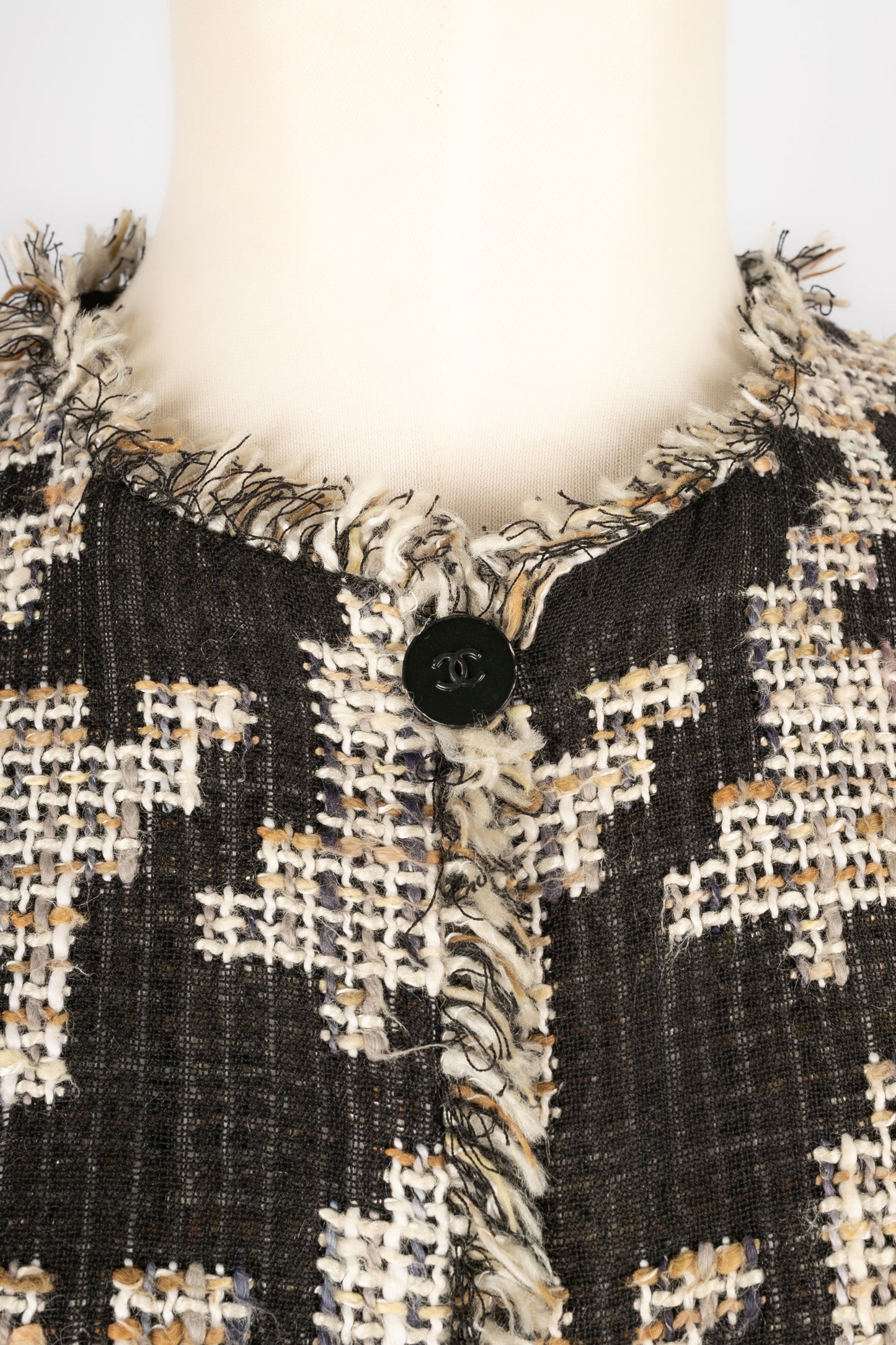 CHANEL - (Made in France) Tweed jacket with a silk lining. 40FR size indicated. 2005 Spring-Summer Collection under the direction of Karl Lagerfeld.