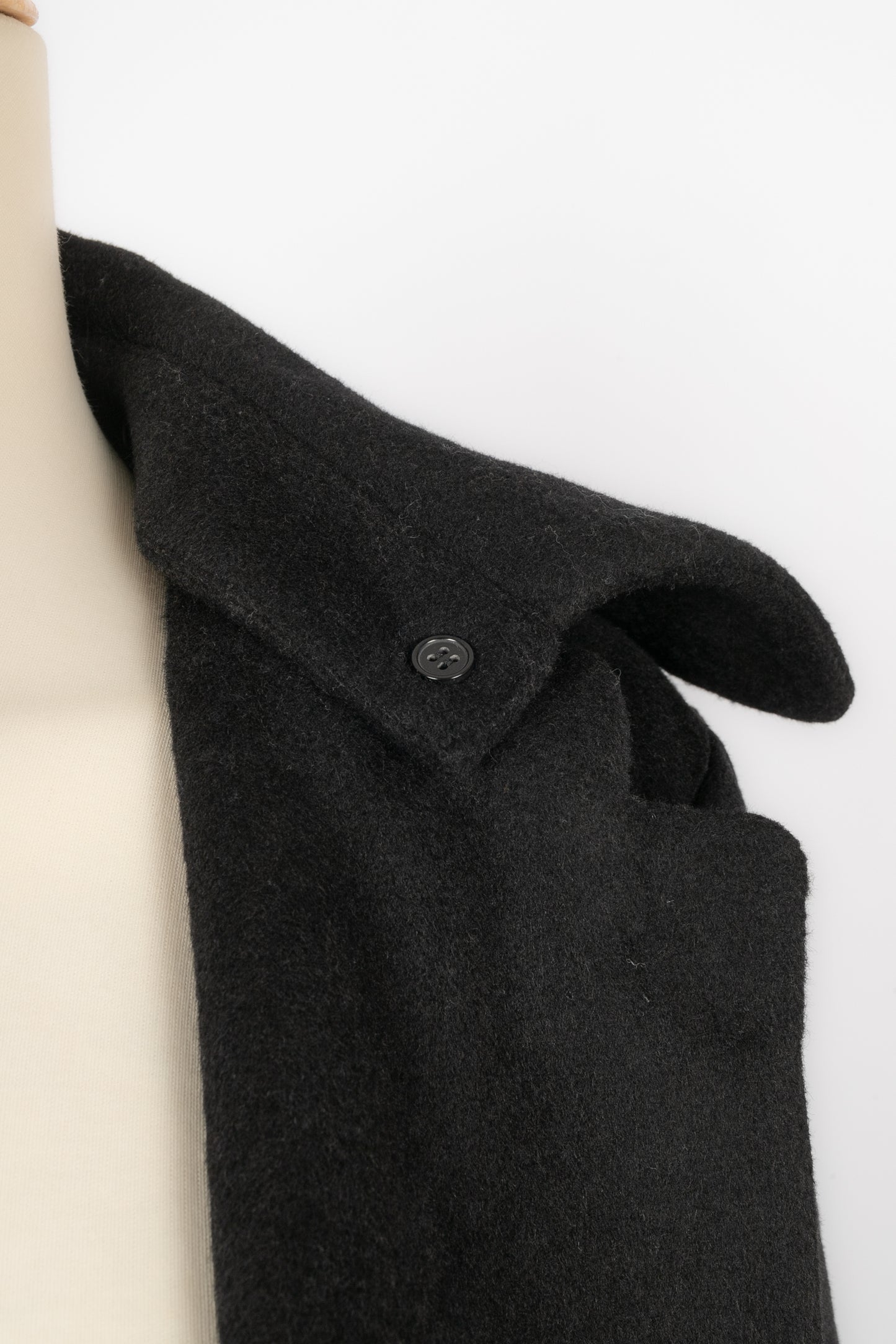 KARL LAGERFELD - Black blended wool jacket with a removable collar decorated with costume pearly cabochons. L size indicated.