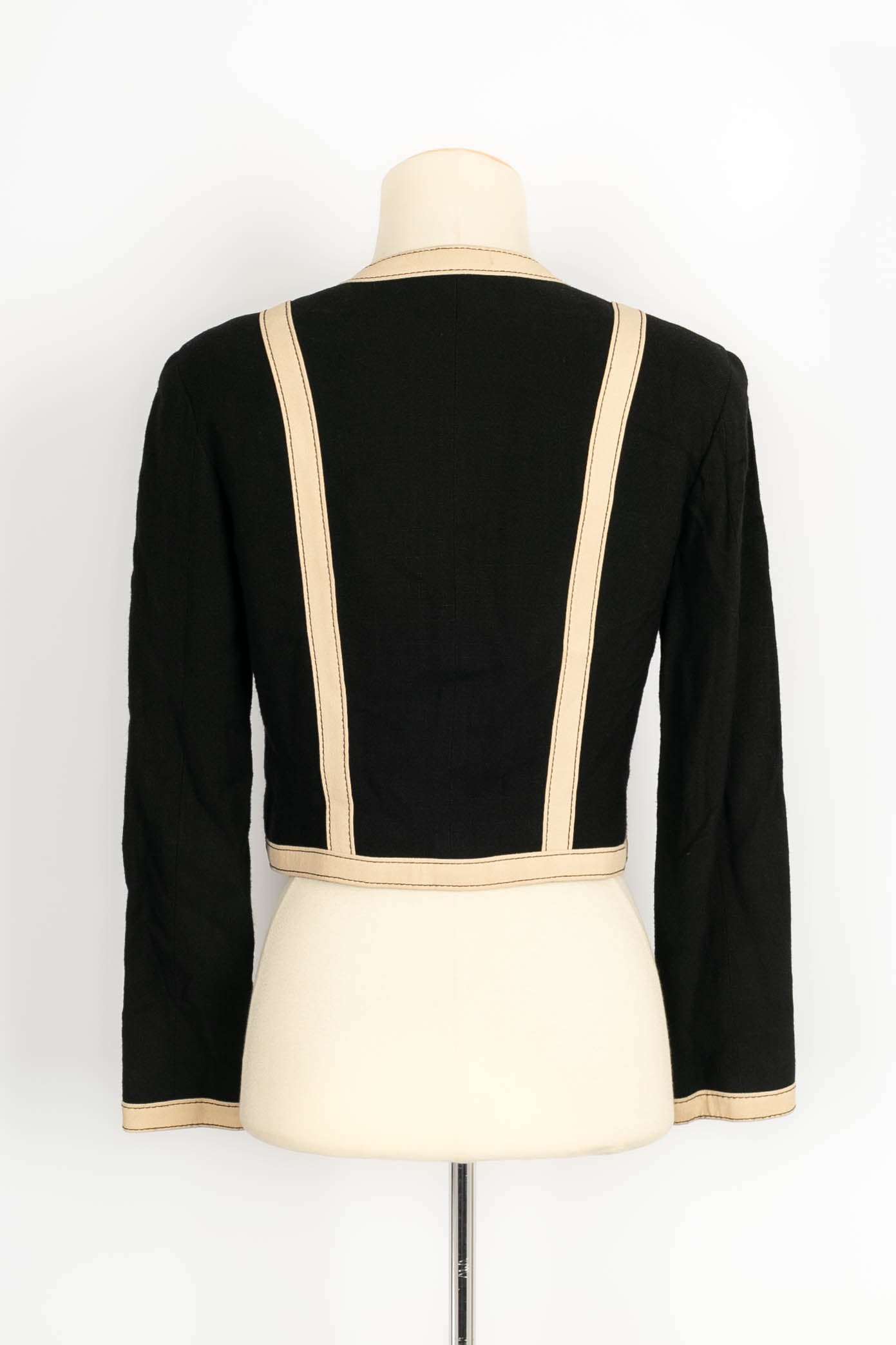 MOSCHINO -(Made in Italy) Black and beige short jacket decorated with two rows of flowers. No size indicated, it fits a 34FR.