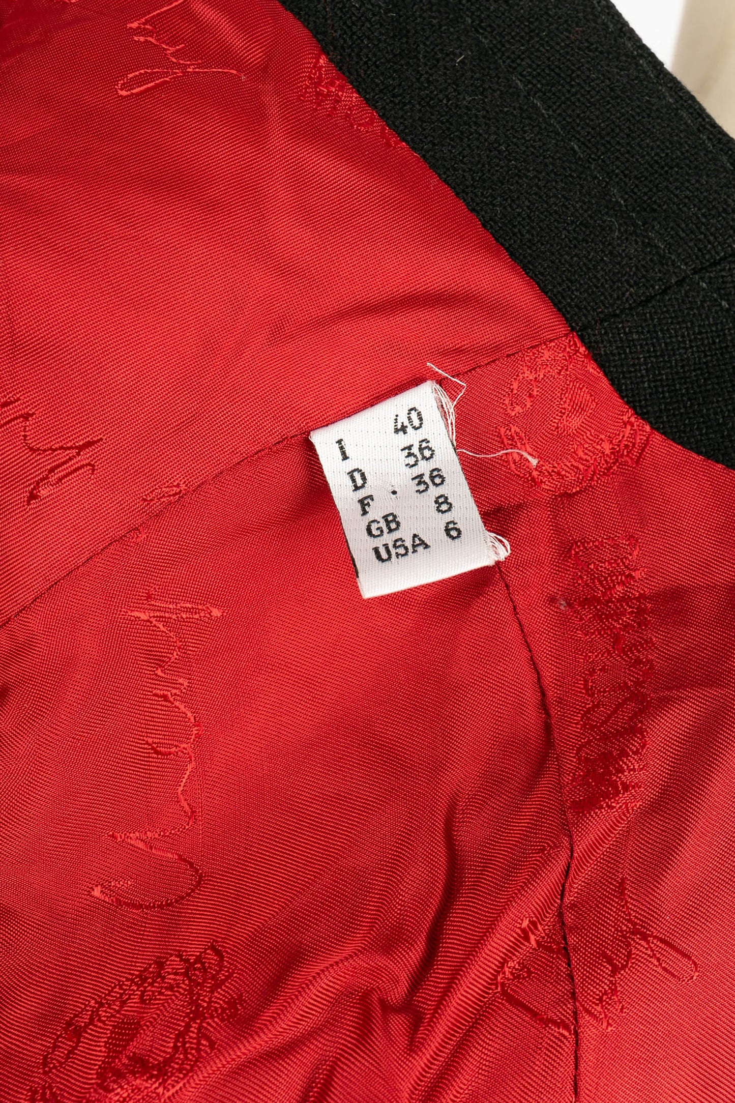 This clothing item, in very good condition, keeps its original quality and allure. The fabric is perfect, without any significant tear or stain, and the stitches are absolutely undamaged. The colours remain bright, and its refined finishes show its excellent maintenance.