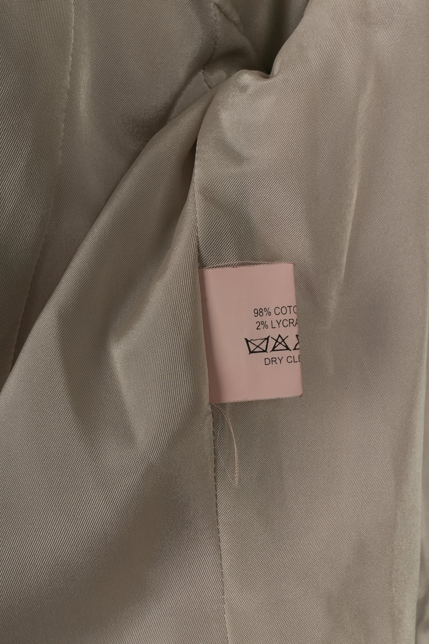 This clothing item, in very good condition, keeps its original quality and allure. The fabric is perfect, without any significant tear or stain, and the stitches are absolutely undamaged. The colours remain bright, and its refined finishes show its excellent maintenance.