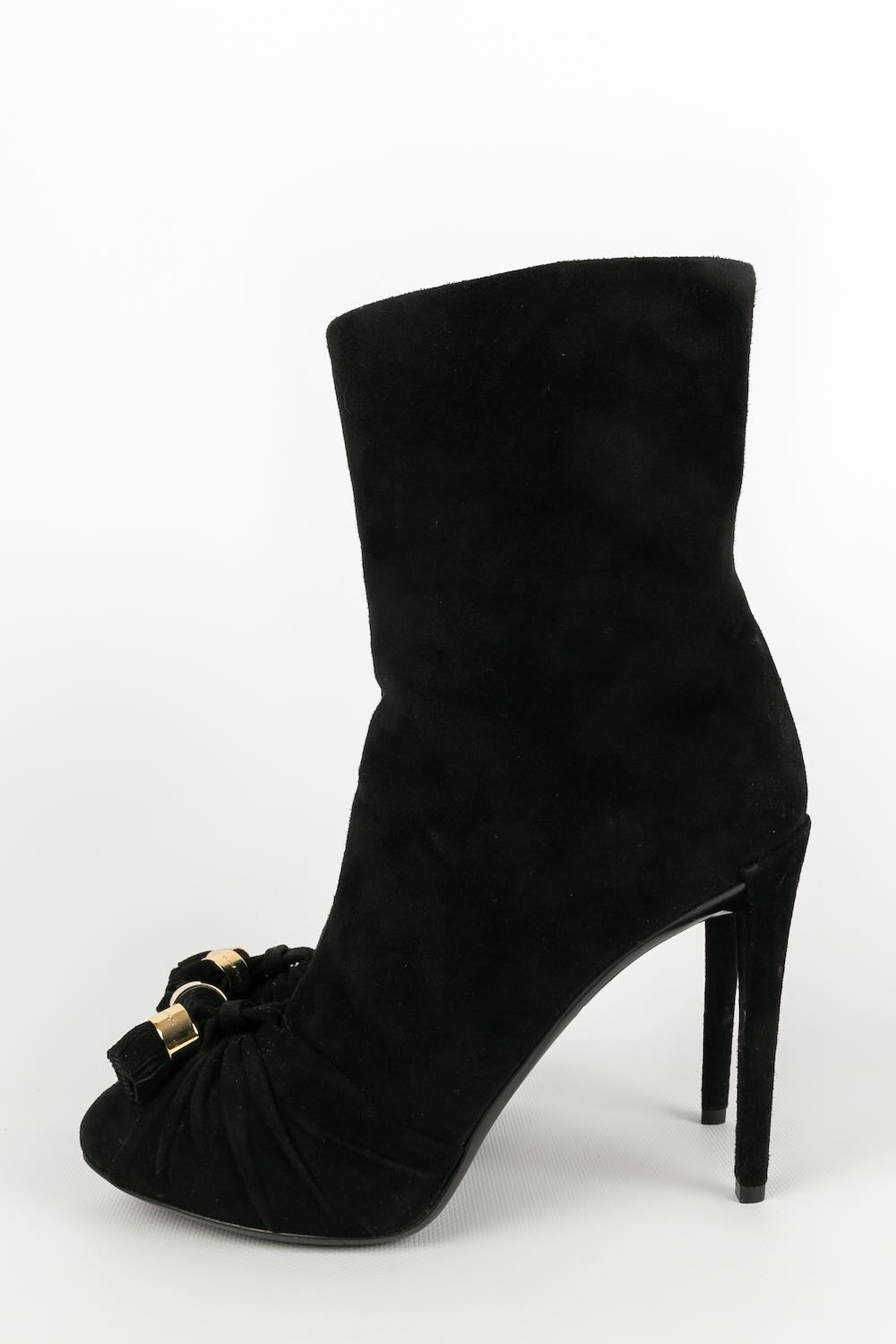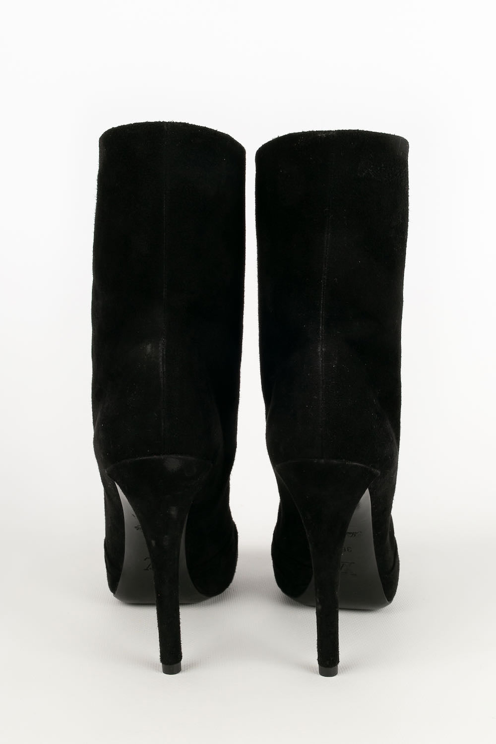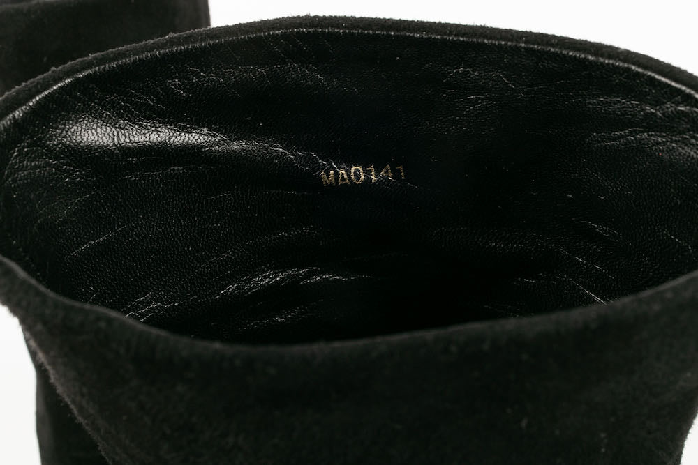 LOUIS VUITTON -(Made in Italy) Bottes à talons en cuir retourné noir. Pointure 36,5FR.