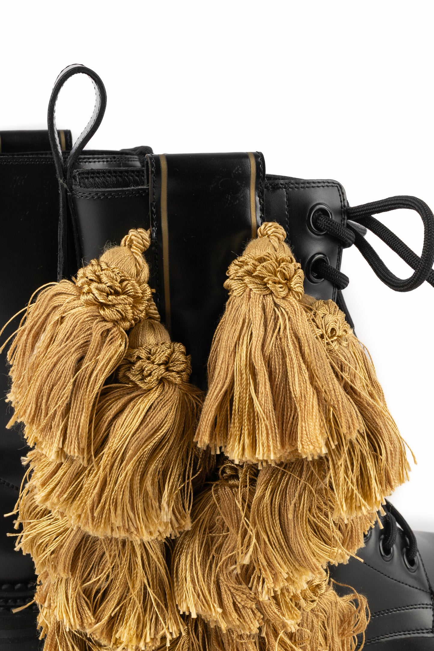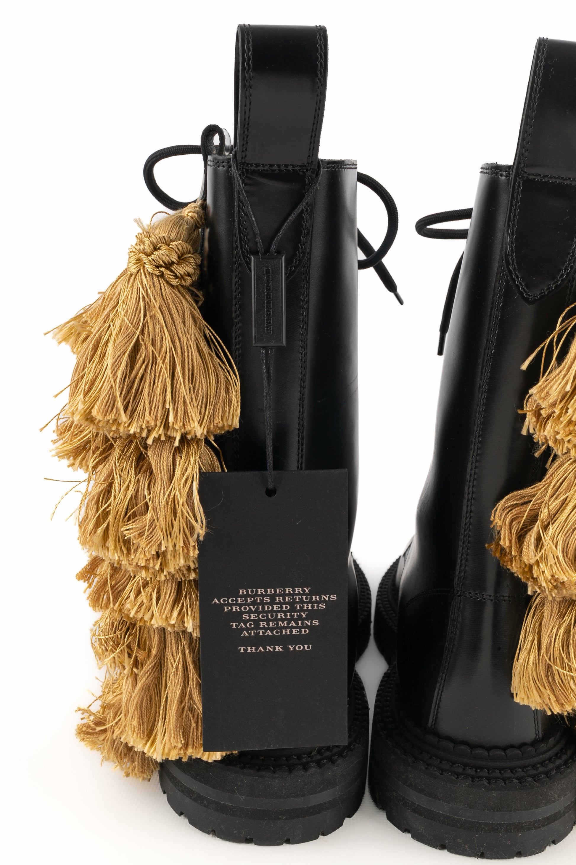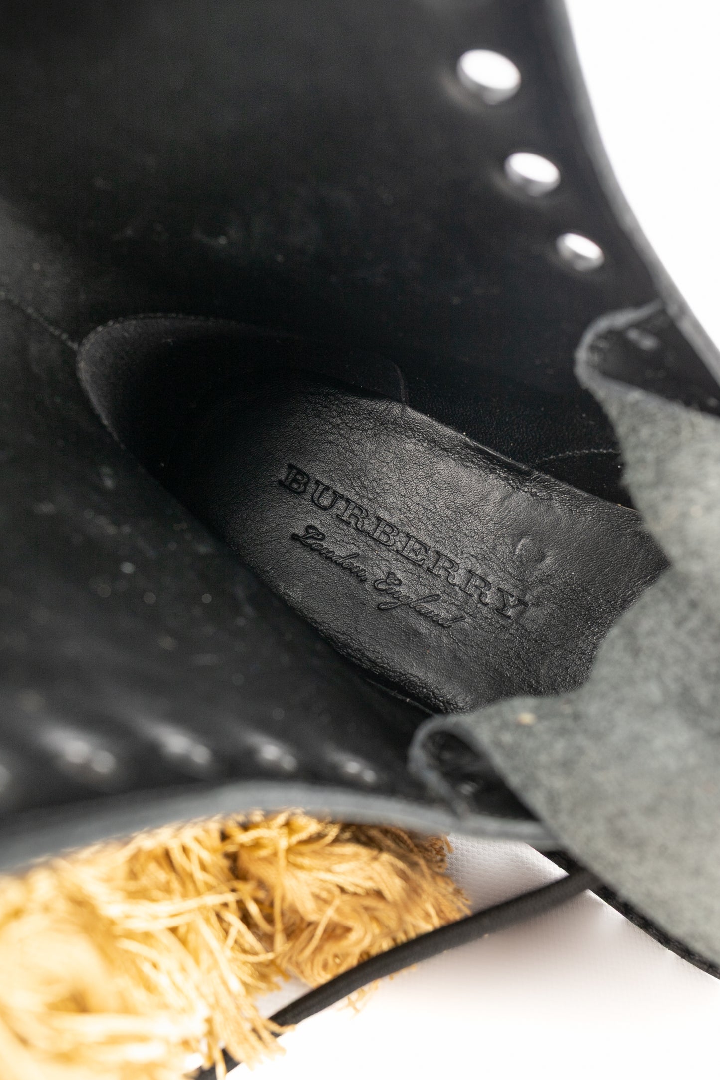 BURBERRY -(Made in Italy) Bottines en cuir agrémentées de pompons en passementerie. Collection Automne-Hiver 2016.