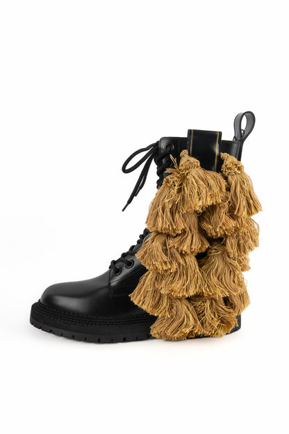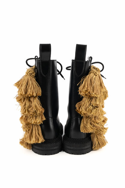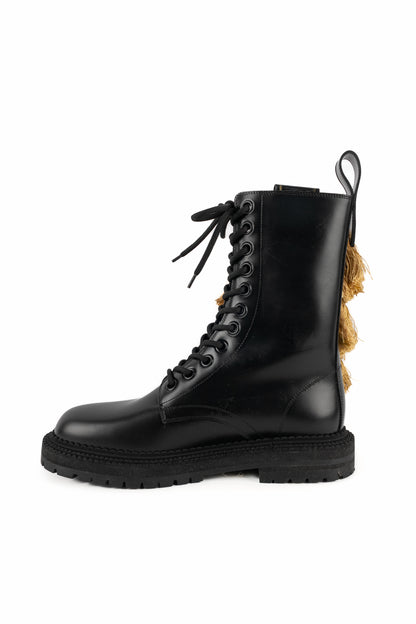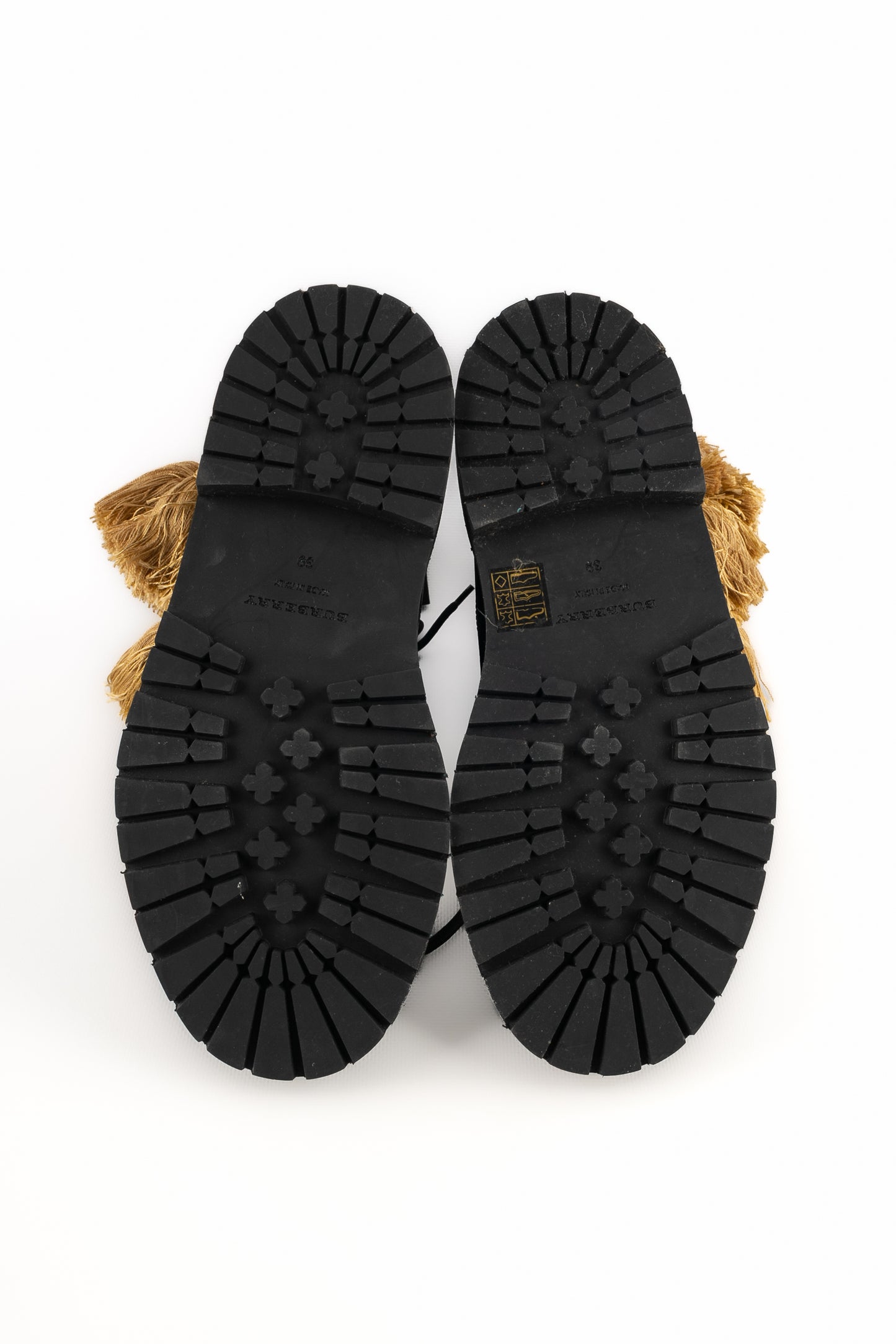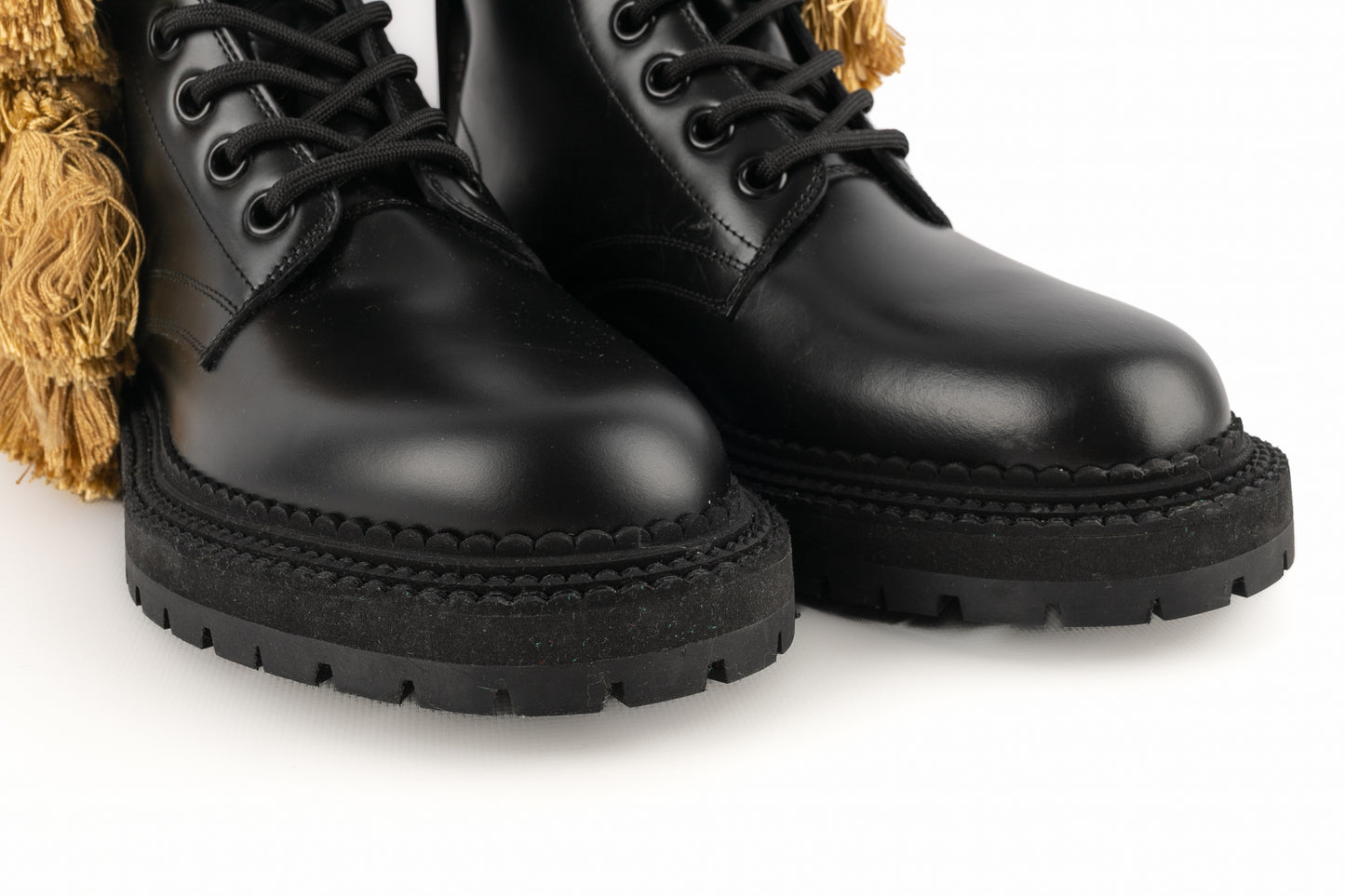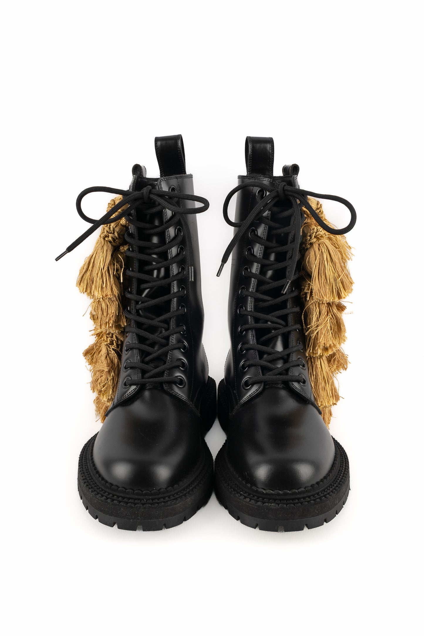 BURBERRY -(Made in Italy) Bottines en cuir agrémentées de pompons en passementerie. Collection Automne-Hiver 2016.