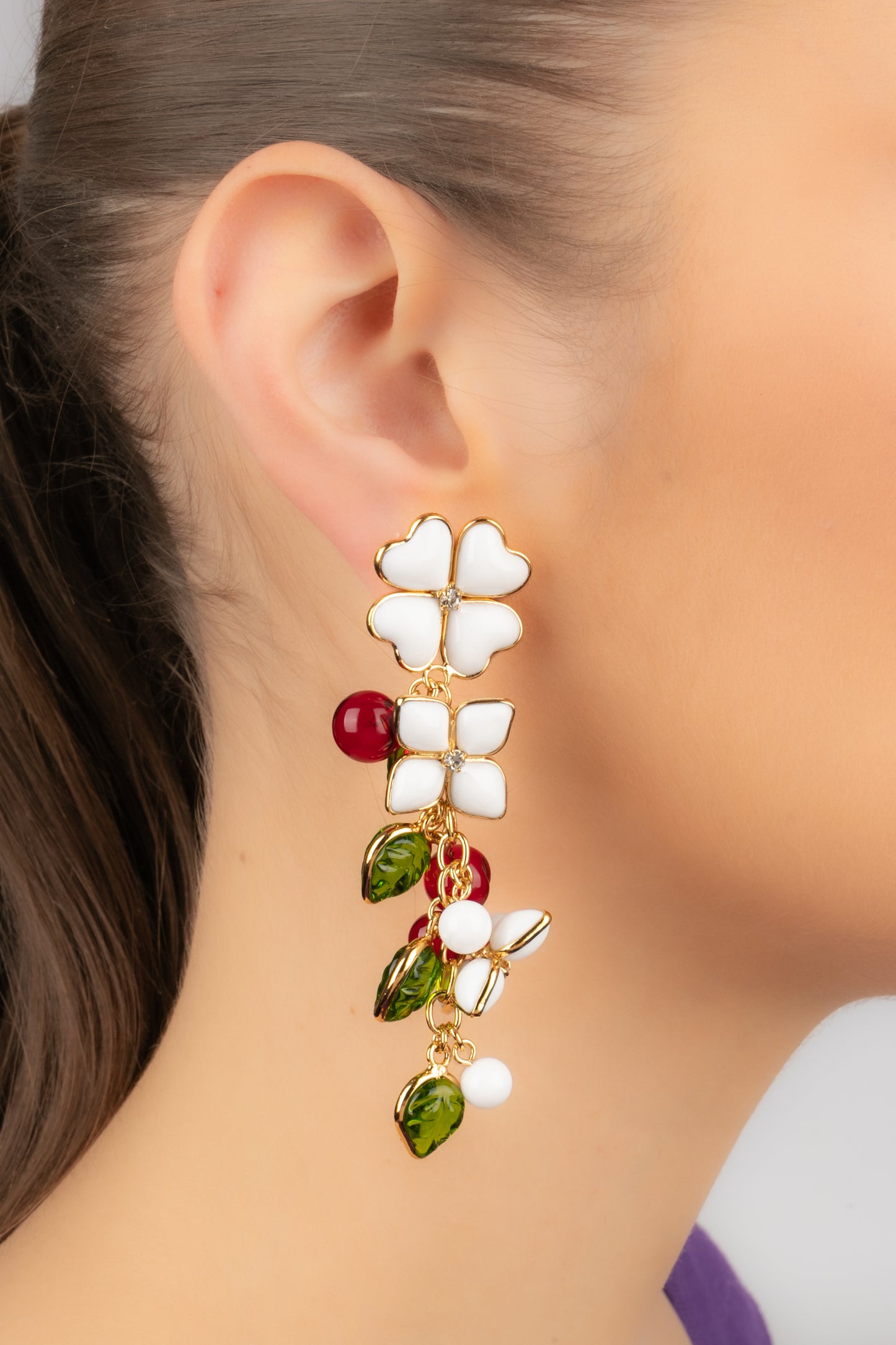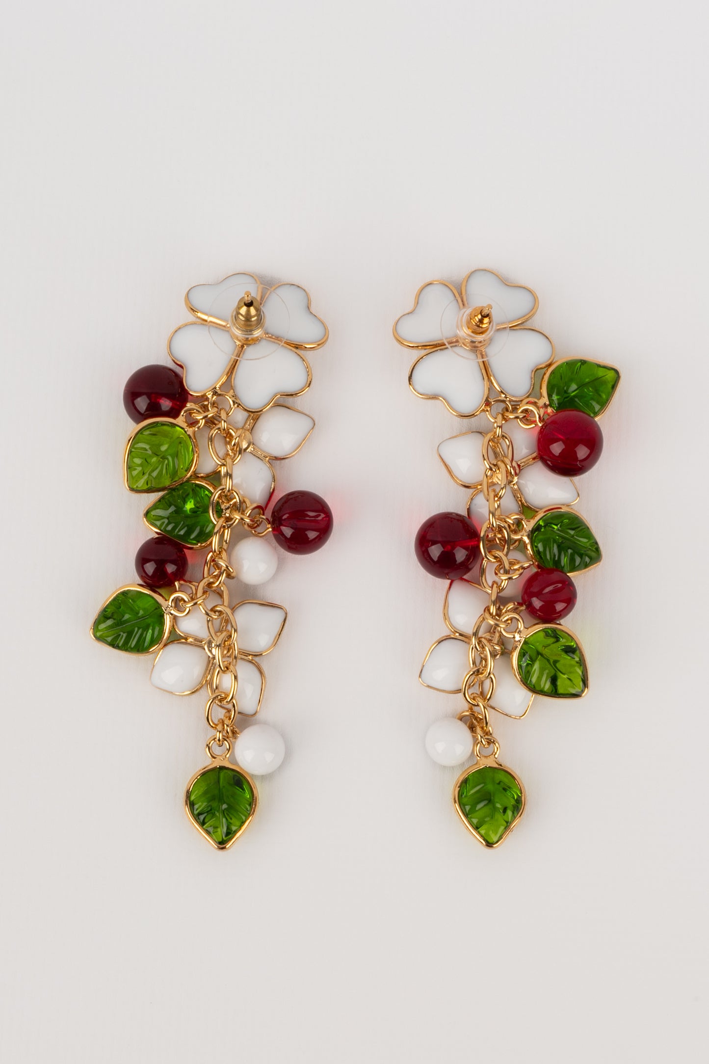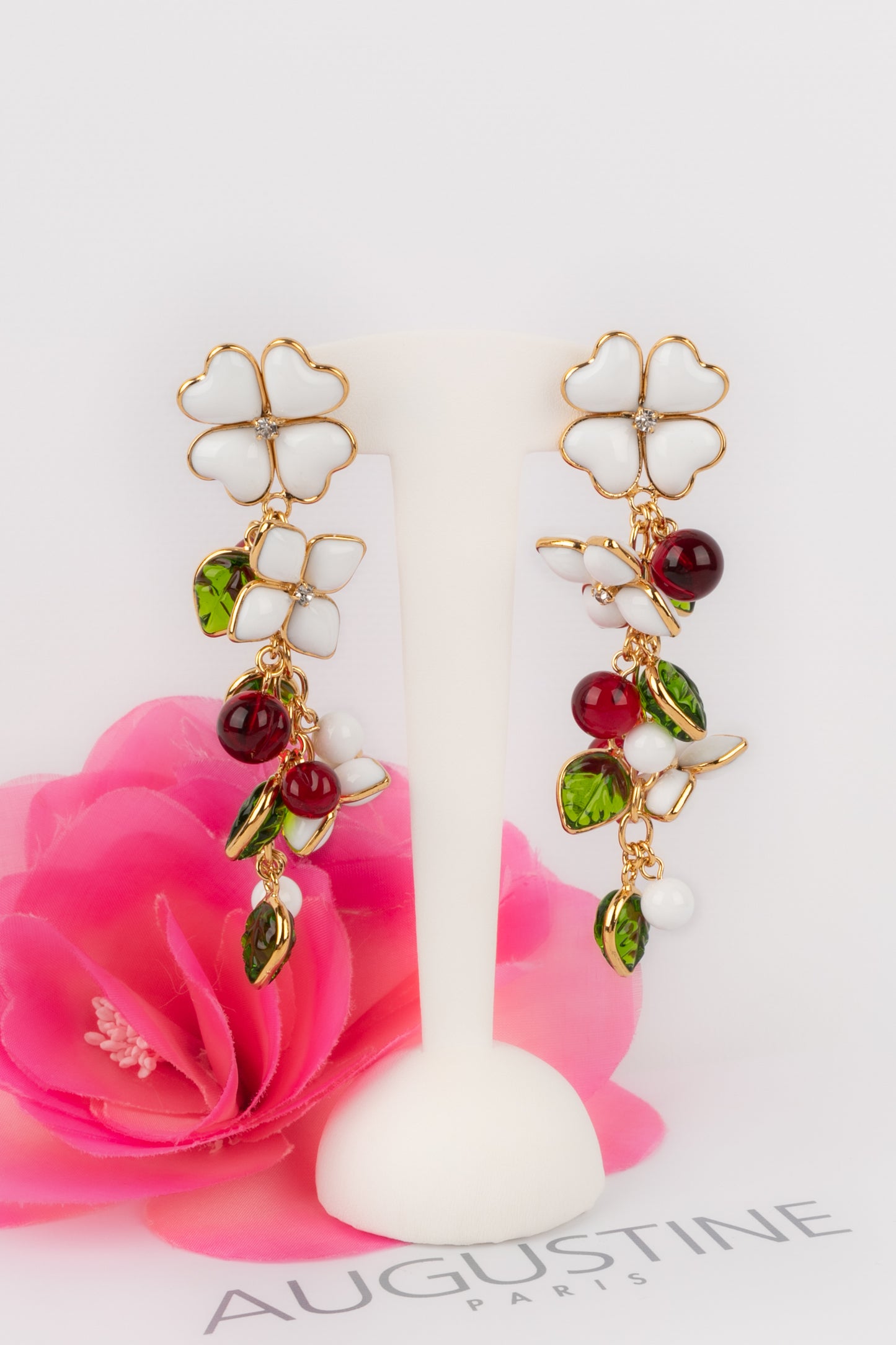 AUGUSTINE -(Made in France) Boucles d'oreilles en métal doré, pâte de verre et strass.
