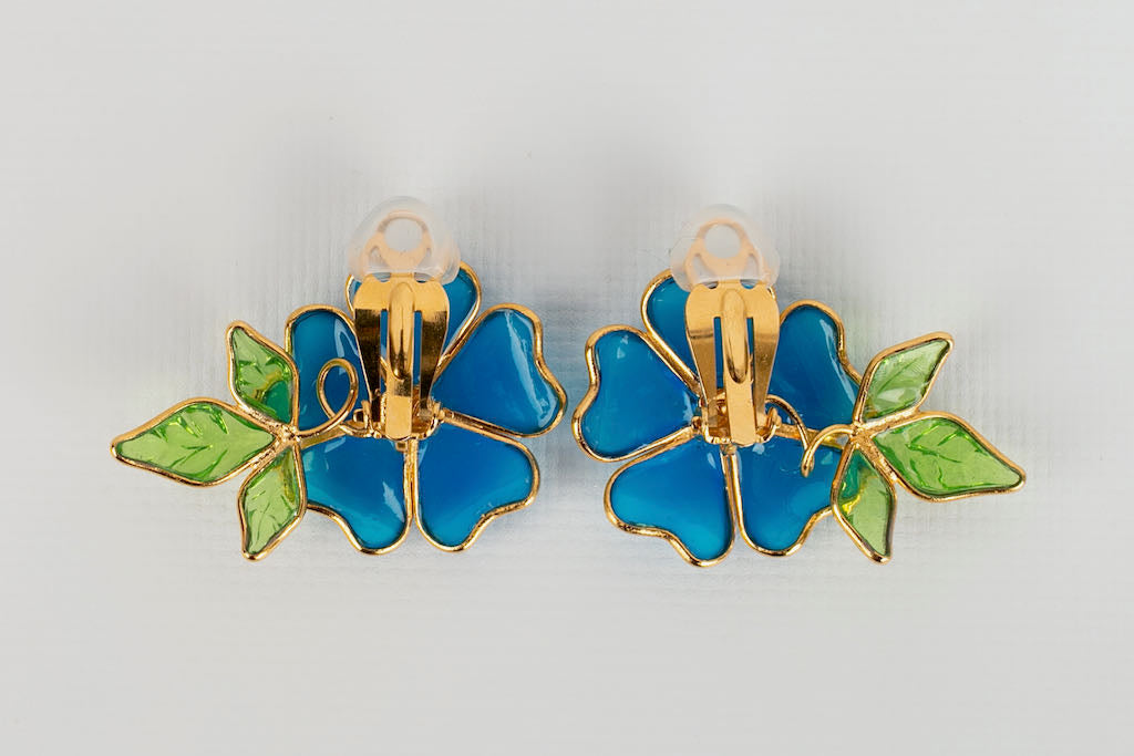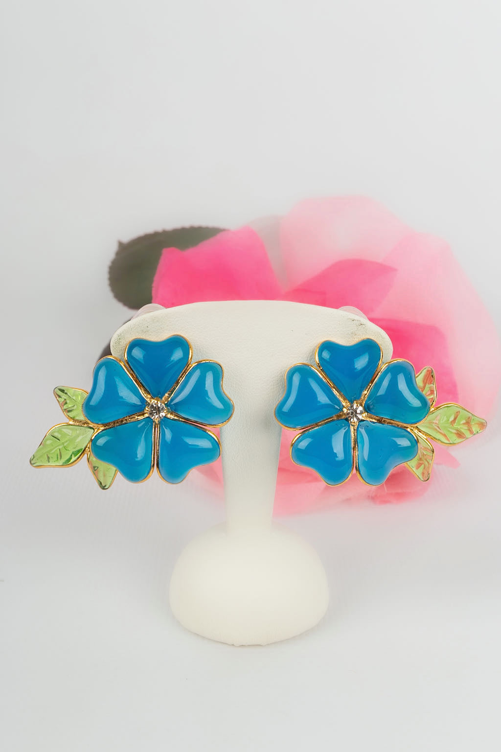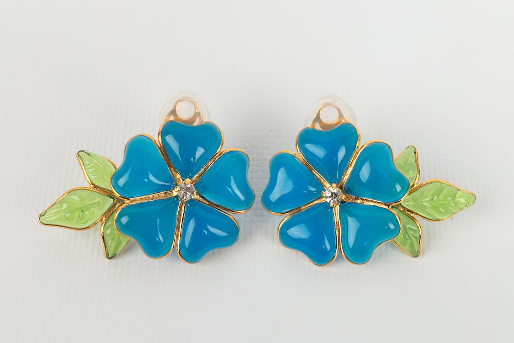 AUGUSTINE -Boucles d'oreilles clips en pâte de verre et strass.