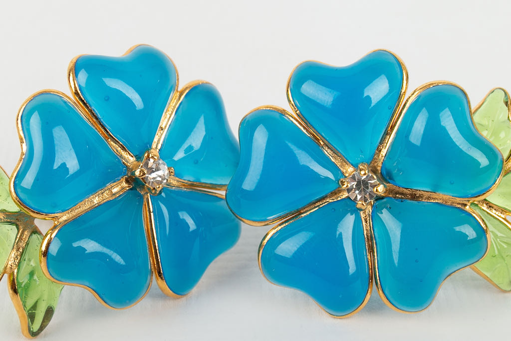 Développée par Gripoix au XIXe siècle, la technique de la pâte de verre utilise des pièces de verre colorées et finement travaillées, ajoutant une touche artistique et sophistiquée aux créations d'Augustine.