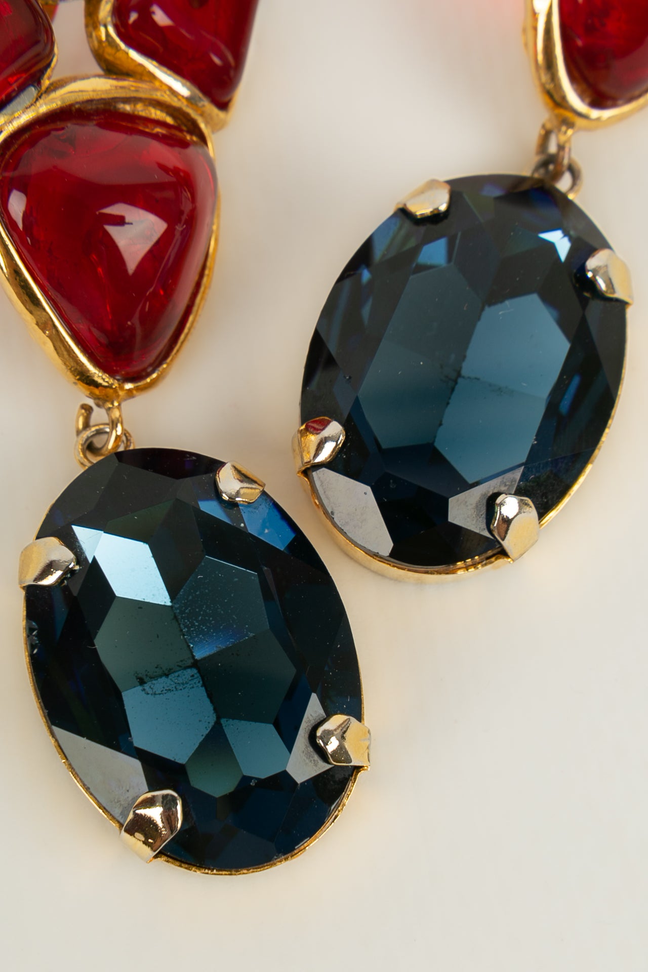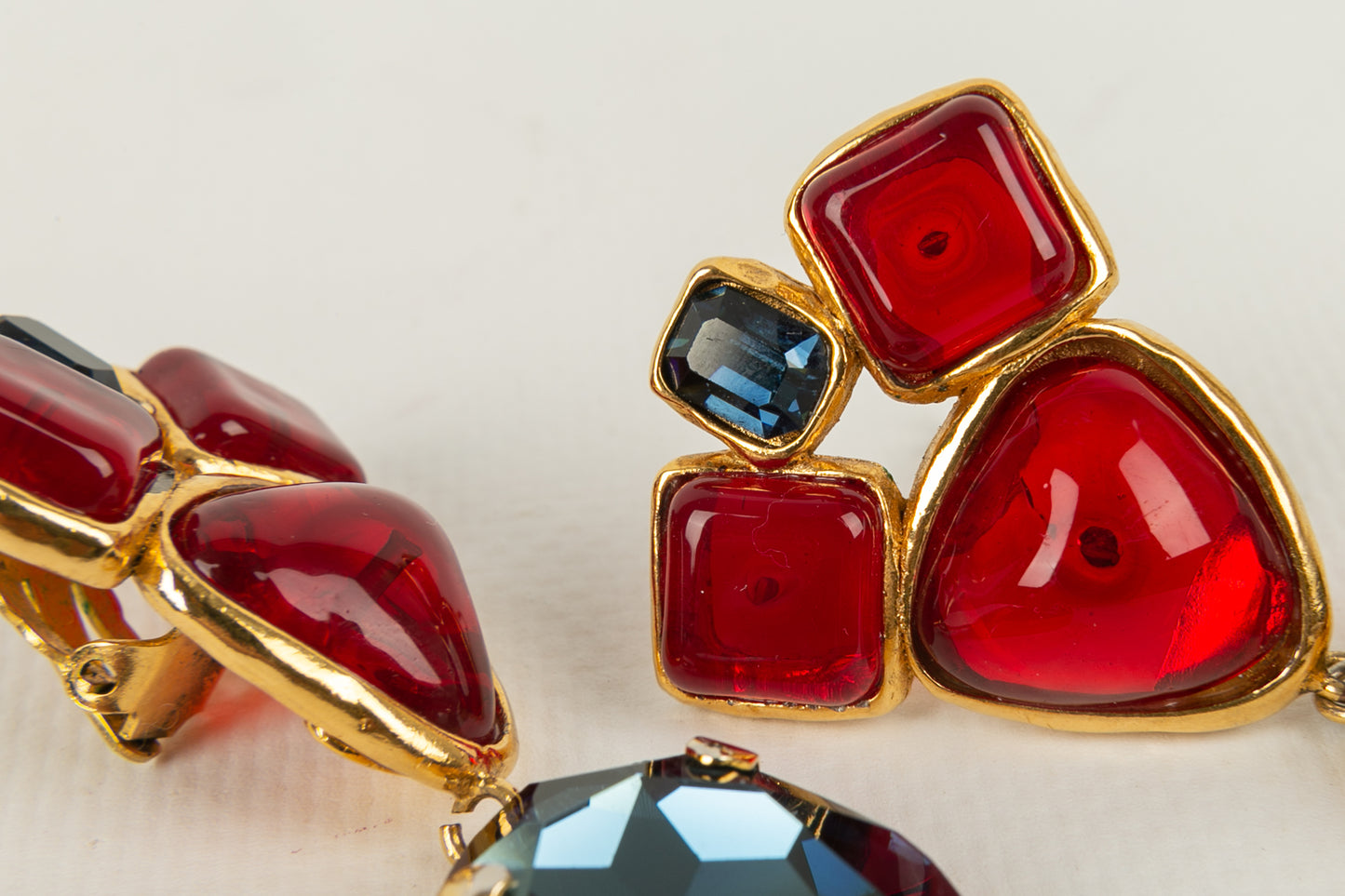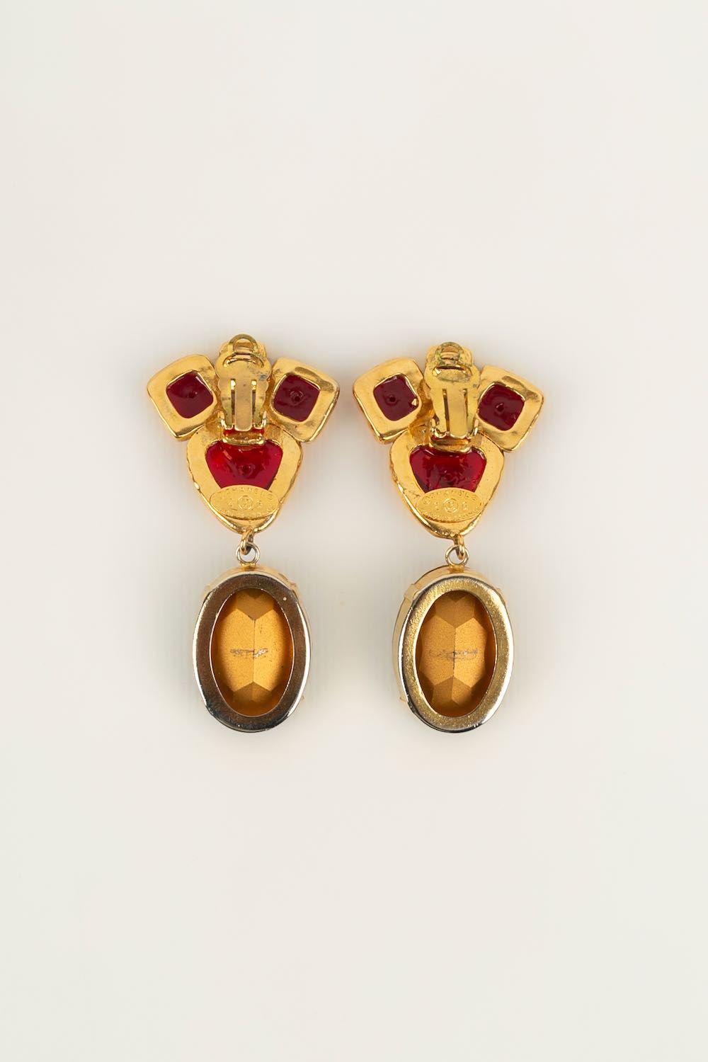CHANEL -(Made in France) Boucles d'oreilles en métal doré et pâte de verre. Collection 2cc6.