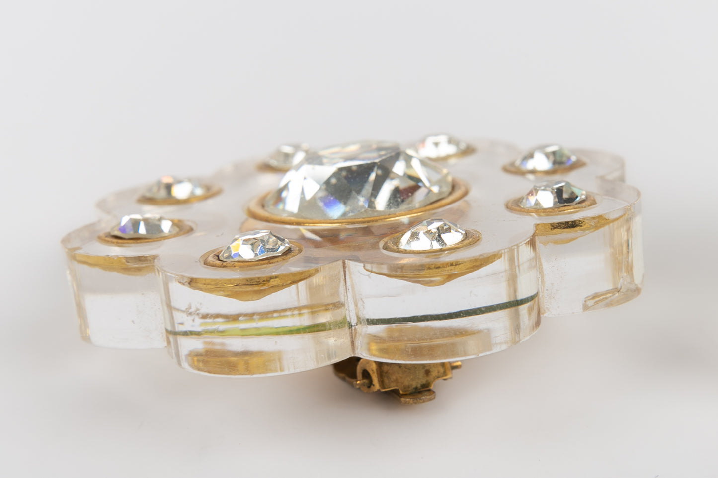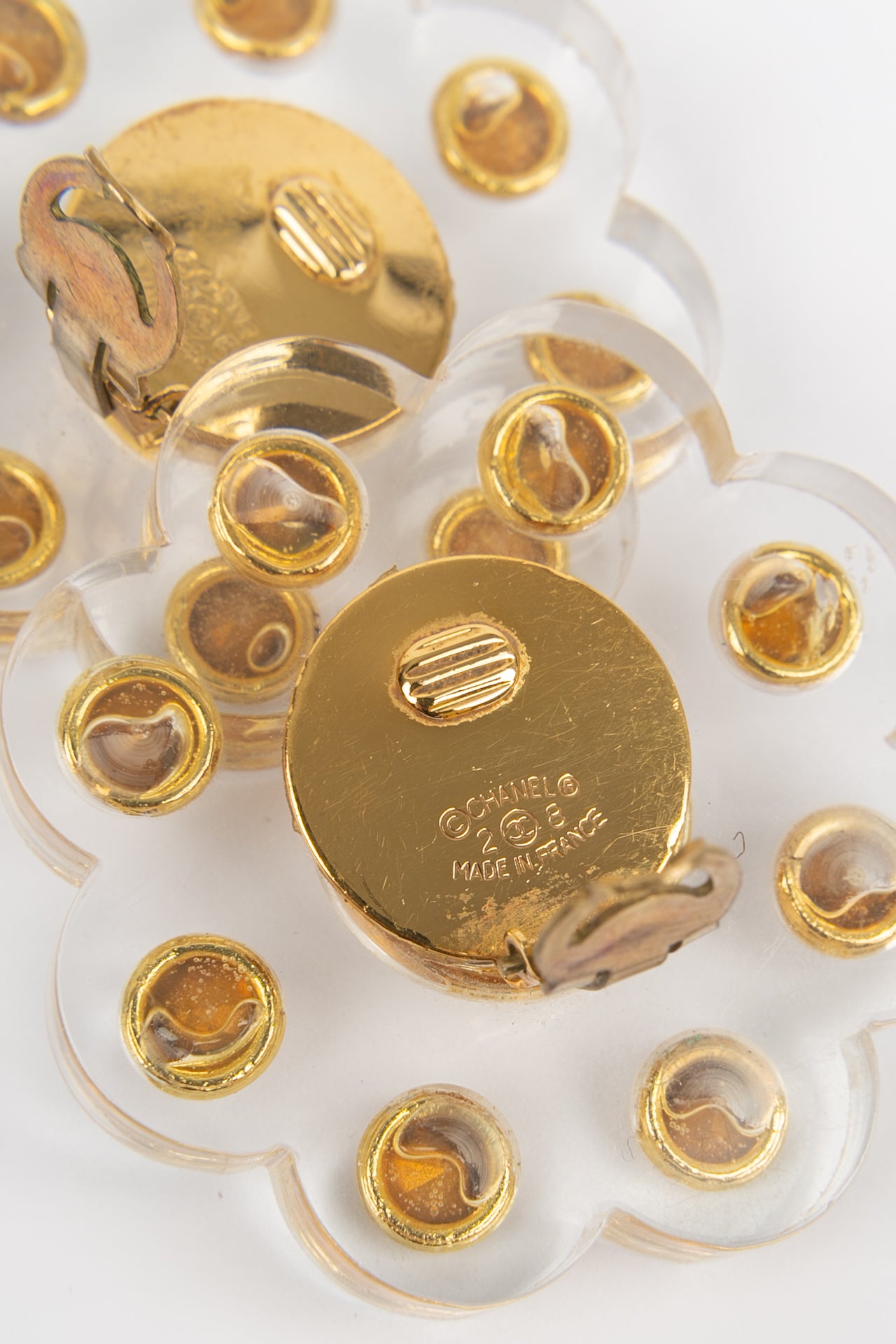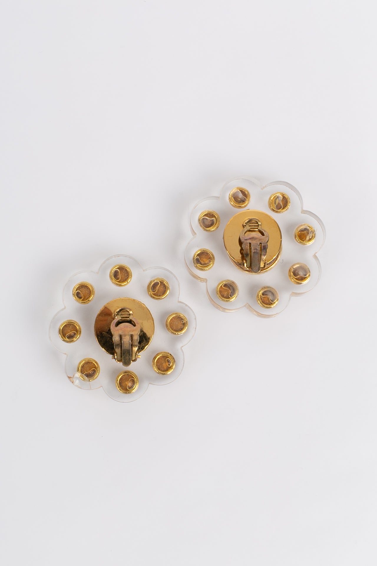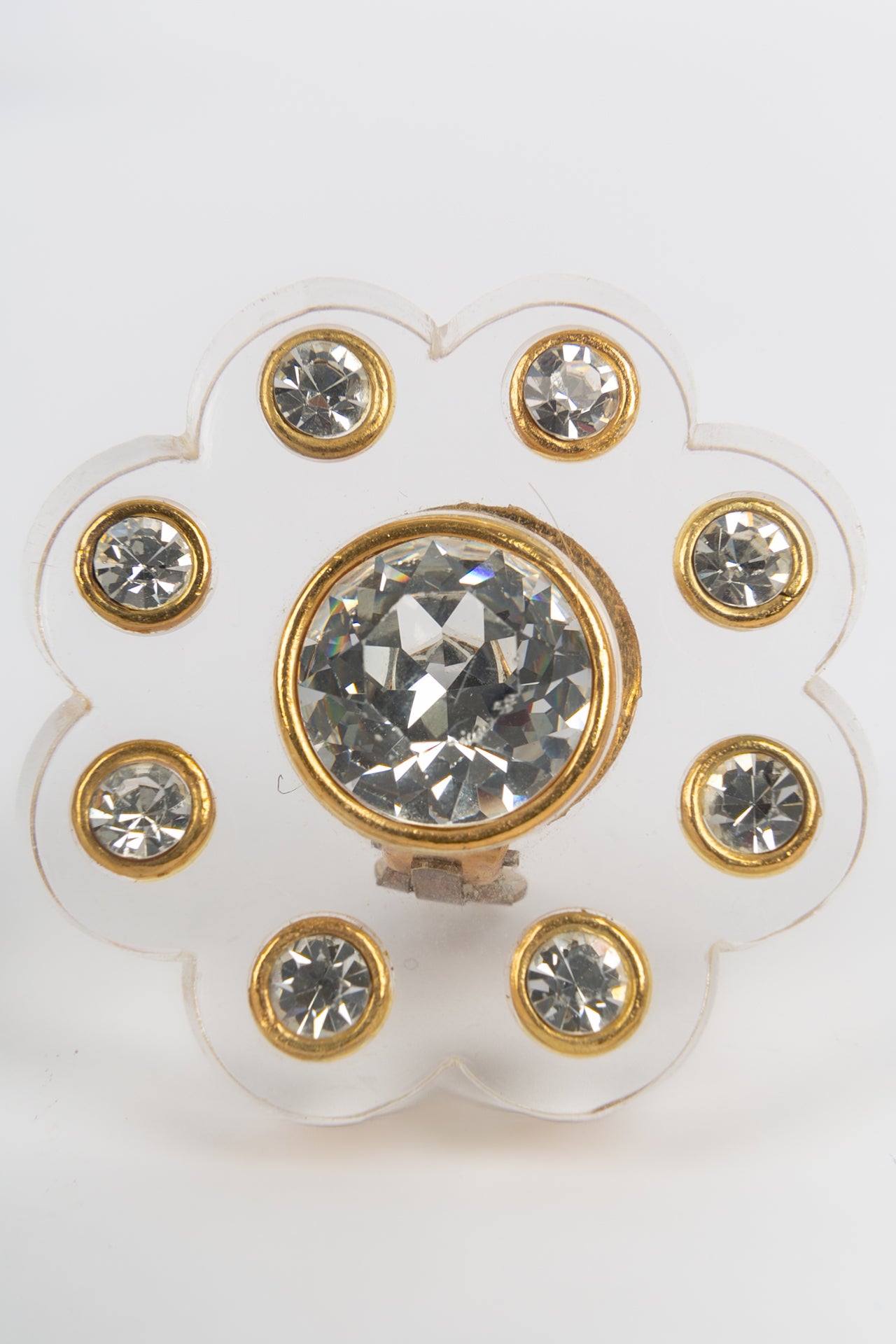 CHANEL -(Made in France) Boucles d'oreilles clips en lucite et strass de Swarovski. Collection 2cc8.