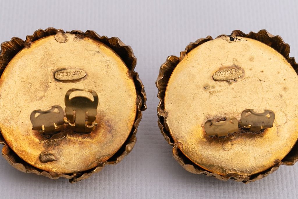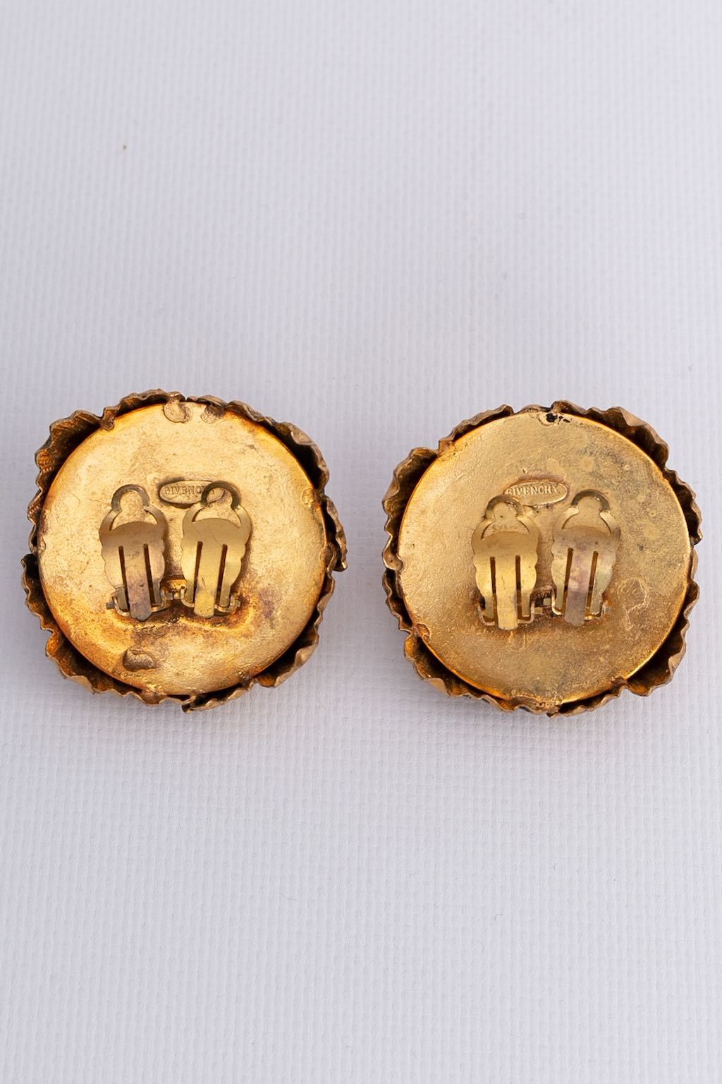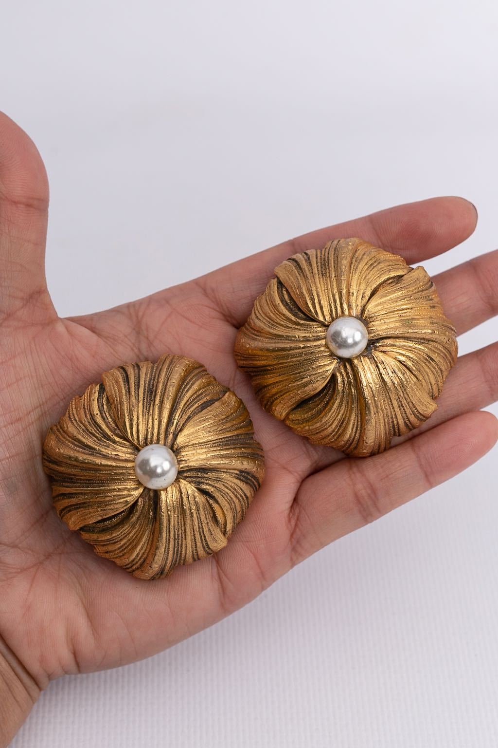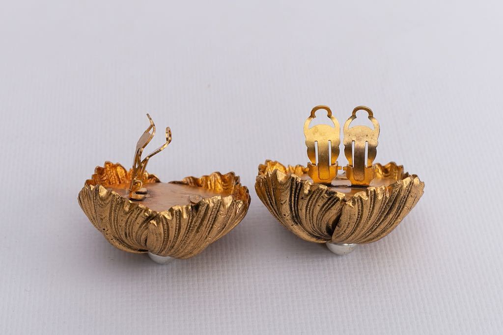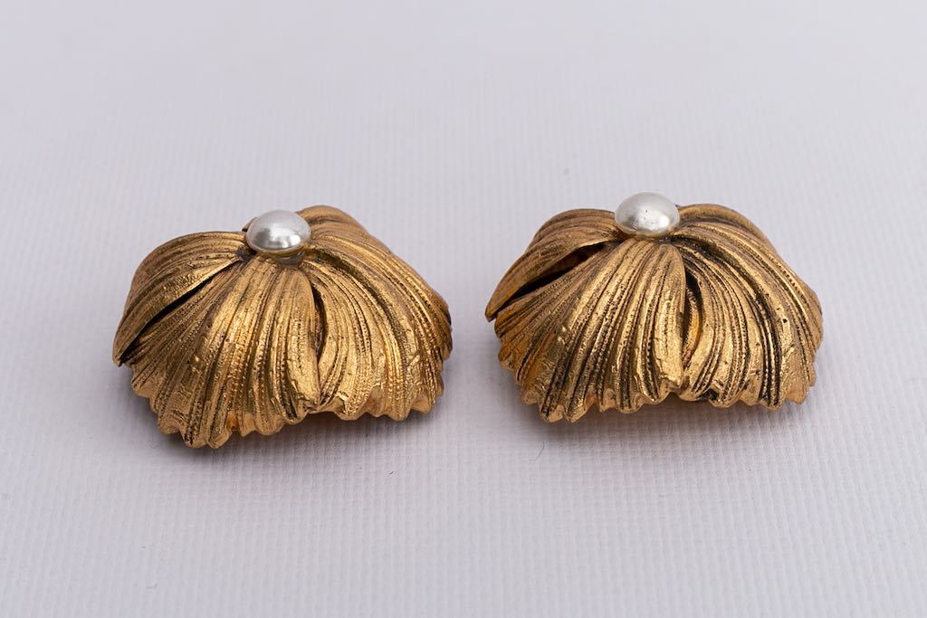 GIVENCHY -Boucles d'oreilles clips en métal doré centrées d'une perle nacré. Double clip à l'arrière.