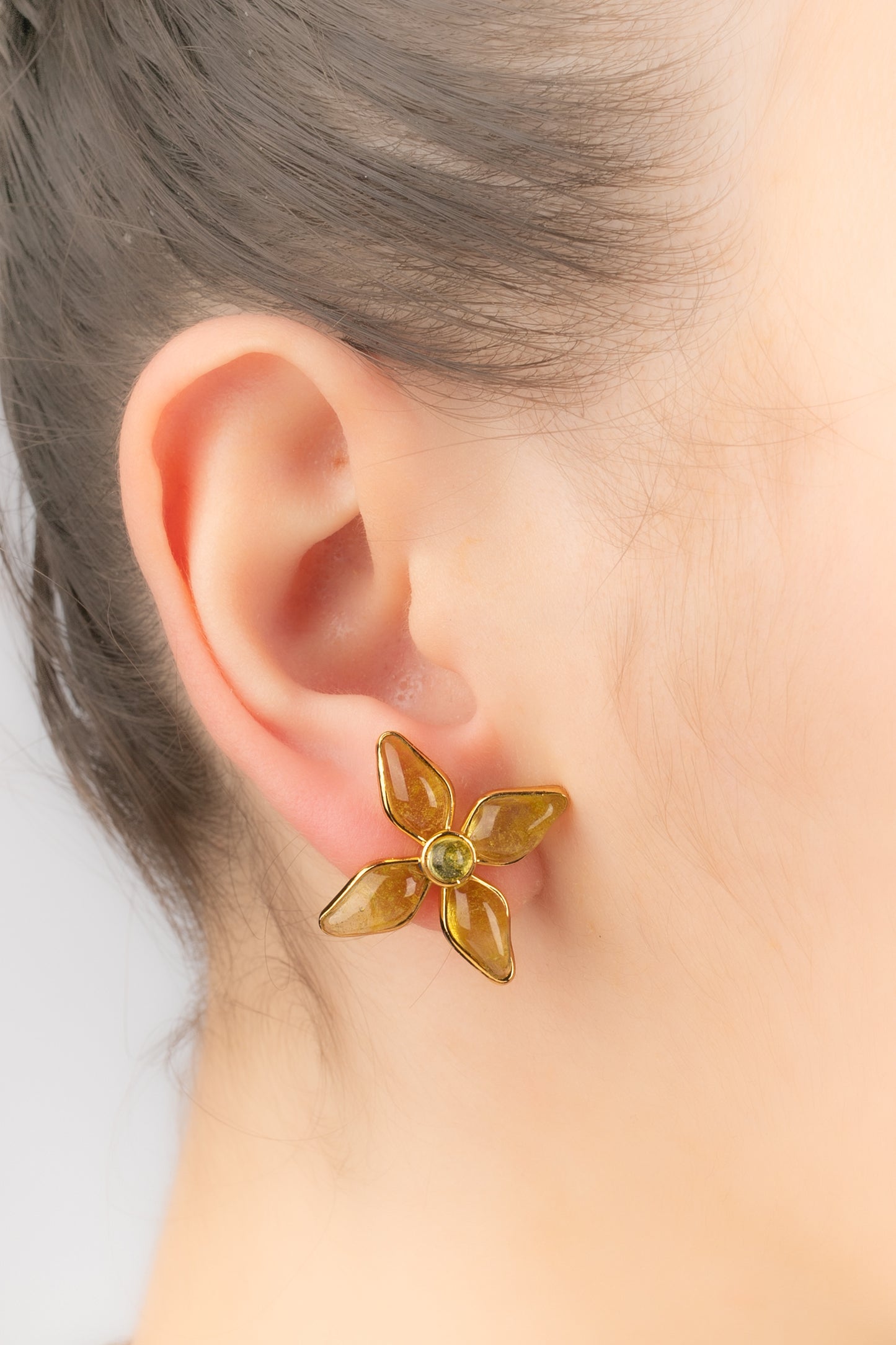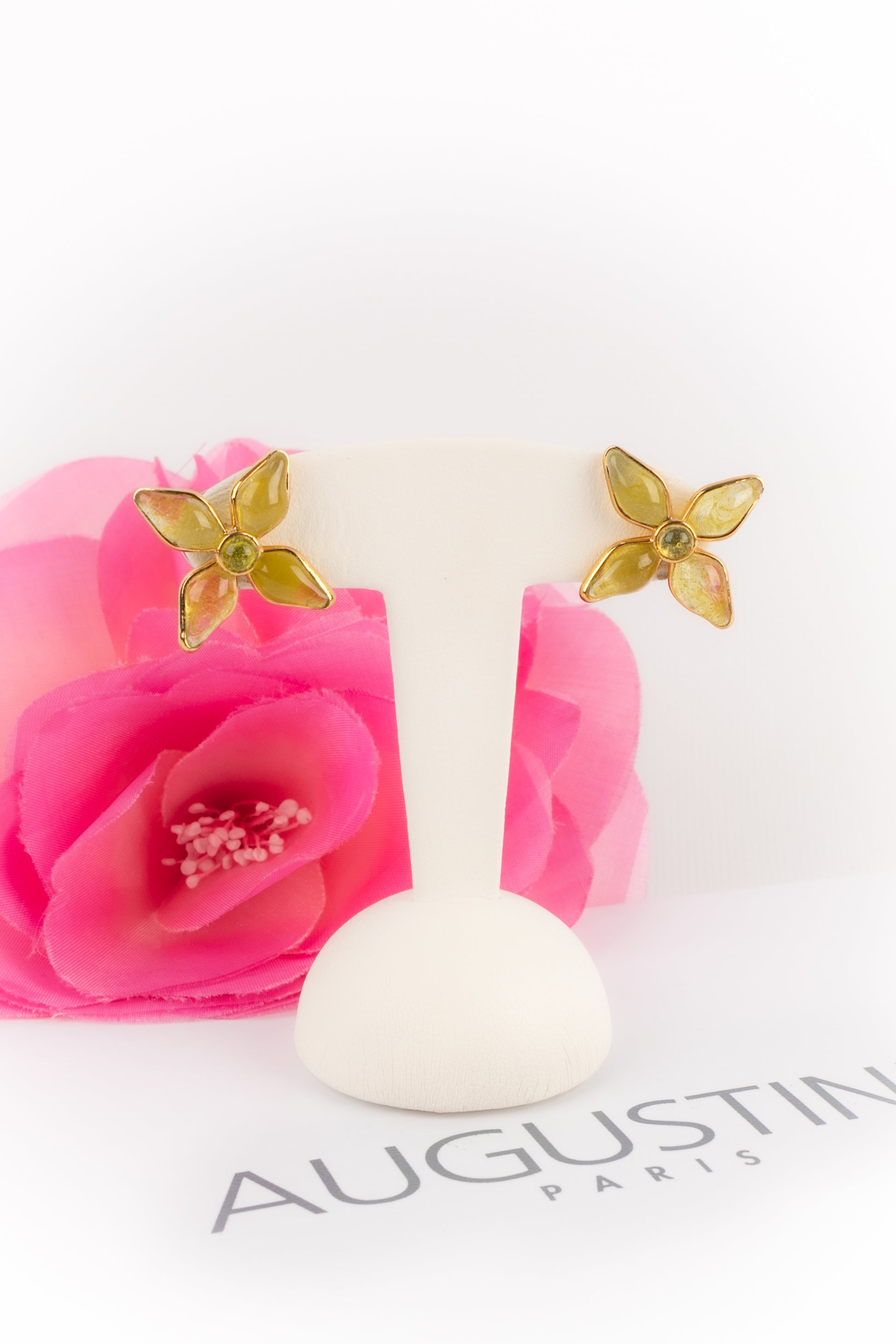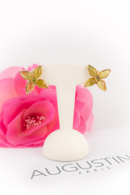 AUGUSTINE - (Made in France) Boucles d'oreilles fleurs en métal doré et fleur en pâte de verre.