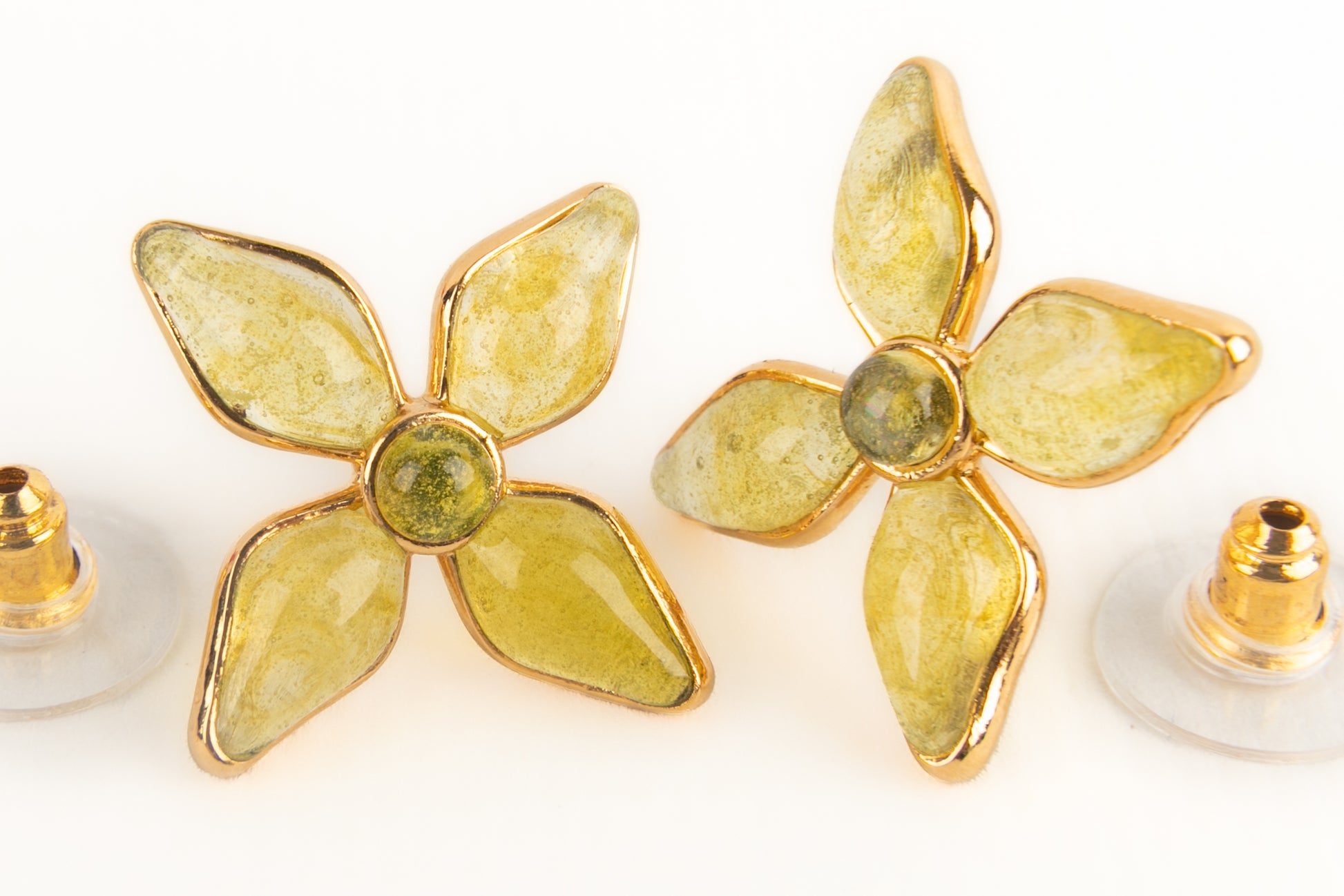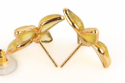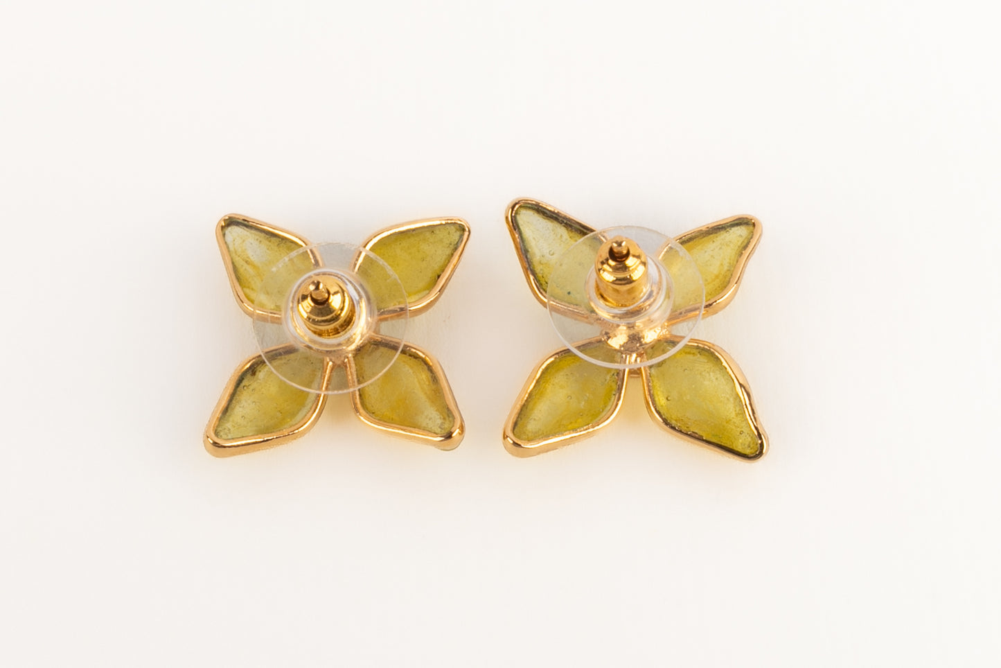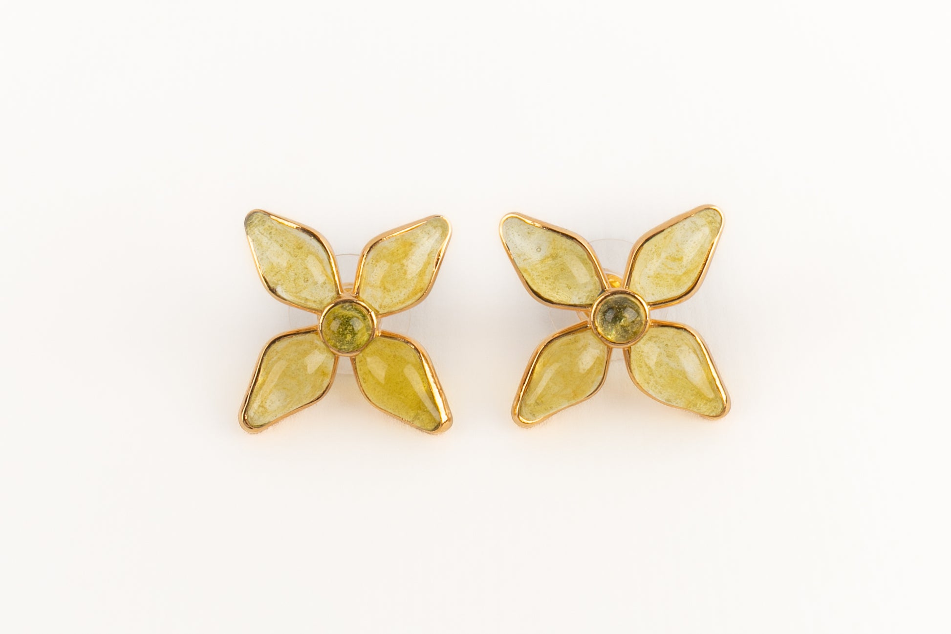 AUGUSTINE - (Made in France) Boucles d'oreilles fleurs en métal doré et fleur en pâte de verre.