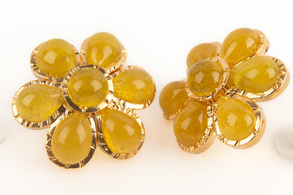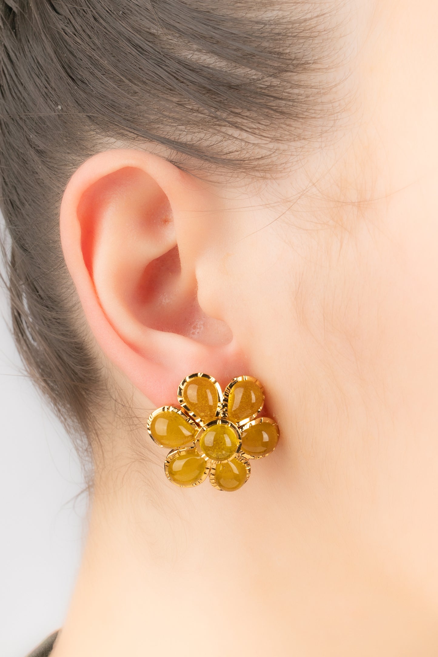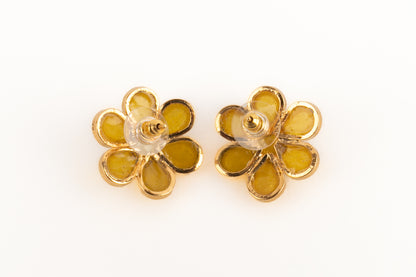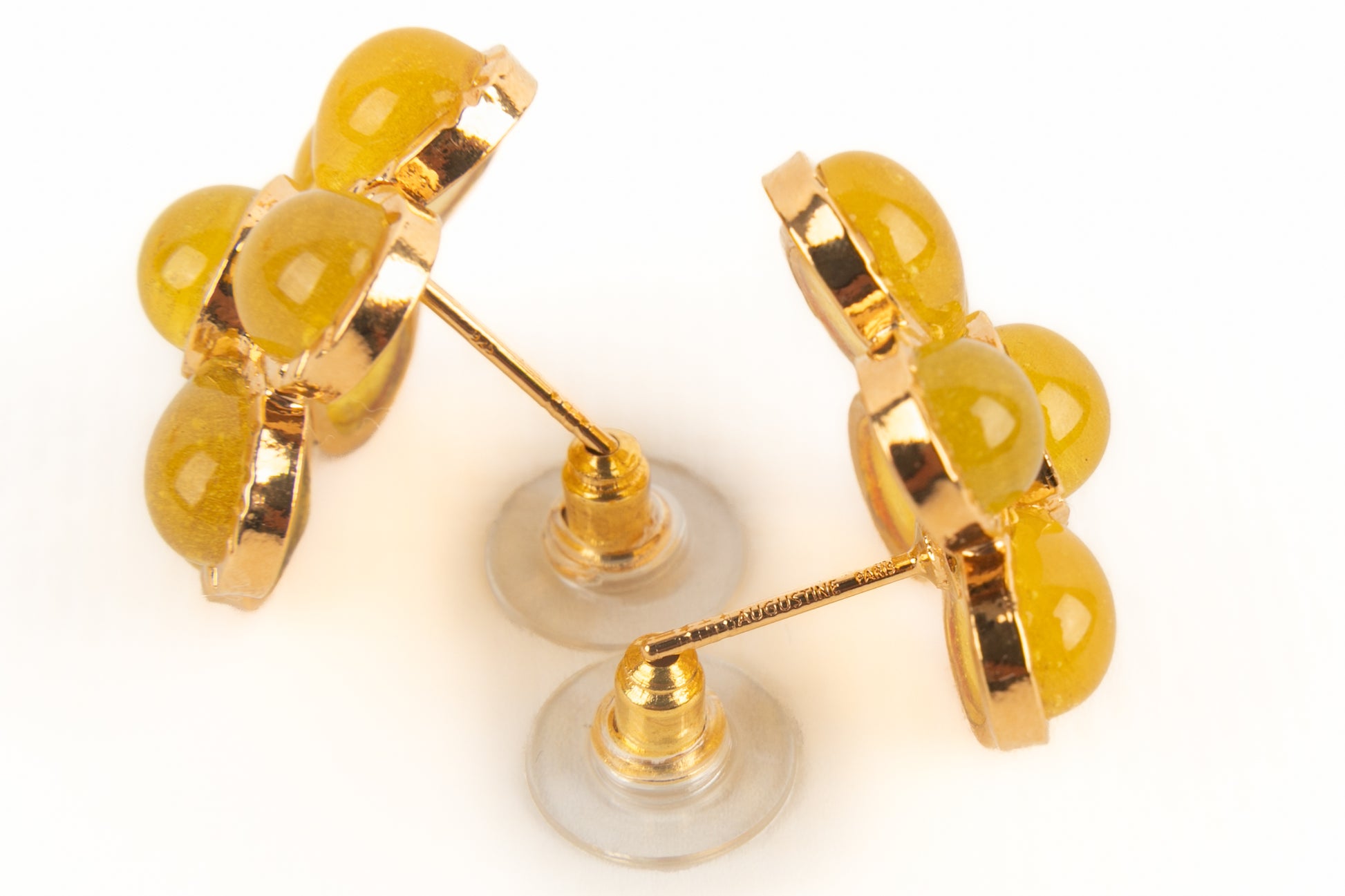 AUGUSTINE - (Made in France) Boucles d'oreilles fleurs en métal doré et pâte de verre jaune.