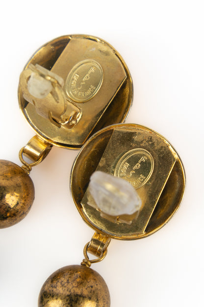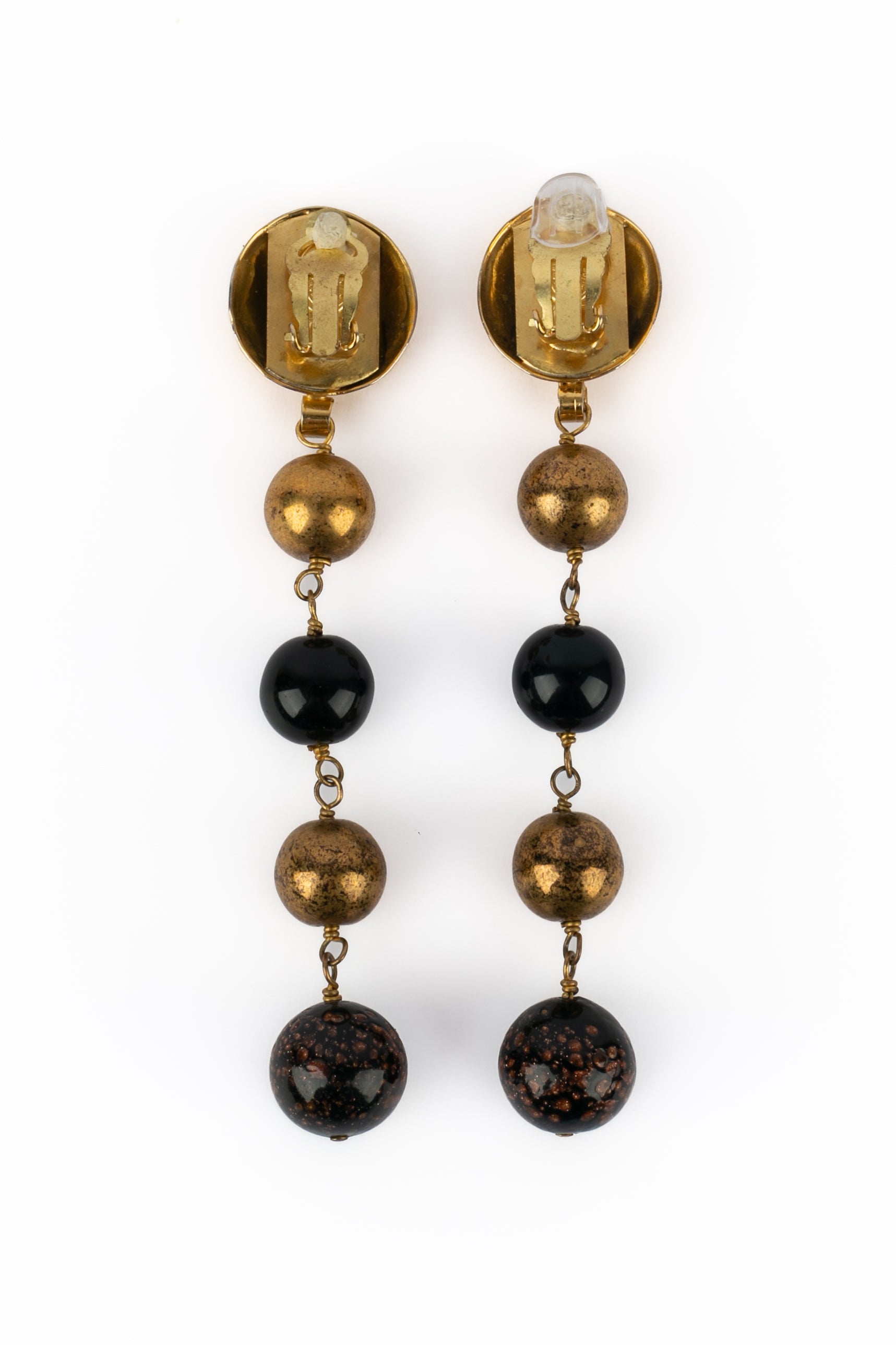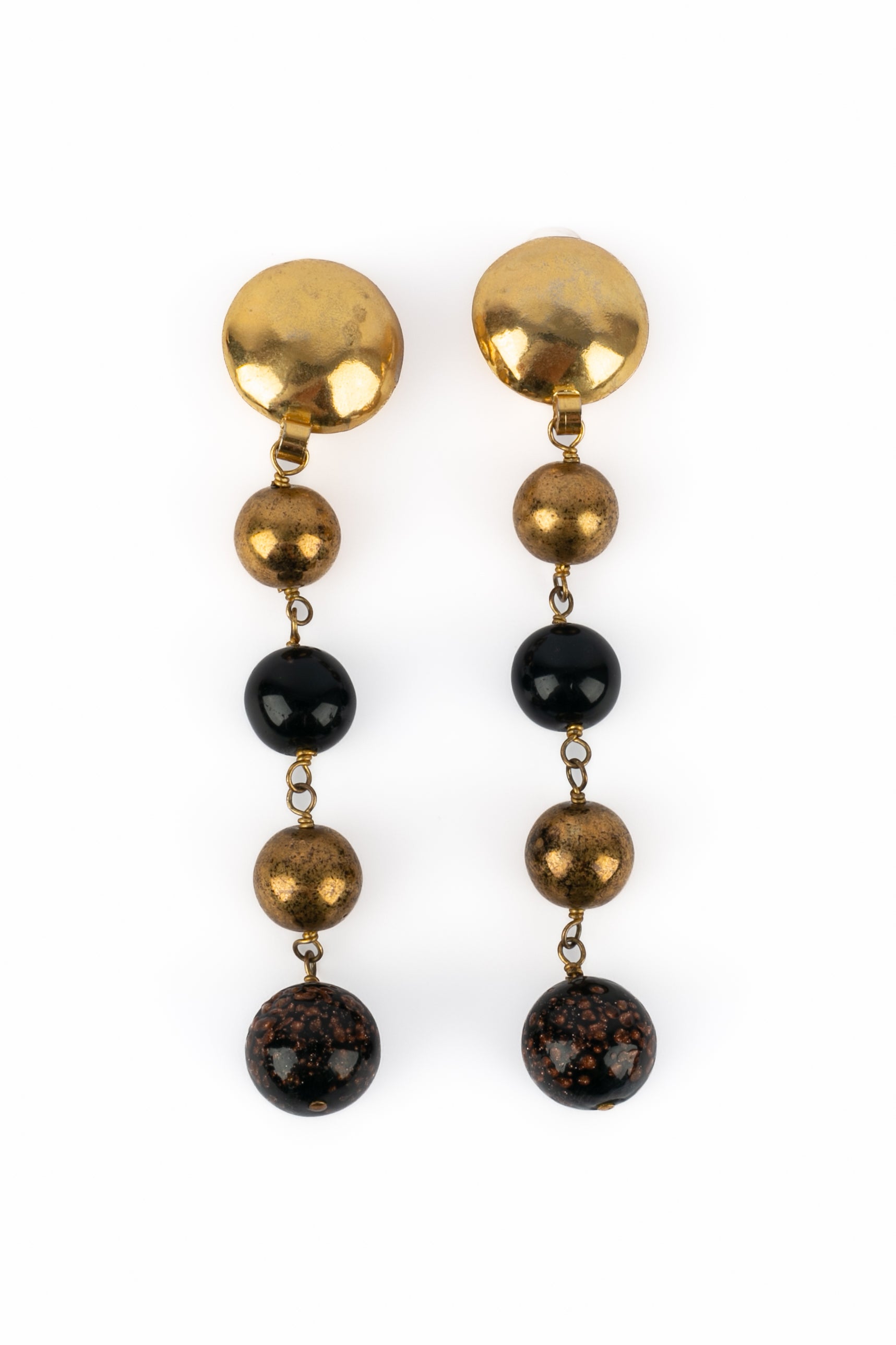 FRANCES PATIKY STEIN - (Made in France) Boucles d'oreilles clips en métal doré et perles en pâte de verre.