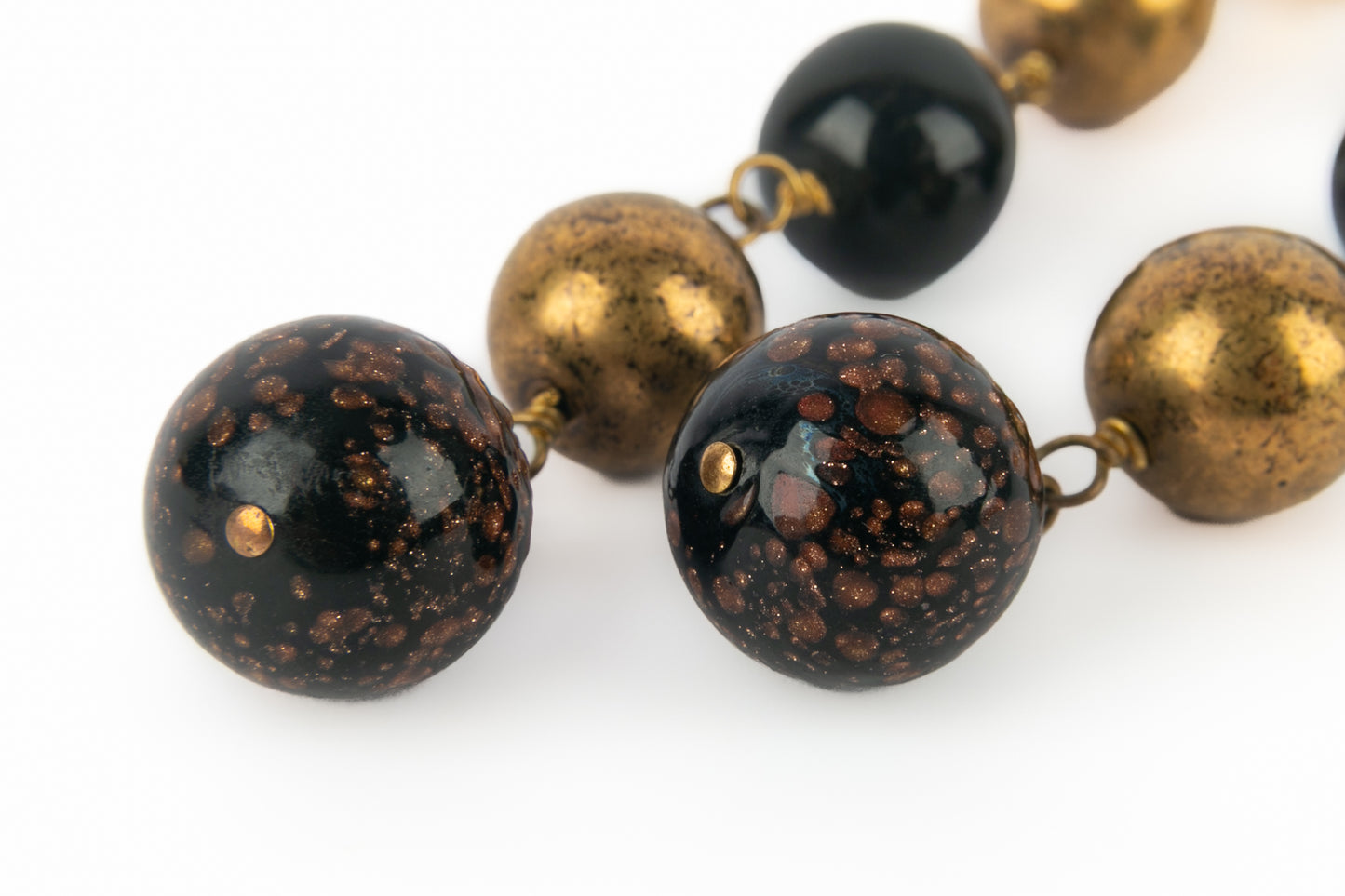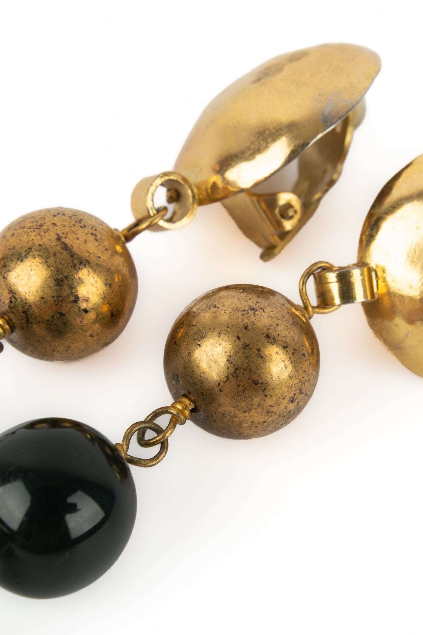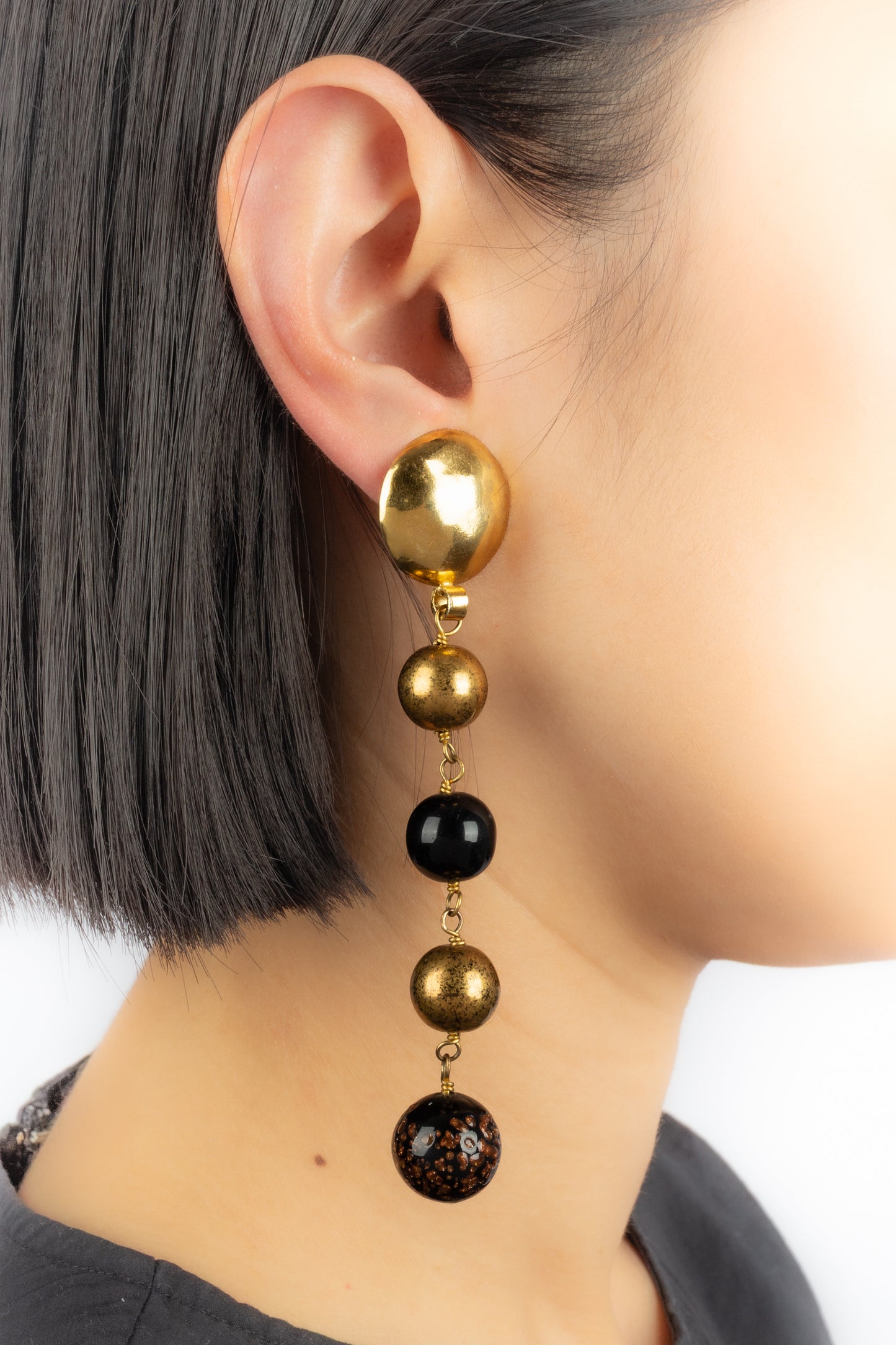 FRANCES PATIKY STEIN - (Made in France) Boucles d'oreilles clips en métal doré et perles en pâte de verre.