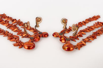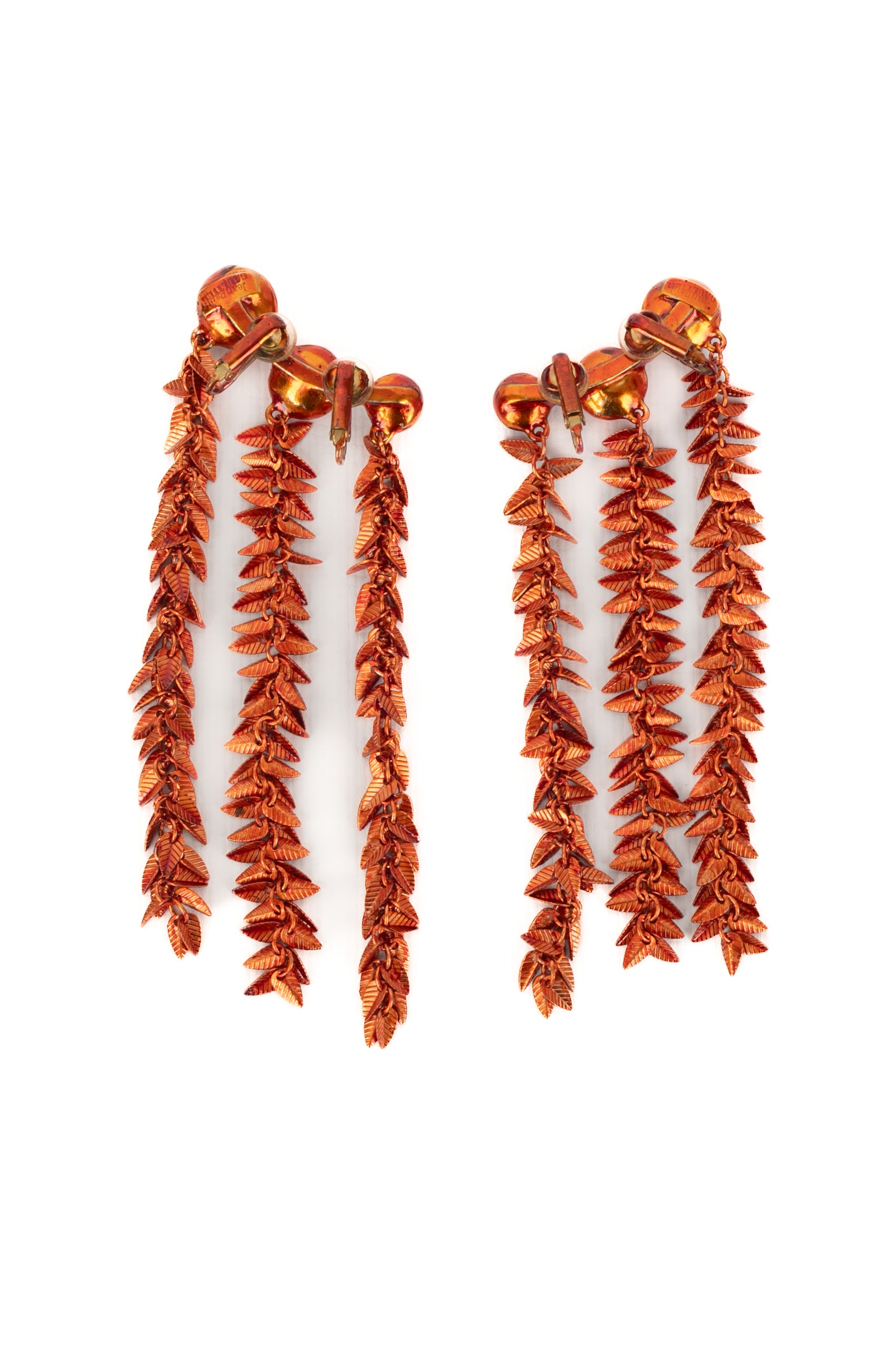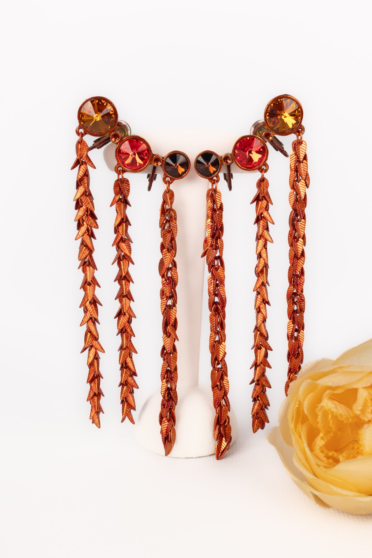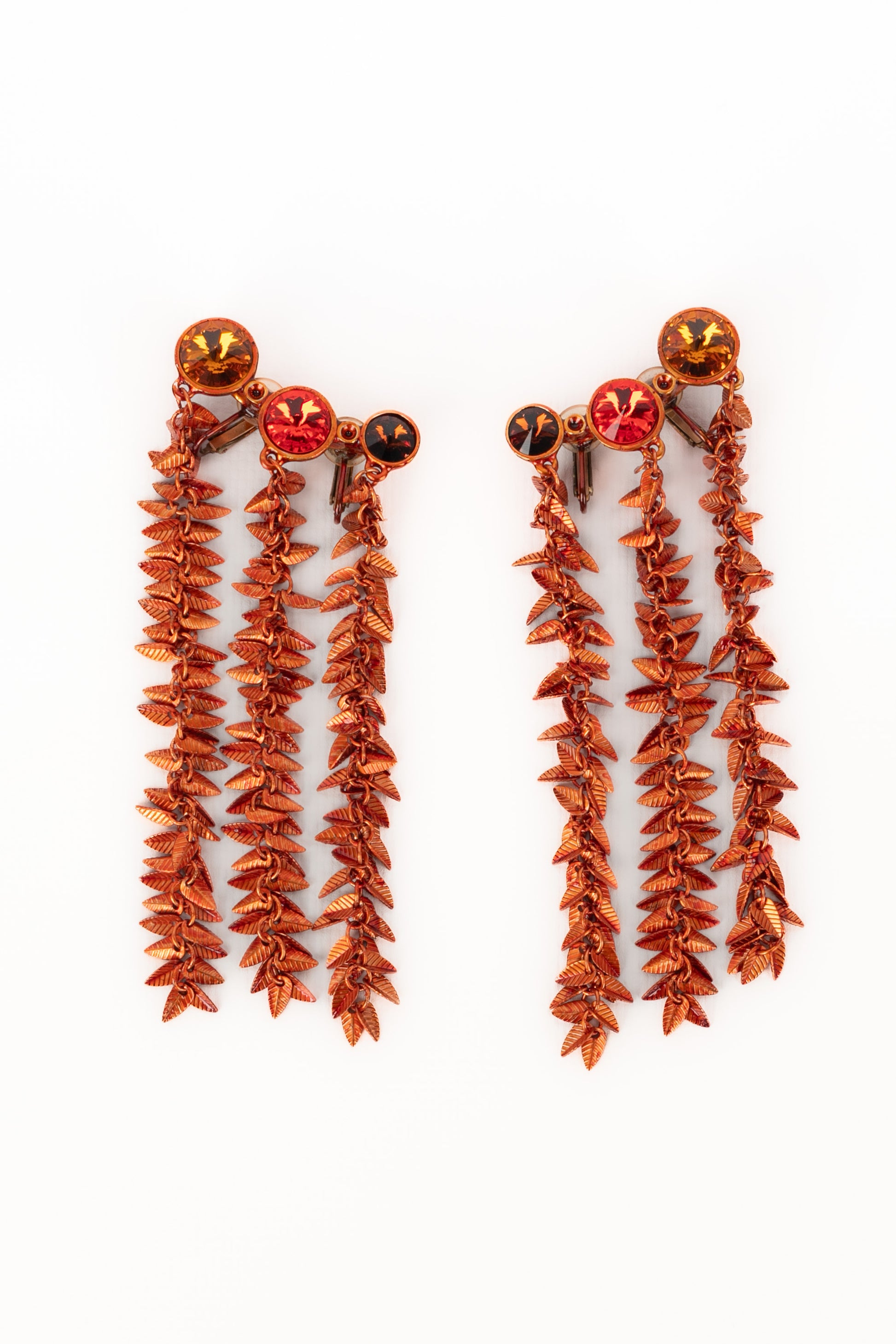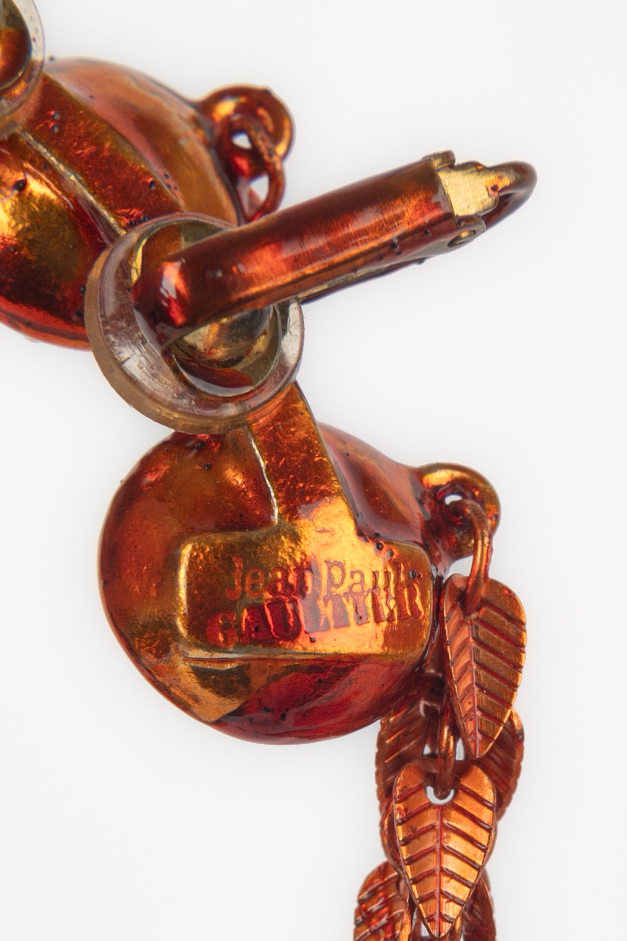 JEAN-PAUL GAULTIER -(Made in France) Boucles d'oreilles double clips en métal émaillé orange et strass.
