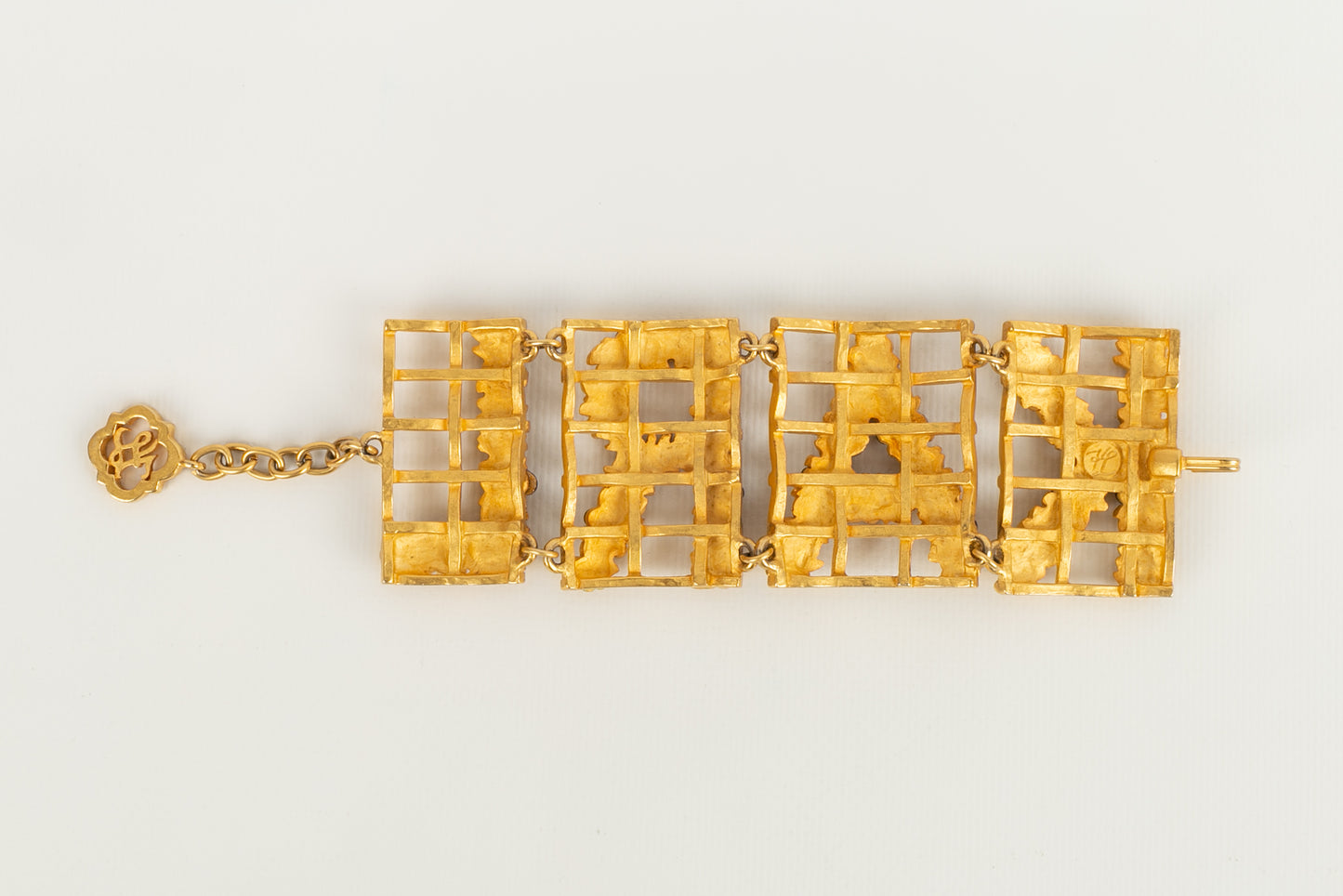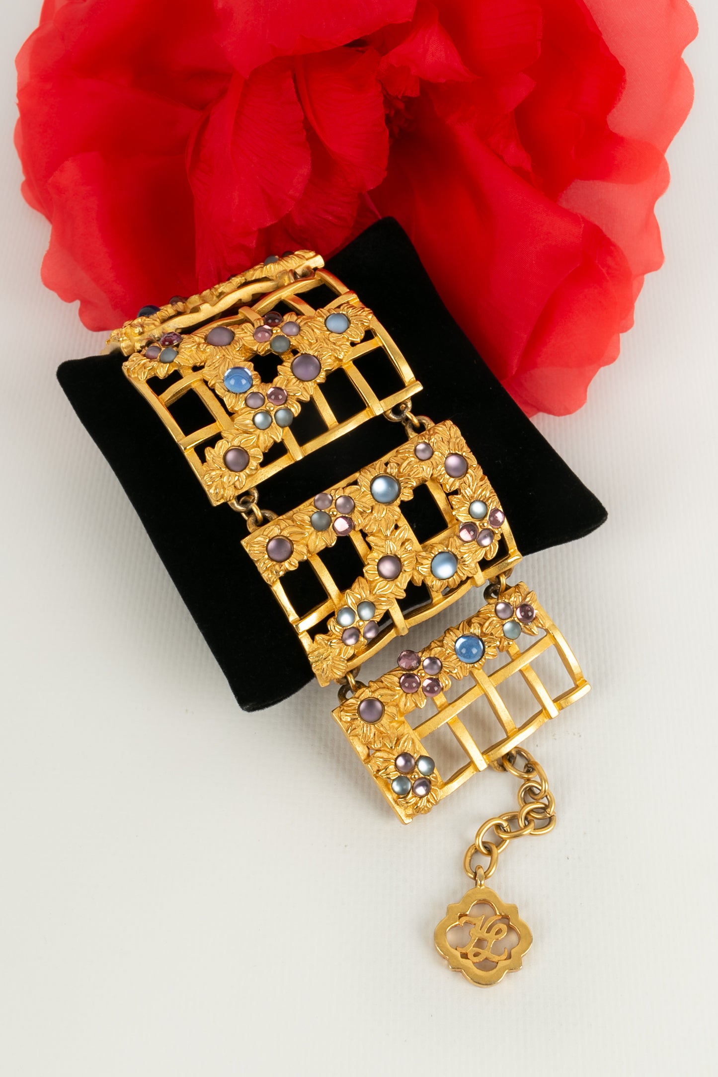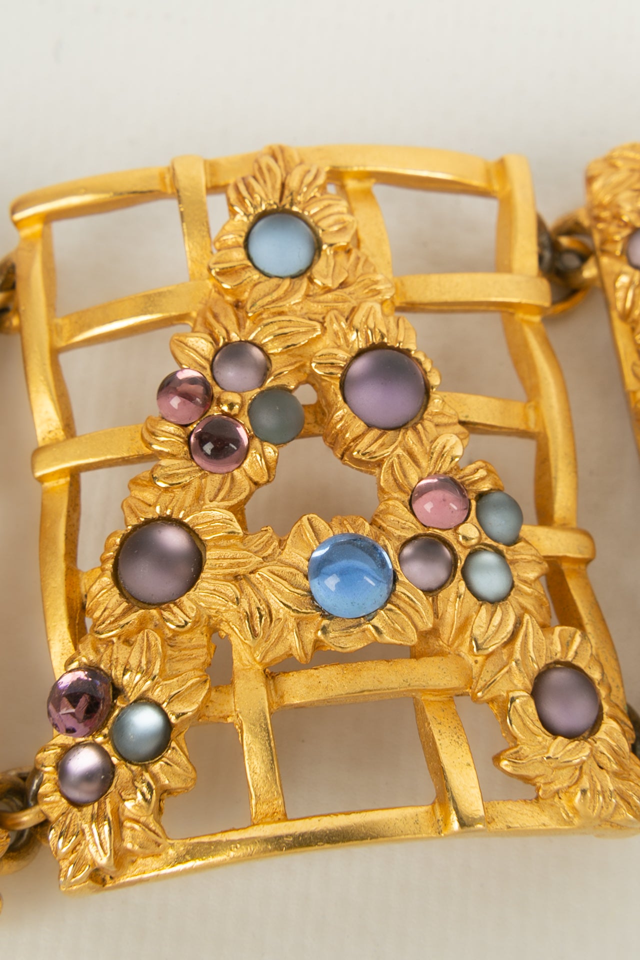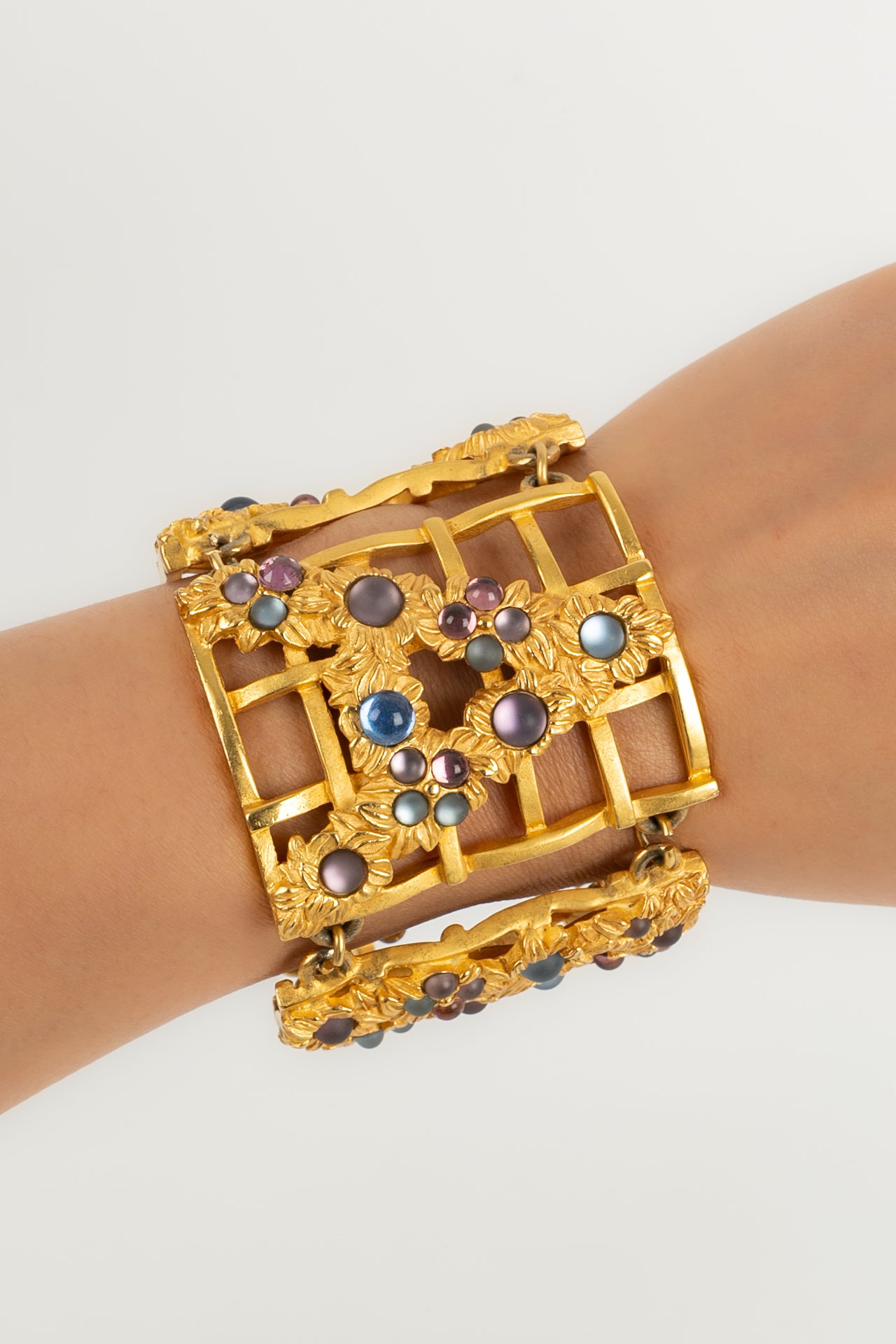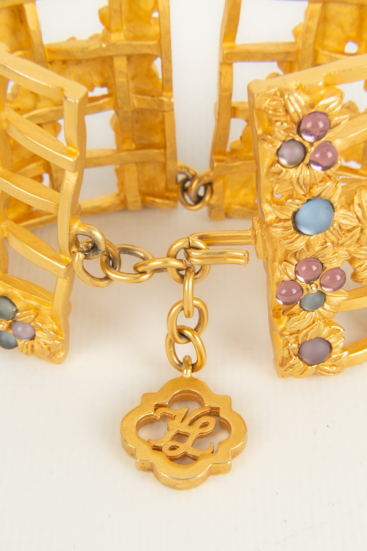 LAGERFELD -(Made in France) Bracelet articulé en métal doré pavé de petits cabochons.