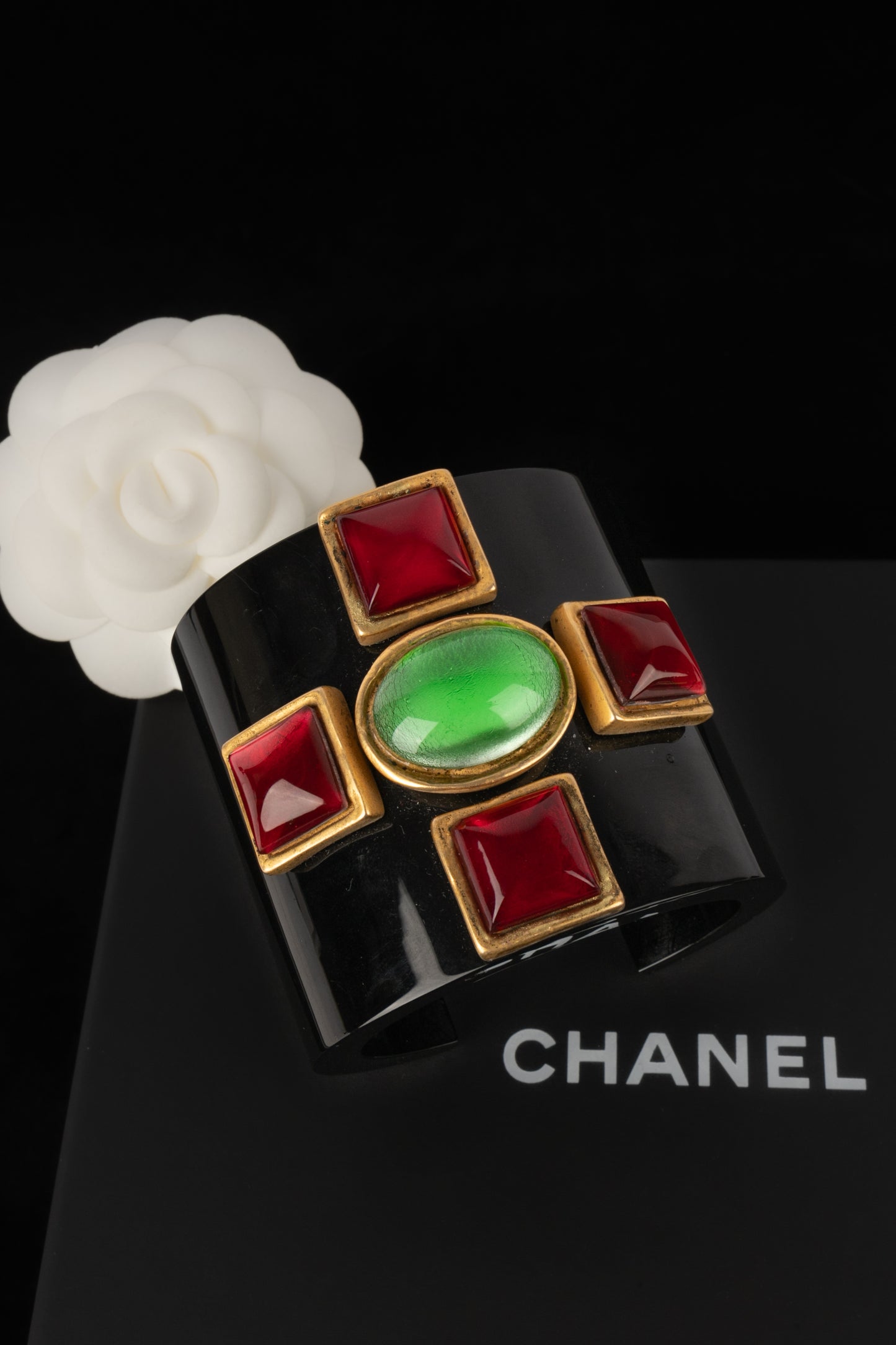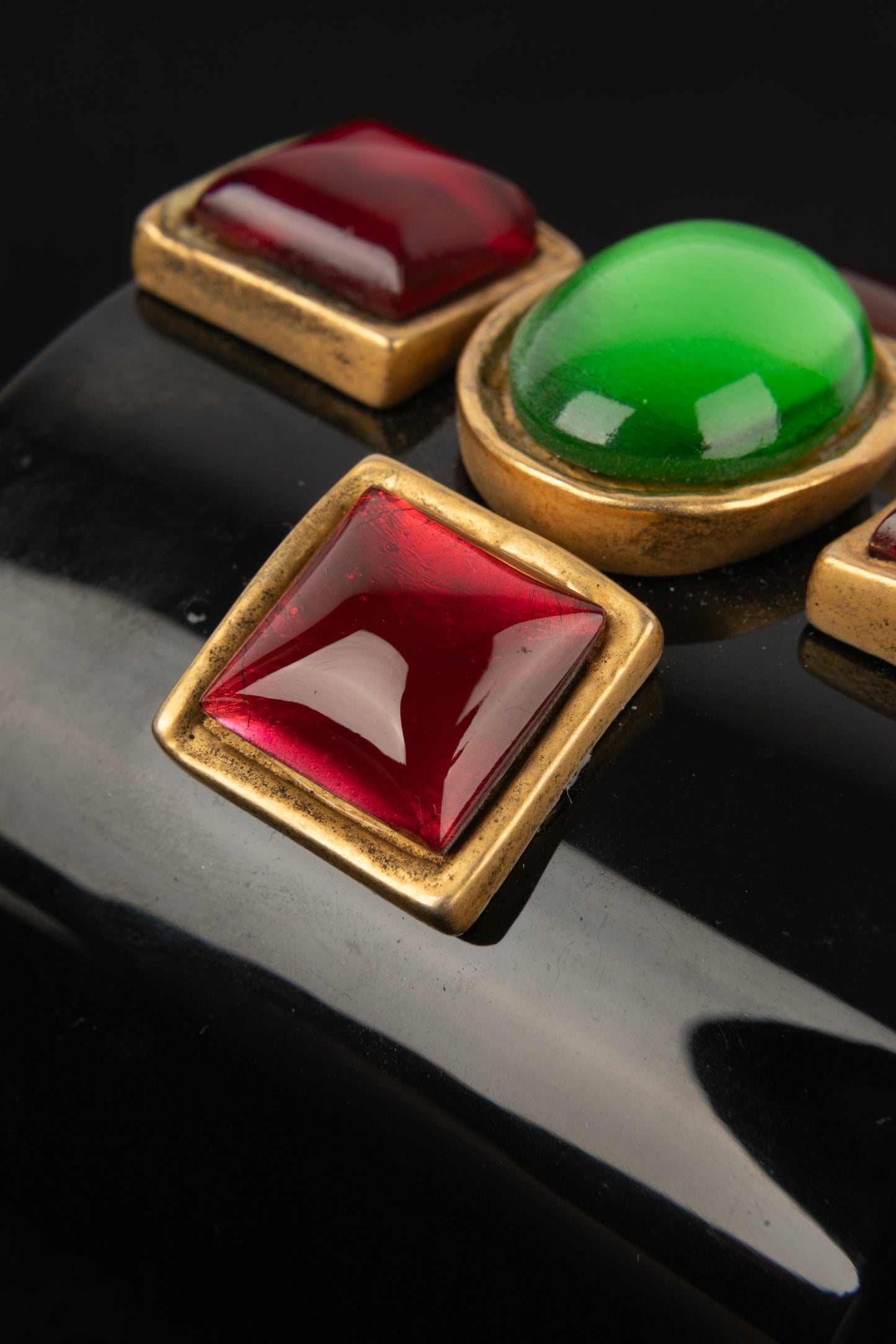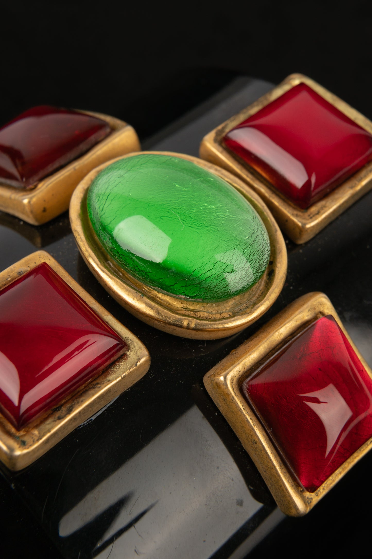 CHANEL -(Made in France) Boucles d'oreilles en métal doré et cabochons en pâte de verre. Collection Prêt-à-porter Automne-Hiver 1991 sous la direction artistique de Karl Lagerfeld.