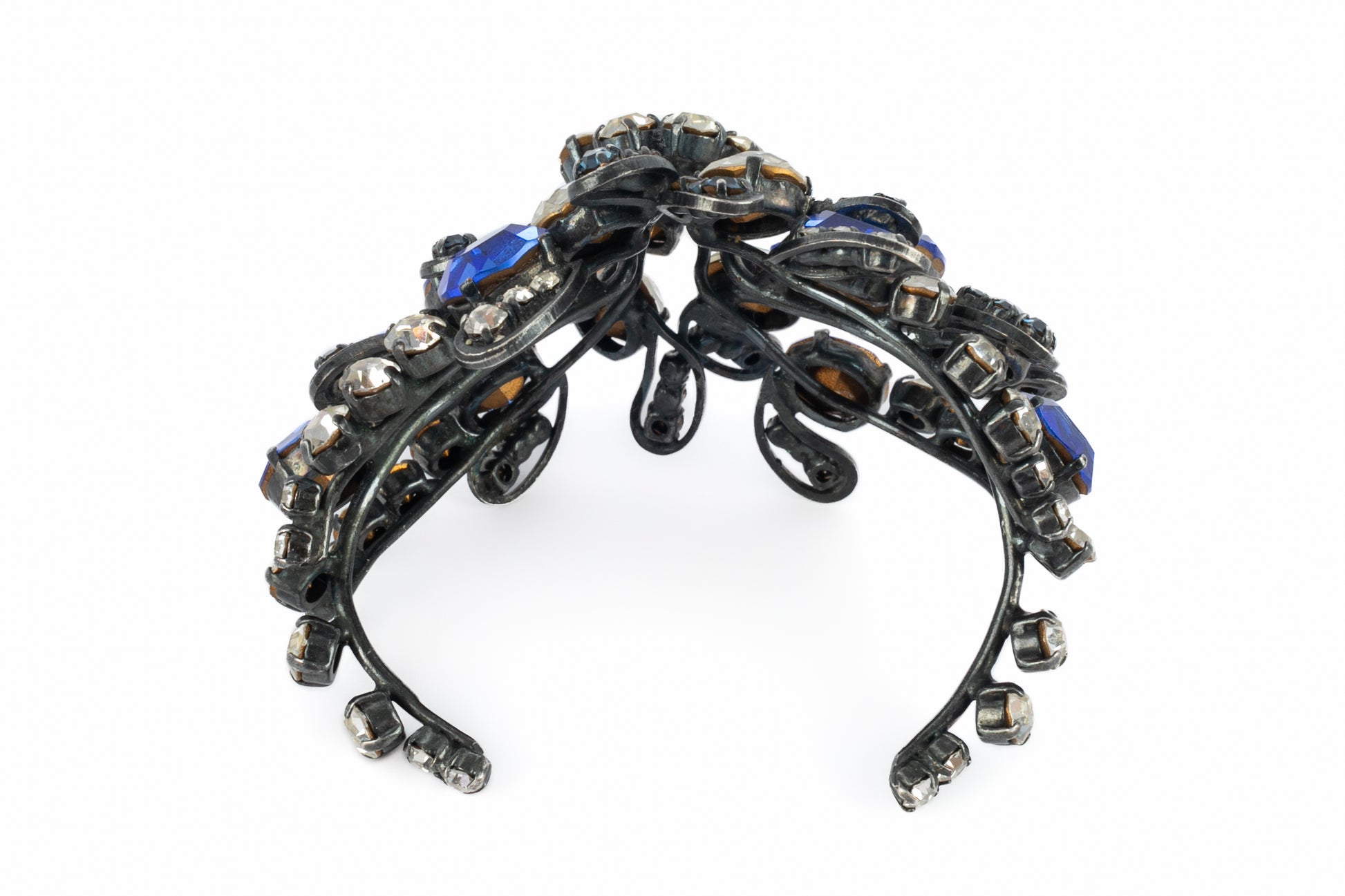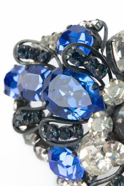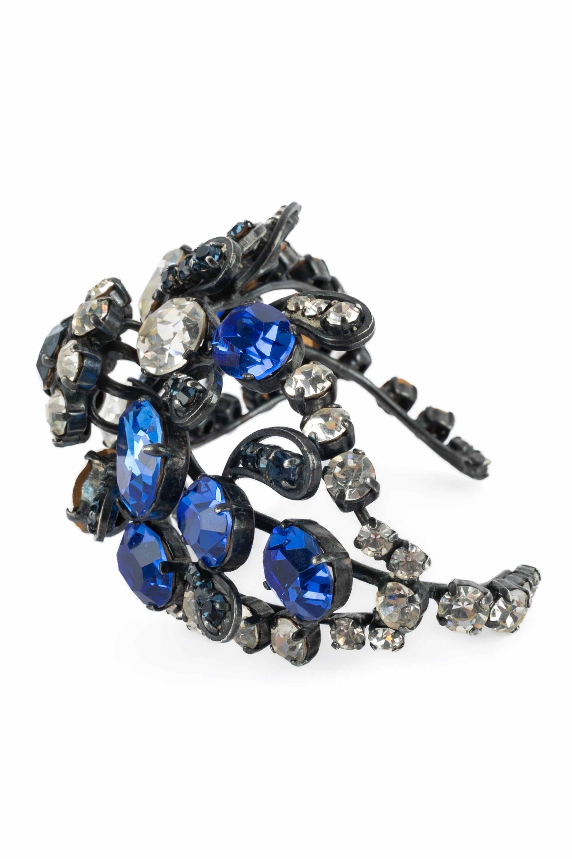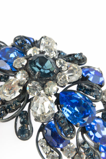 YVES SAINT LAURENT - Bracelet en métal orné de strass bleu et blanc. Collection Haute Couture circa 1980.