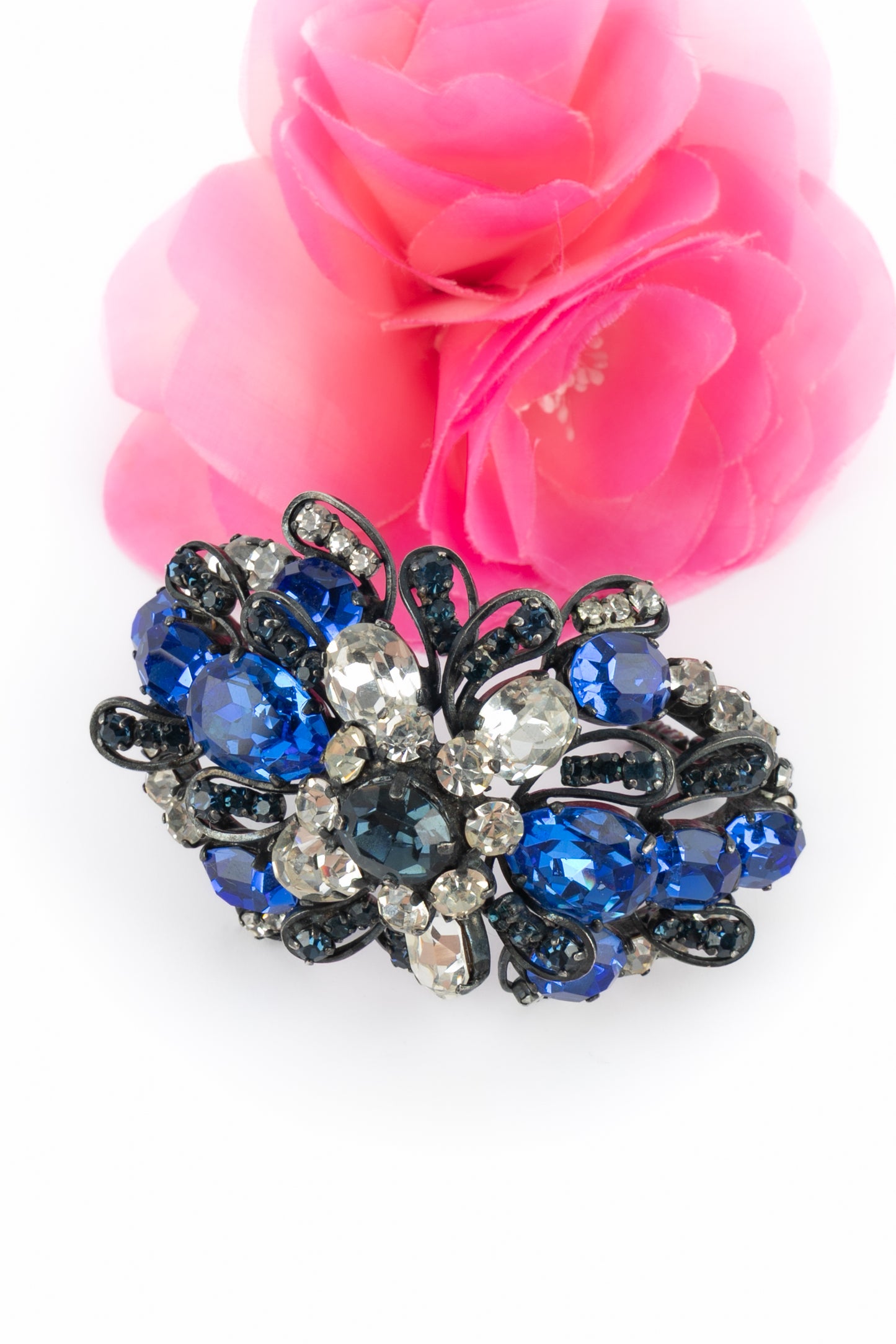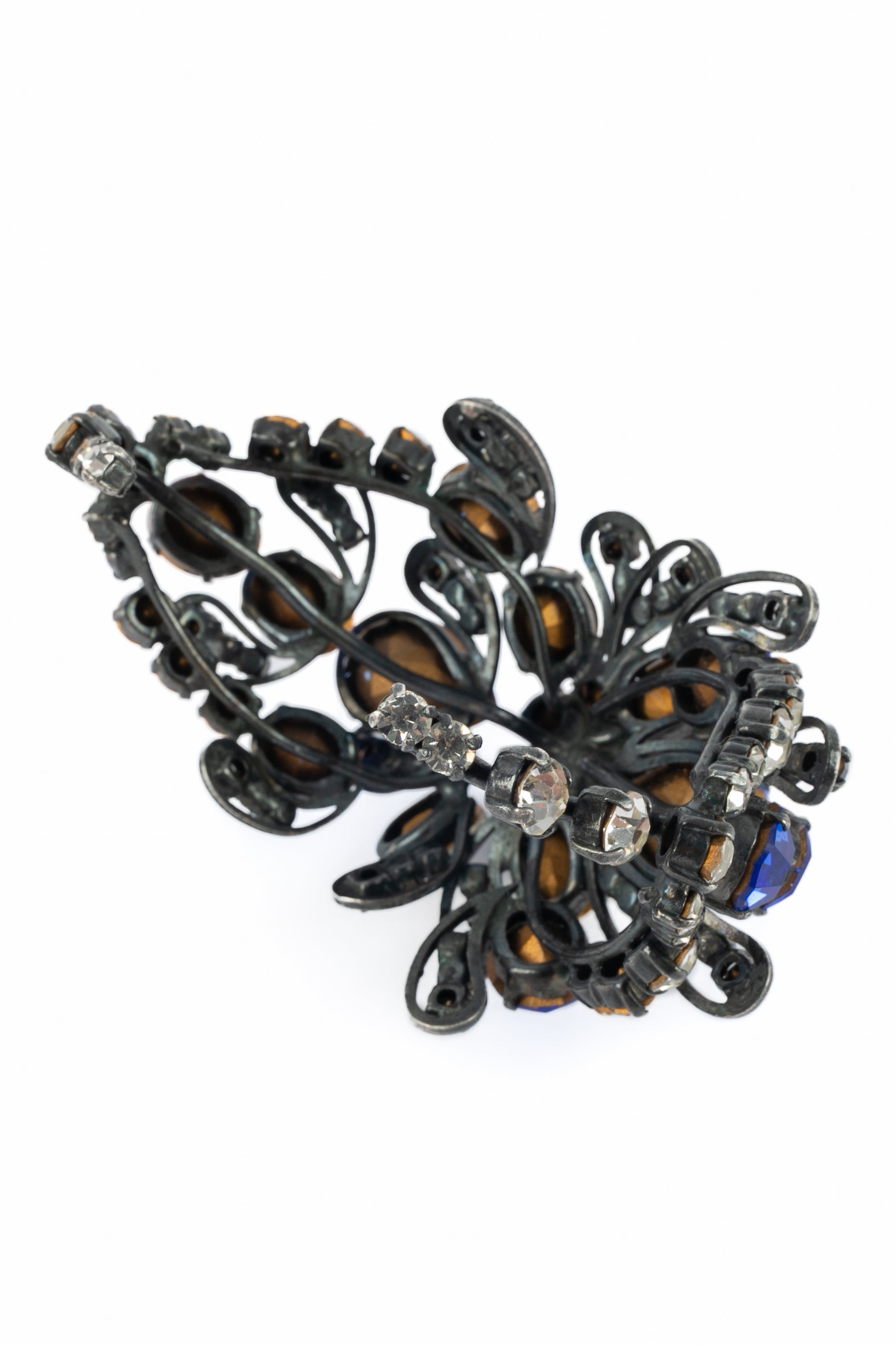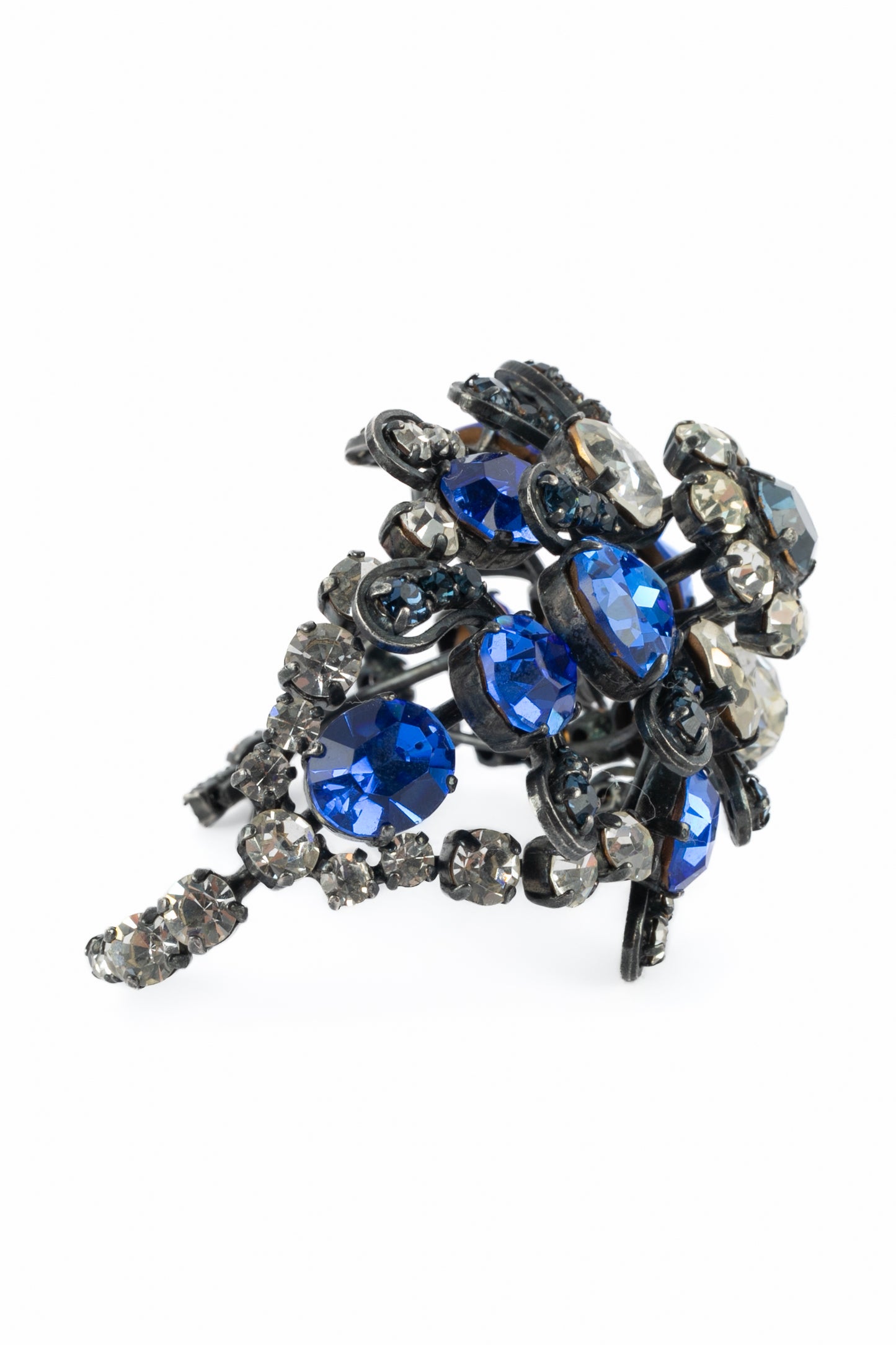 YVES SAINT LAURENT - Bracelet en métal orné de strass bleu et blanc. Collection Haute Couture circa 1980.