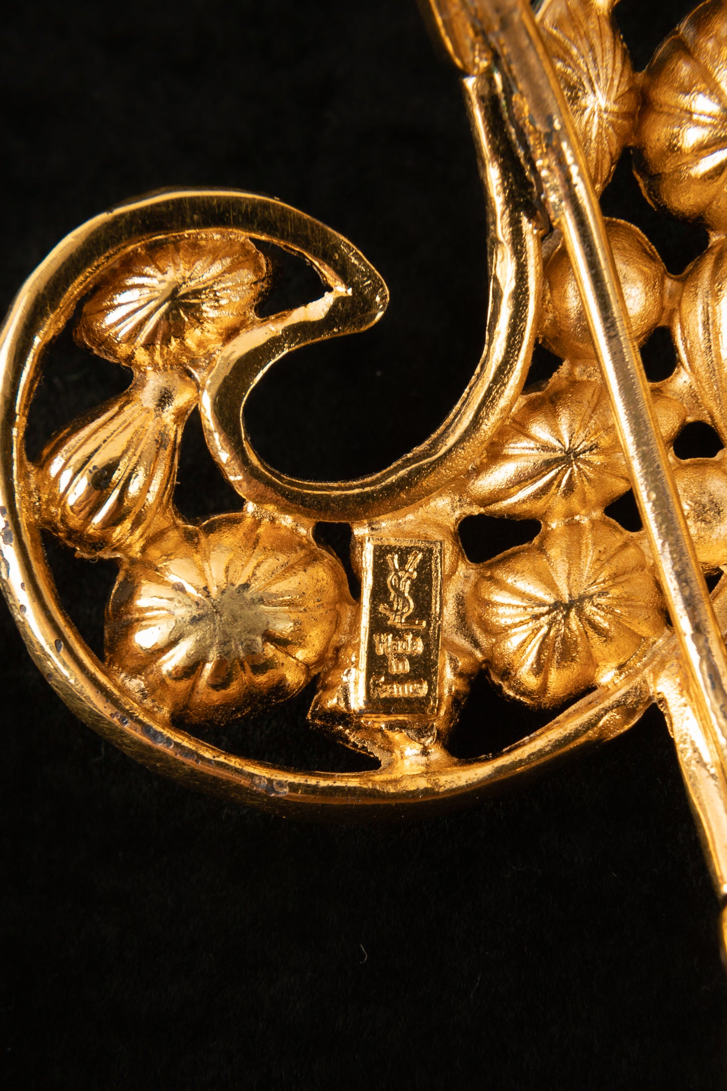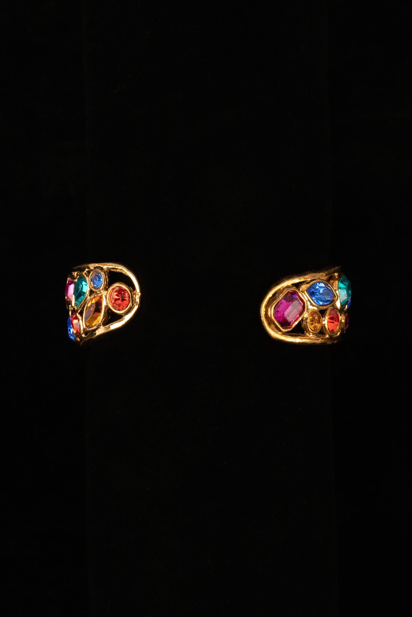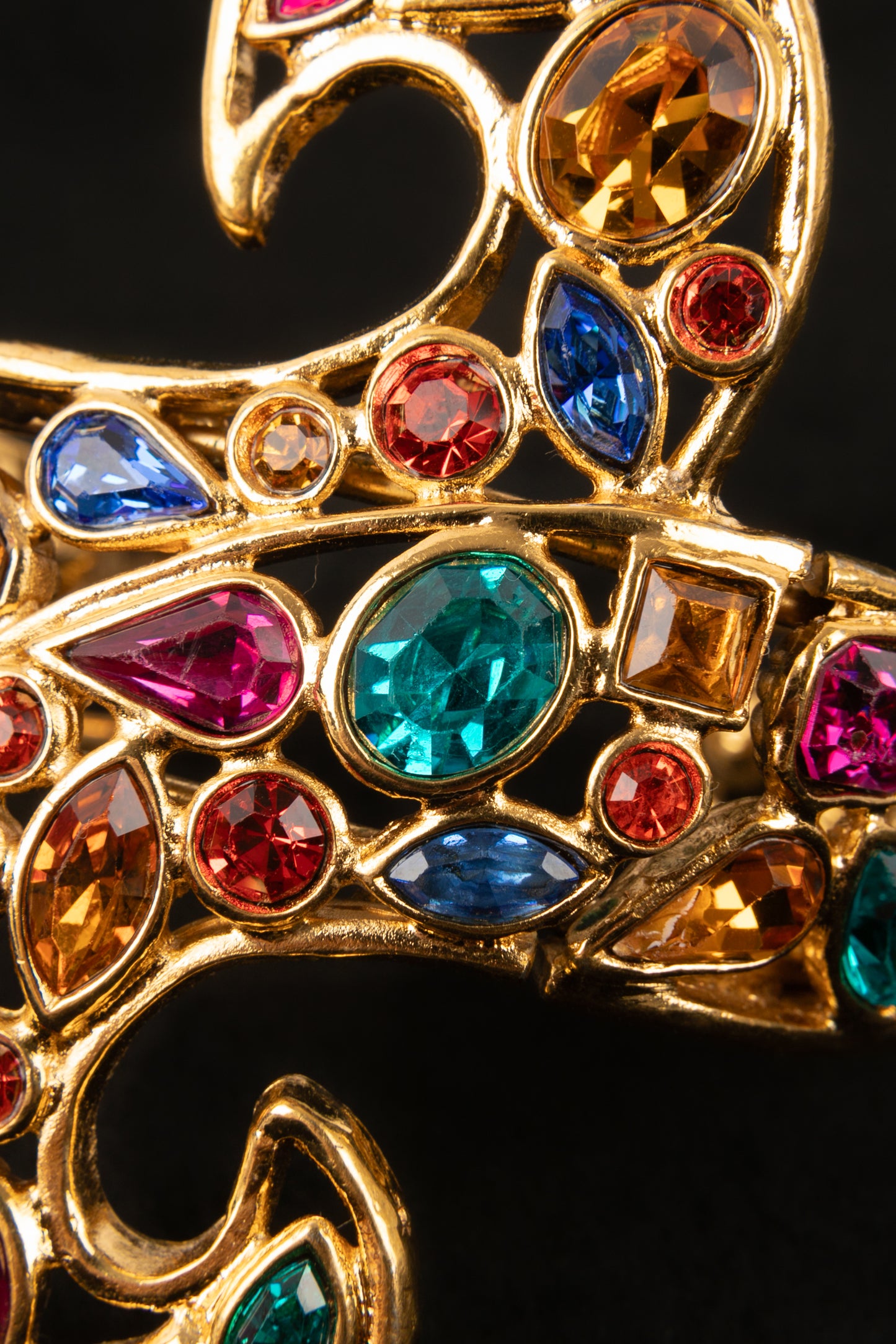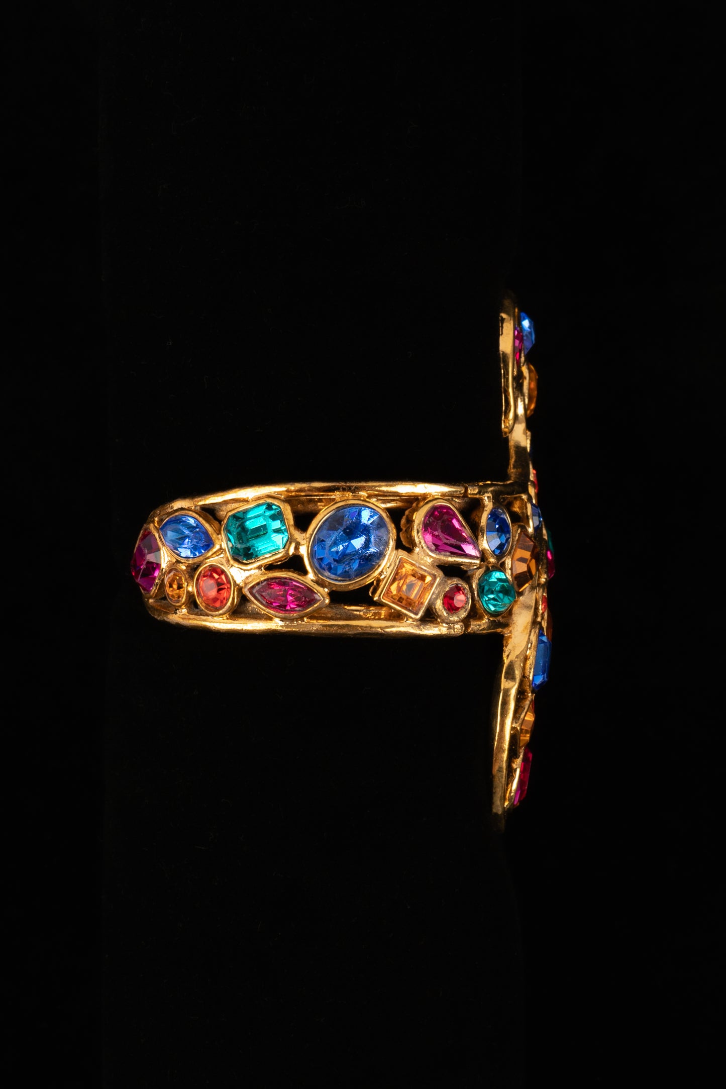 YVES SAINT LAURENT -(Made in France) Bracelet en métal doré ajouré et strass multicolores.