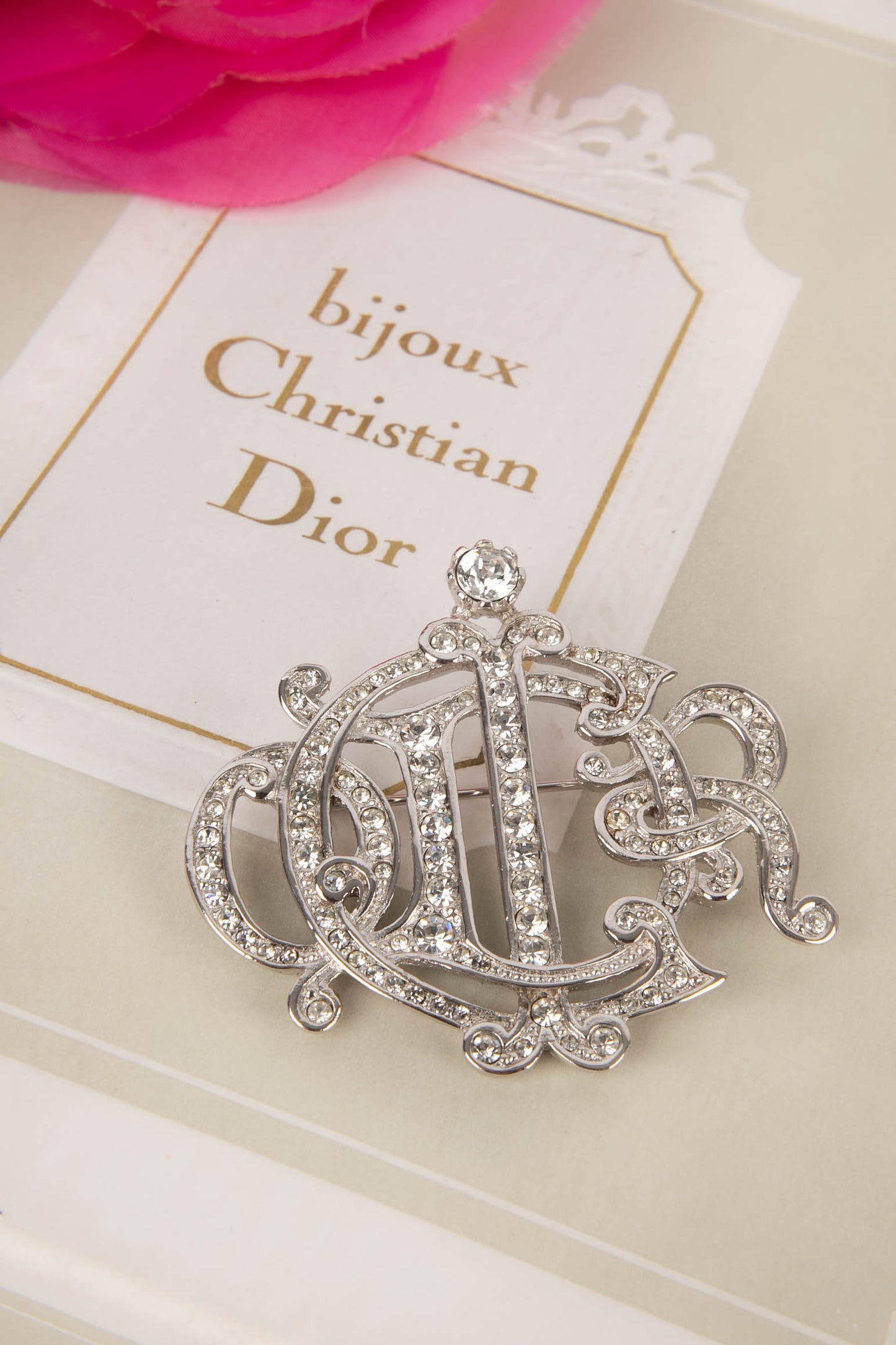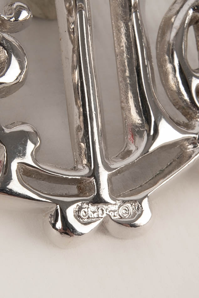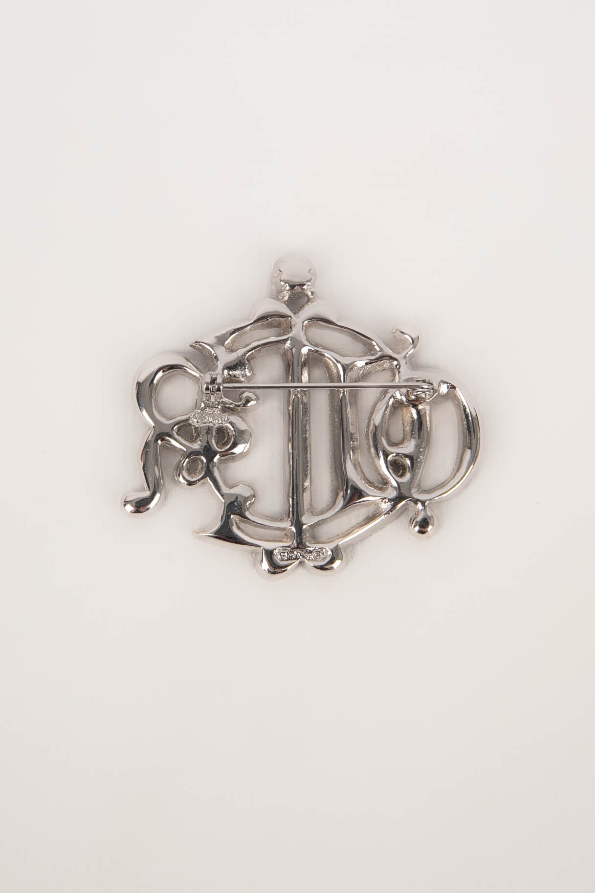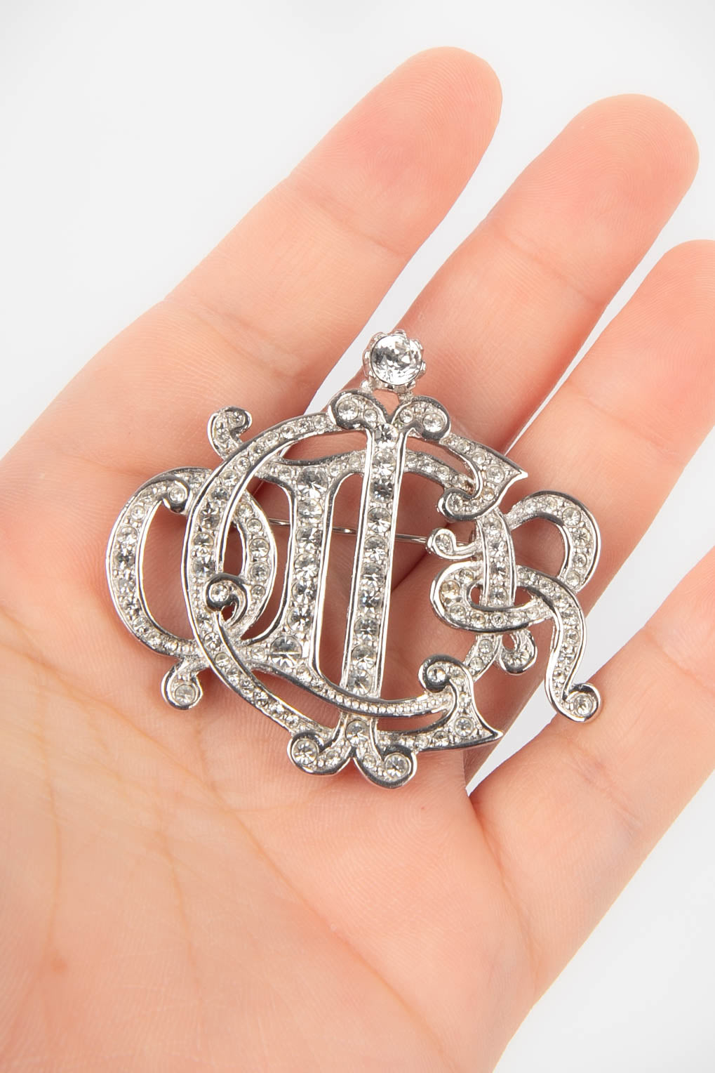 DIOR -(Made in Germany) Broche en métal argenté et strass.