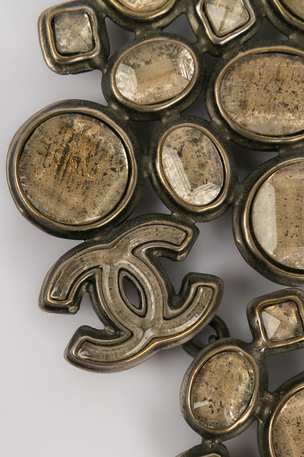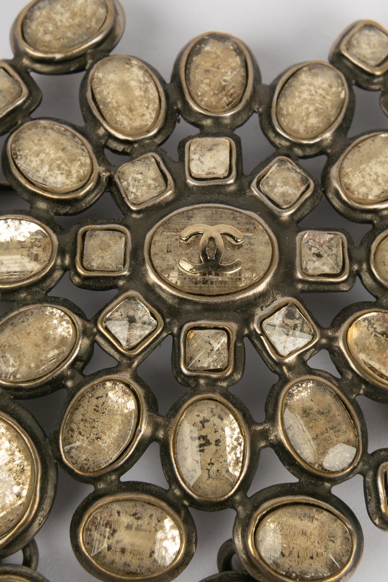 CHANEL -(Made in Italy) Broche en métal argenté foncé et résine. Collection Resort 2010.