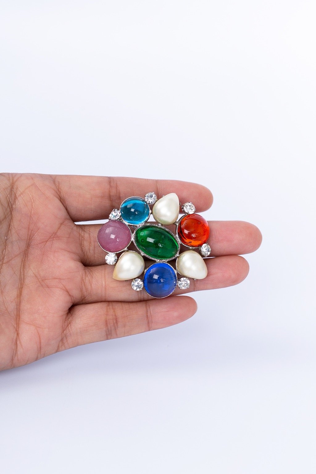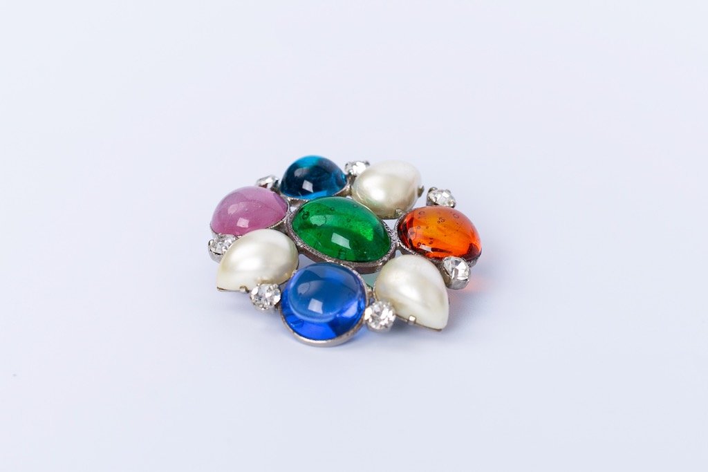 Broche en pâte de verre multicolore
