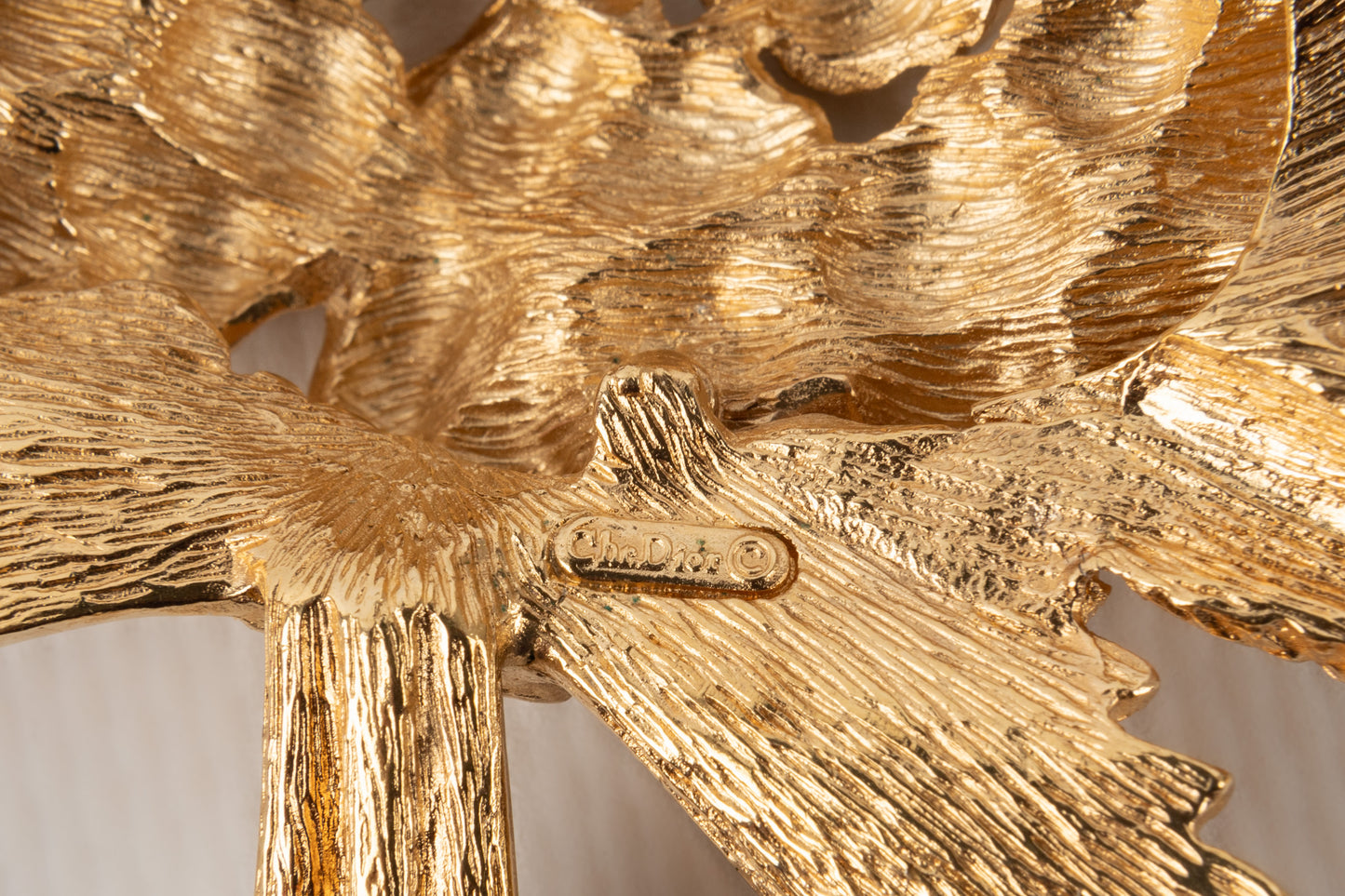DIOR -Imposante broche en métal doré figurant un bouquet de fleurs pavé de strass de couleur.