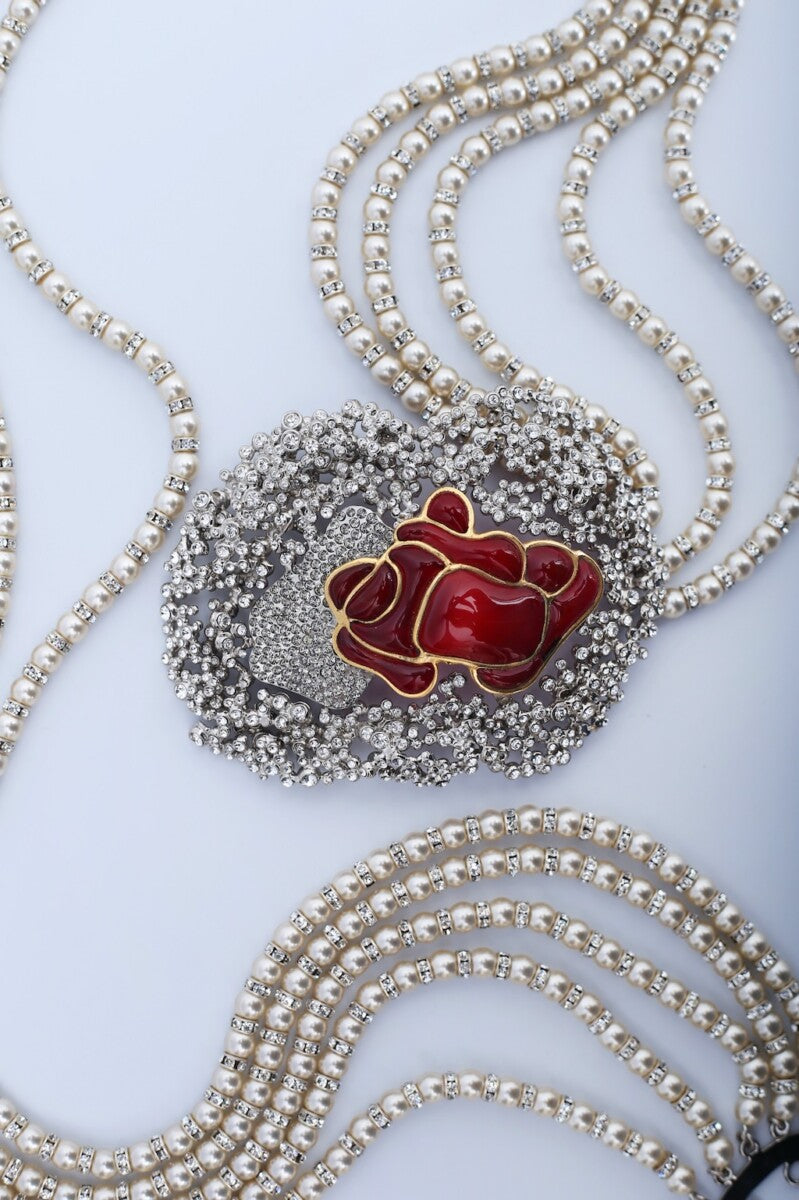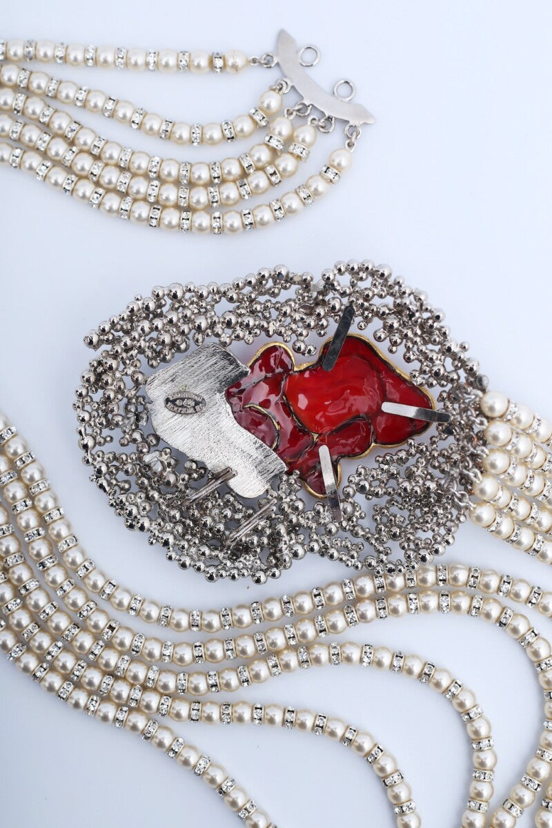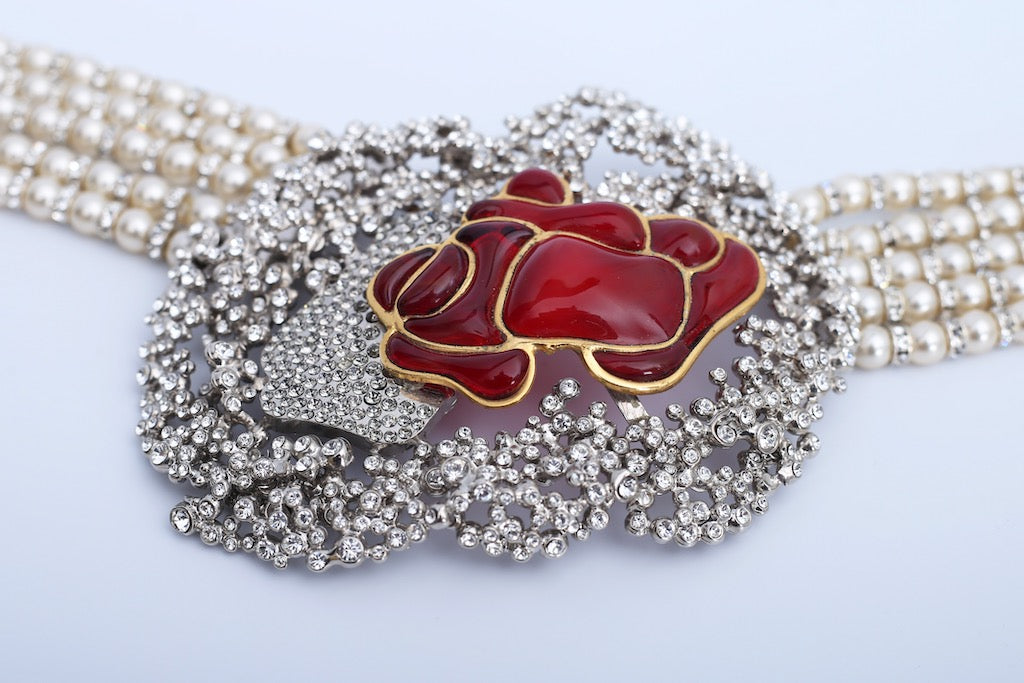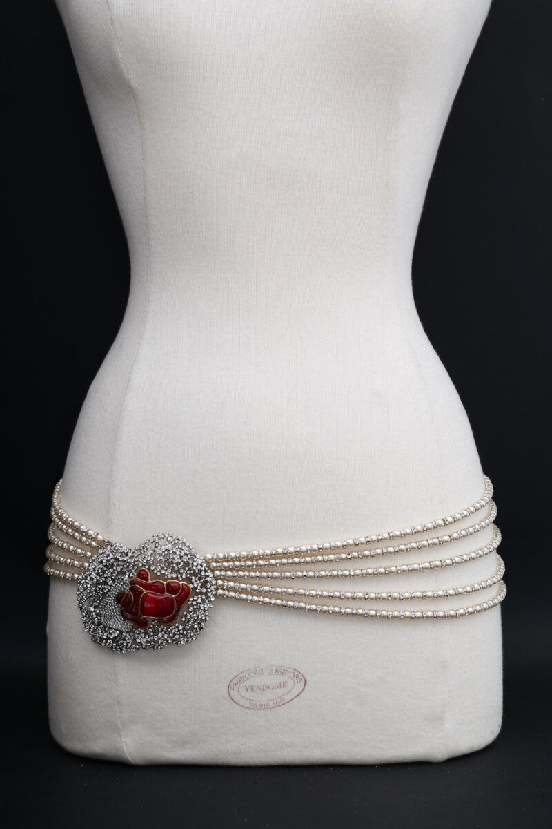 Ceinture de perles et rose en pâte de verre Serge-Eric Woloch