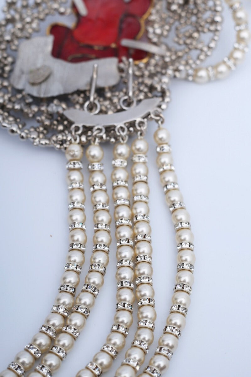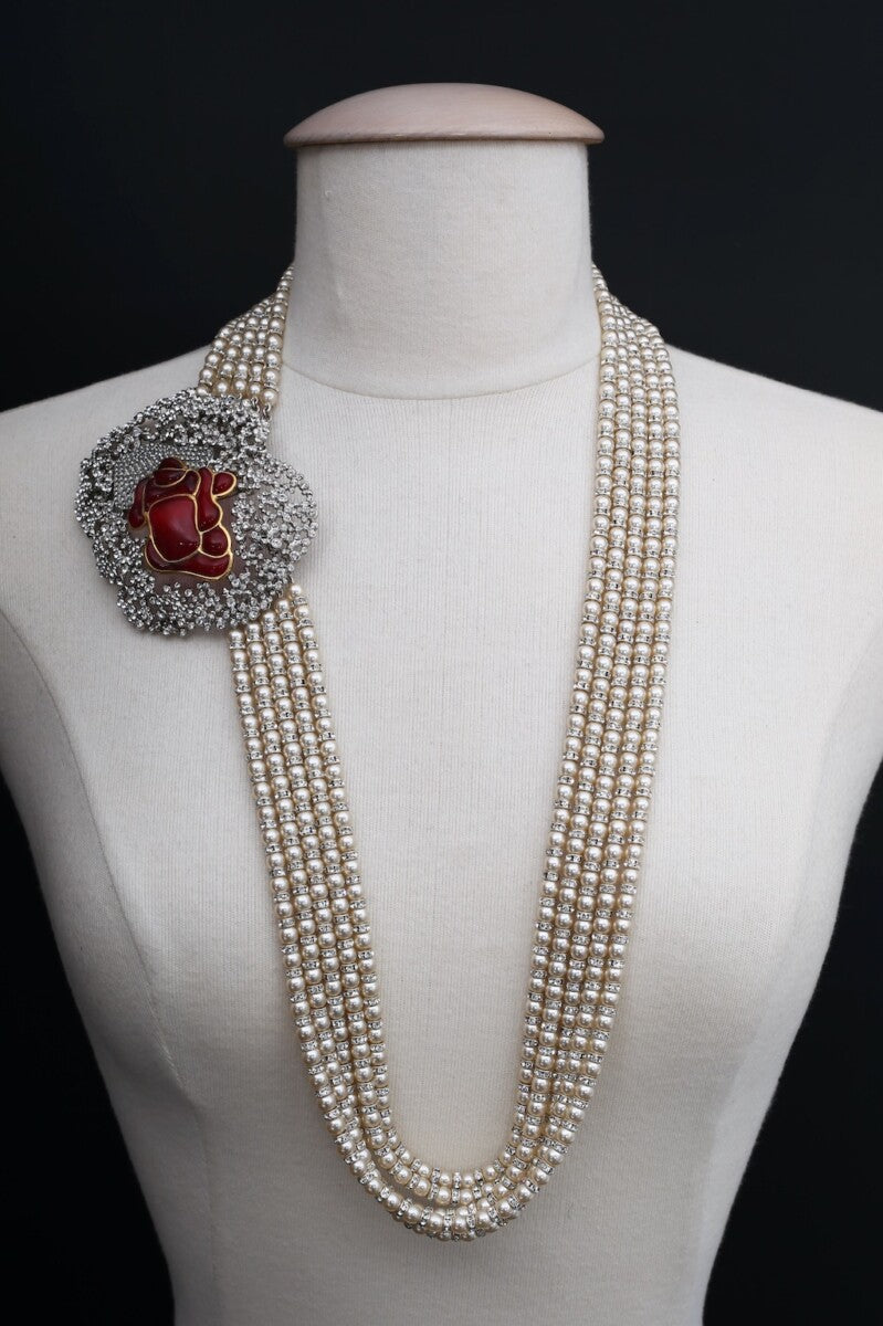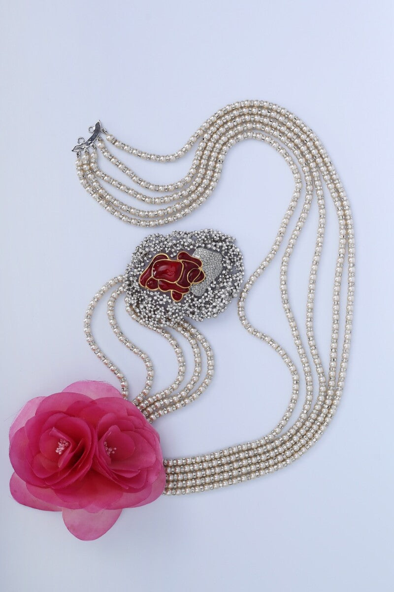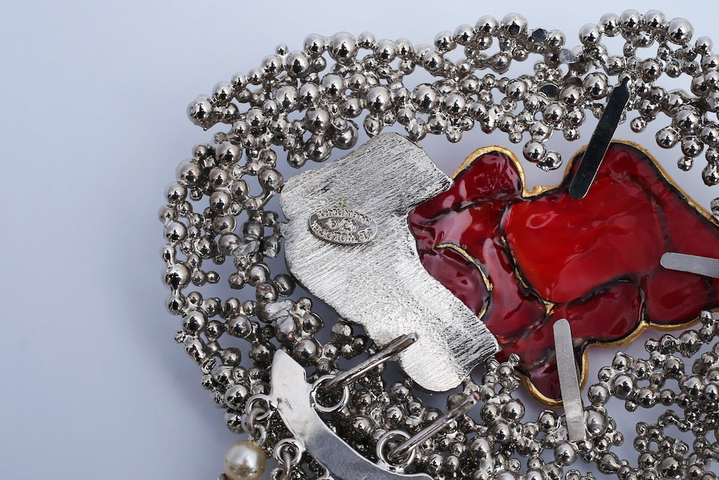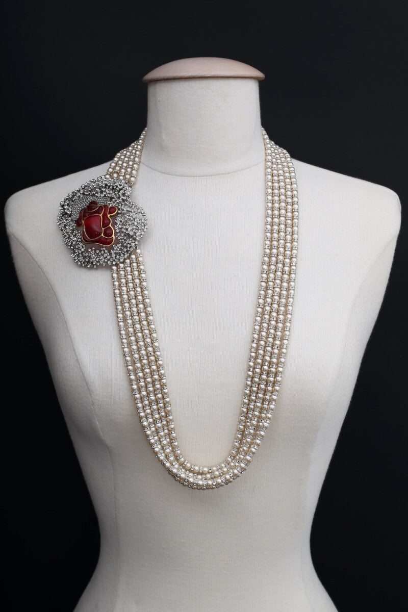 Ceinture de perles et rose en pâte de verre Serge-Eric Woloch