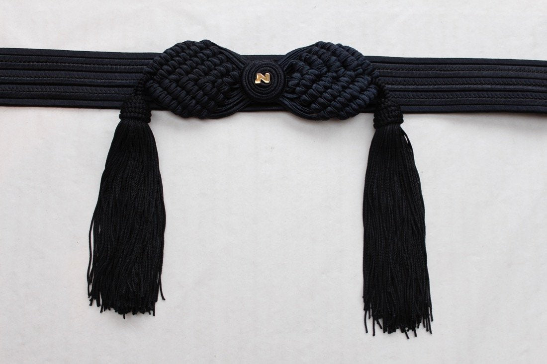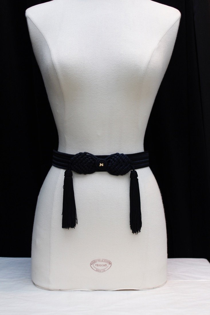 NINA RICCI -(Made in France) Ceinture en passementerie ornée de deux pompons. Elle se ferme par un passant situé dans le dos.