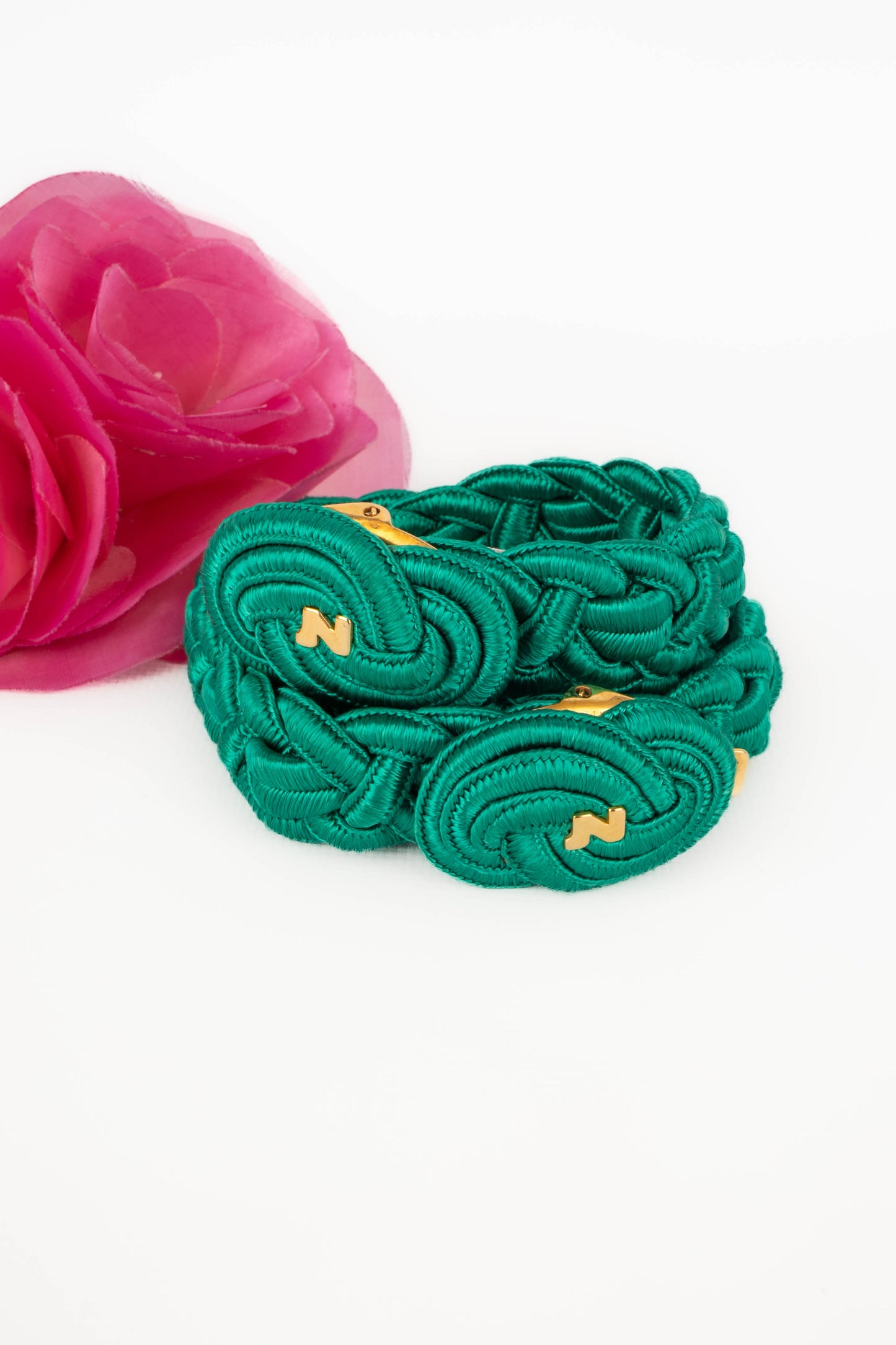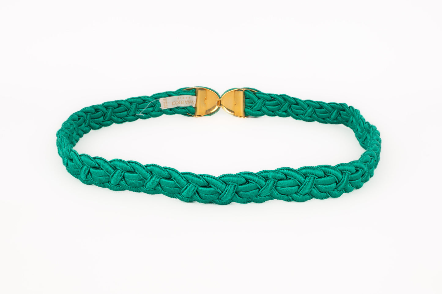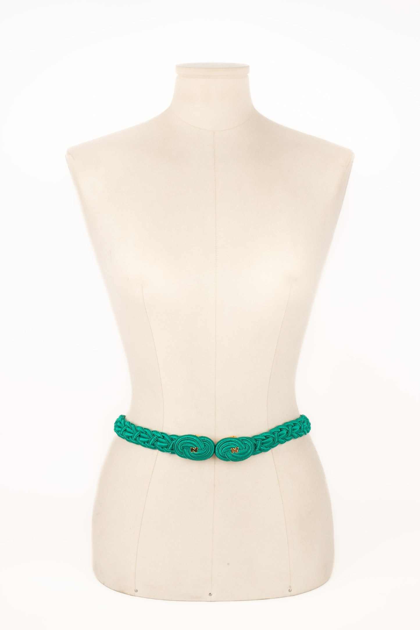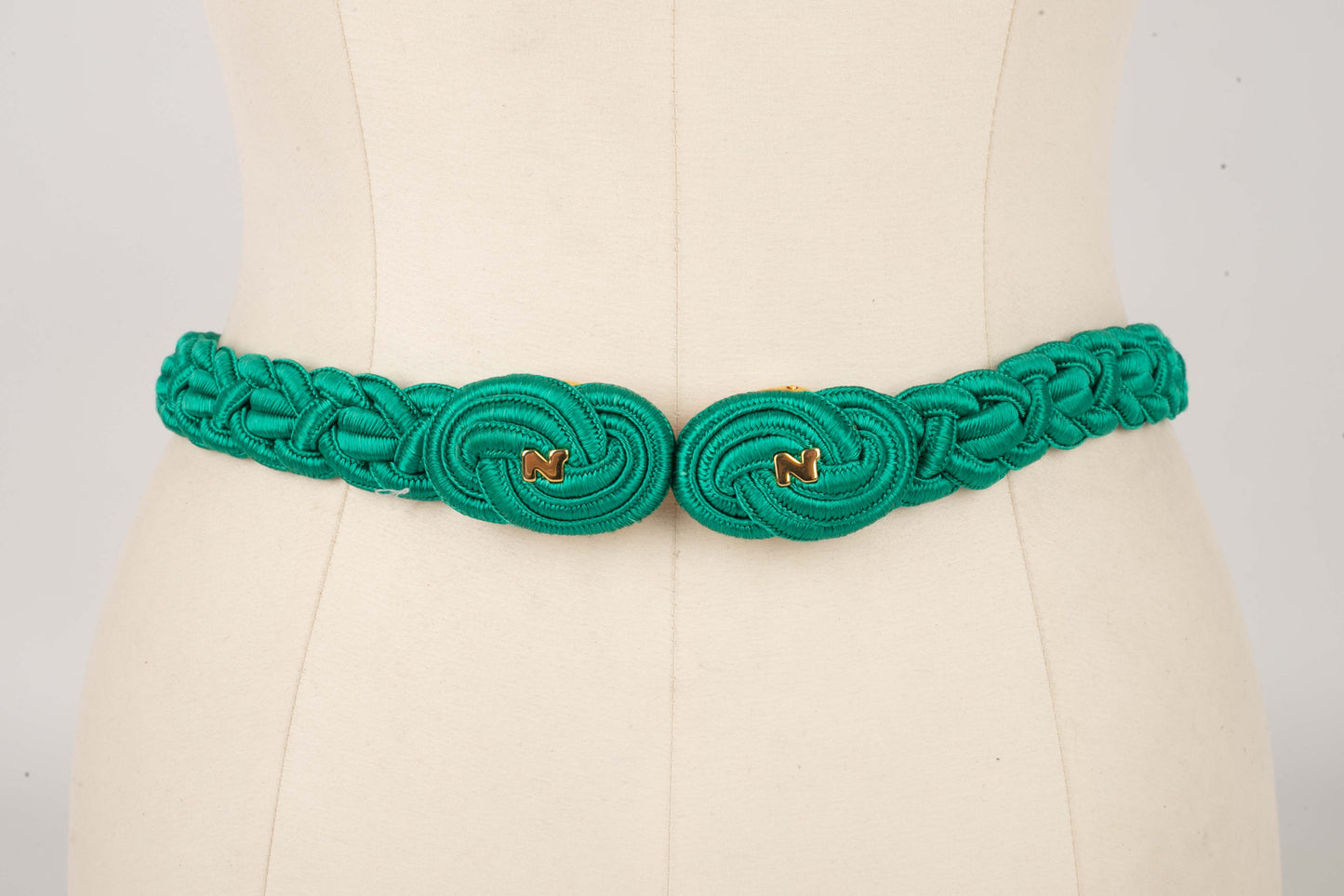 NINA RICCI -(Made in France) Ceinture en passementerie verte et métal doré.