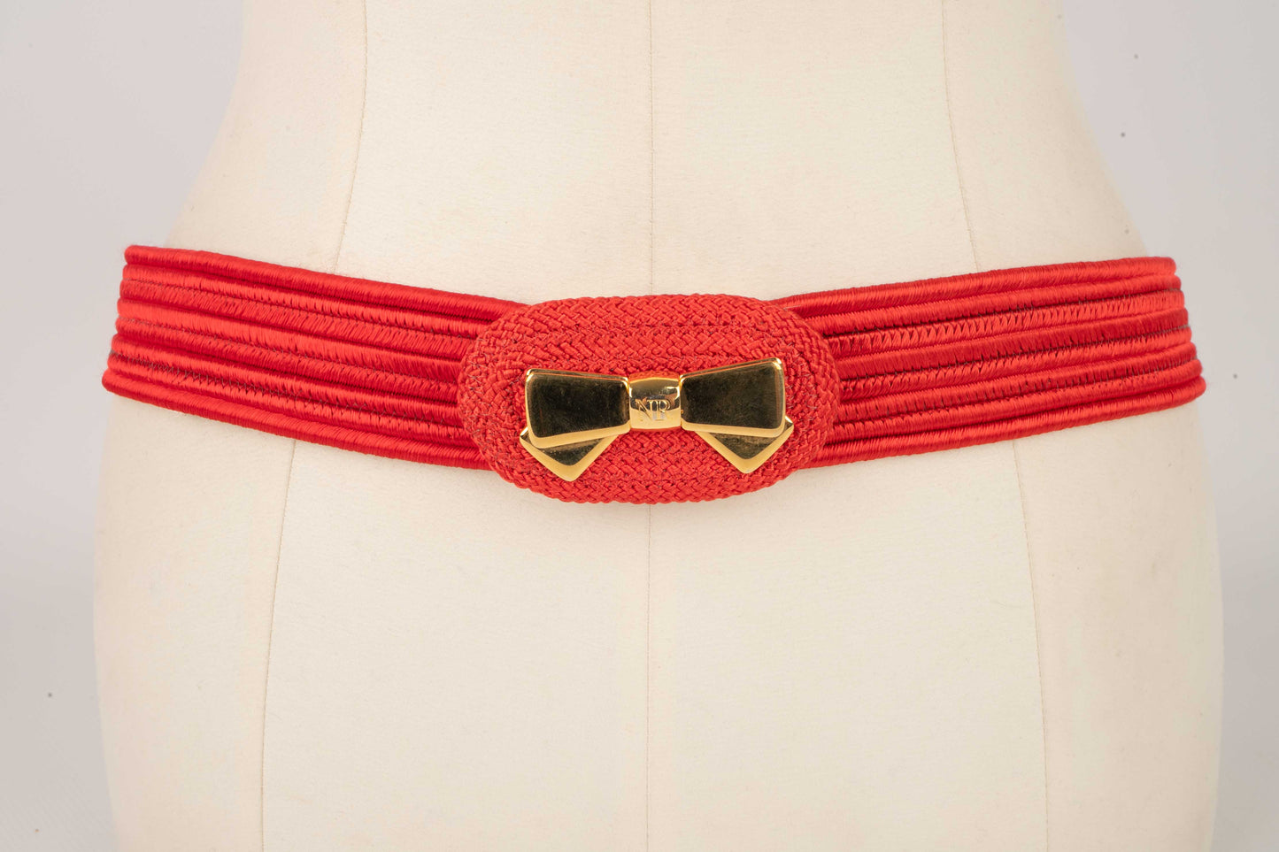 NINA RICCI -(Made in France) Ceinture en passementerie rouge et métal doré.