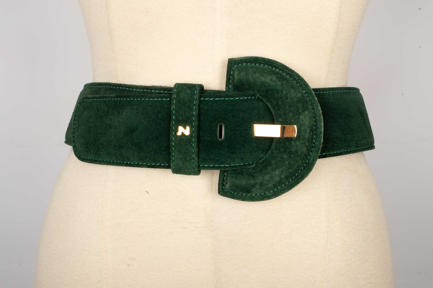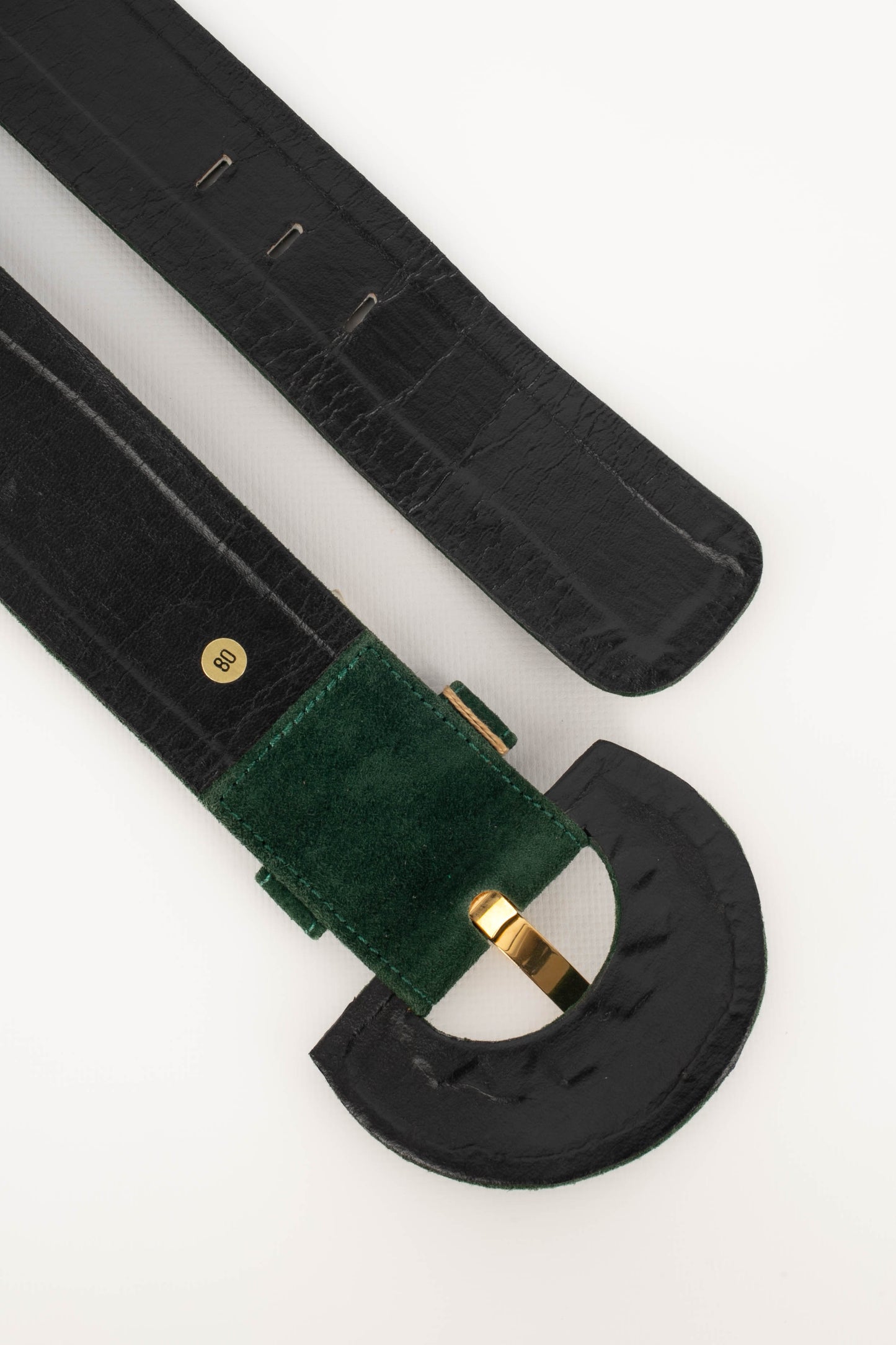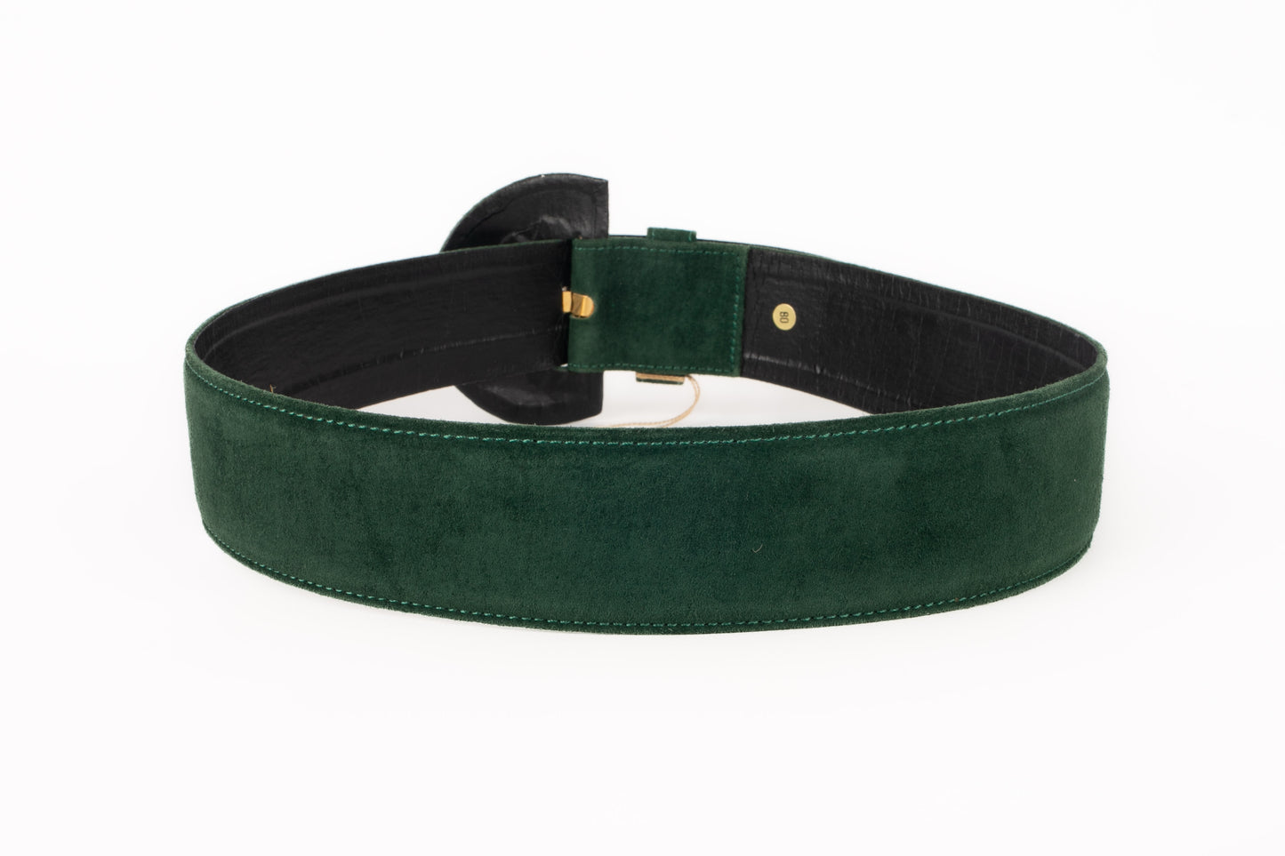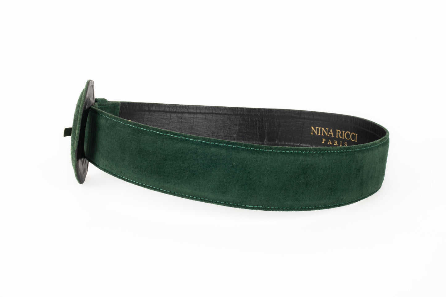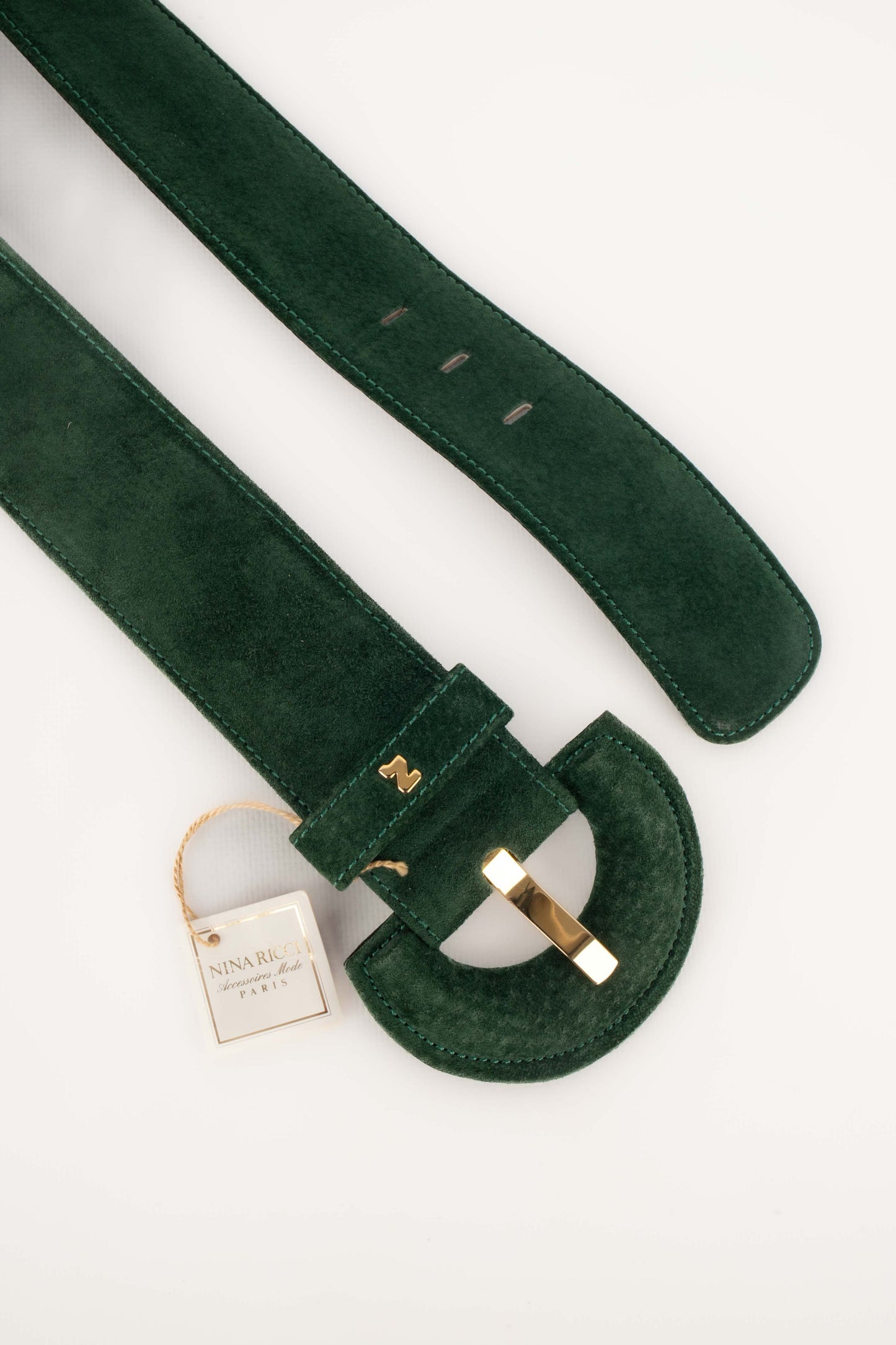 NINA RICCI -Ceinture en daim vert et métal doré.