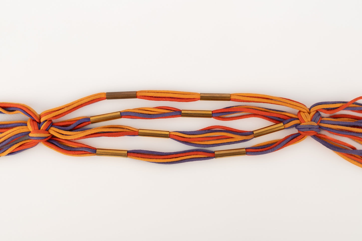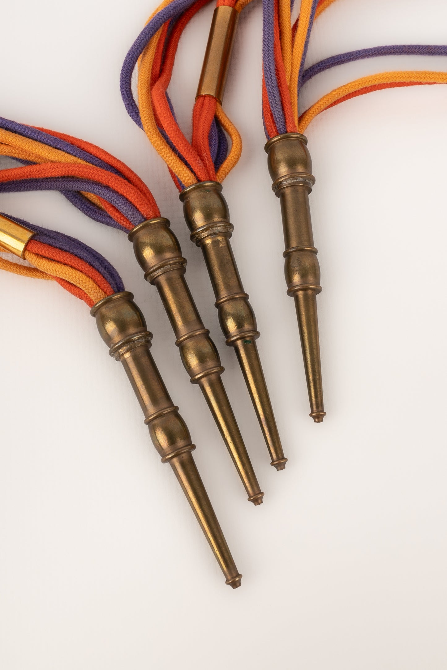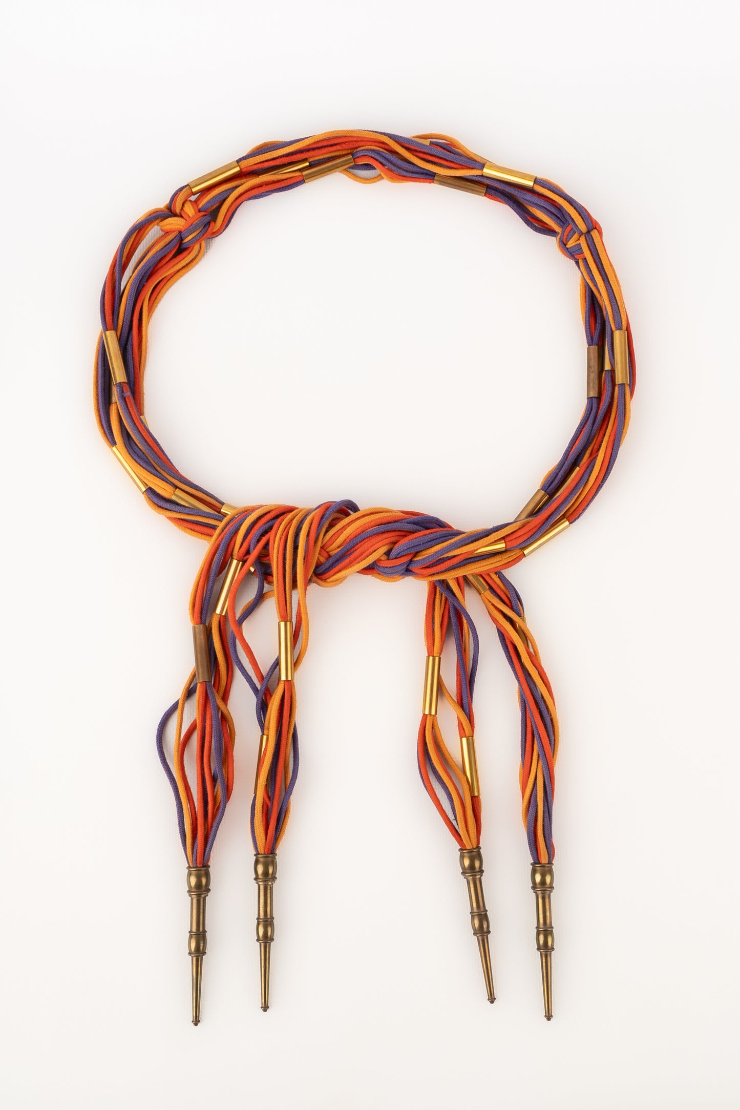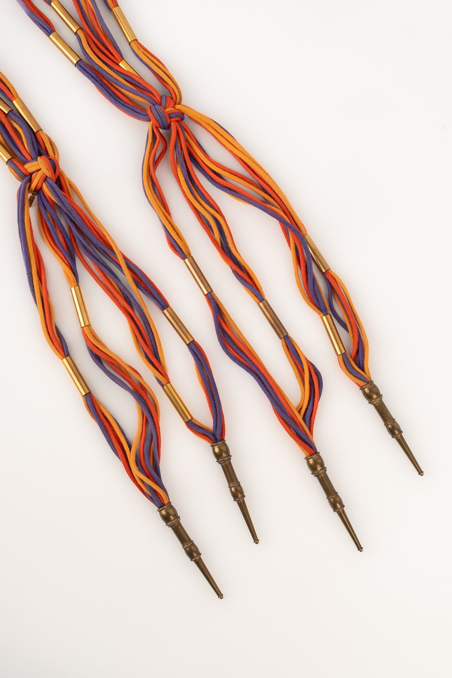 YVES SAINT LAURENT -Ancienne ceinture en cordons de coton coloré et éléments en métal doré. Non signée.