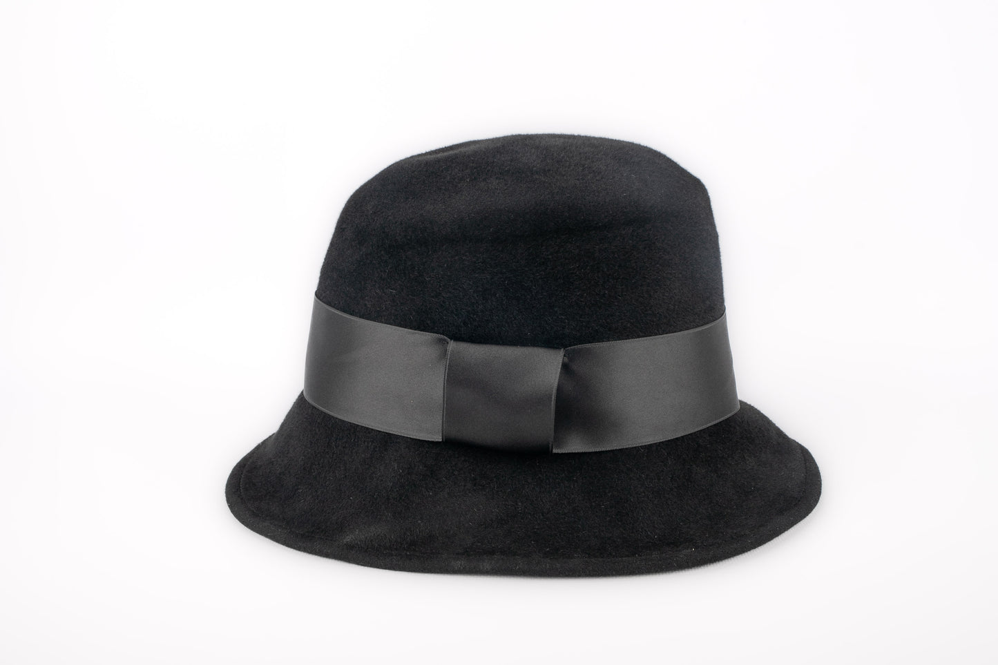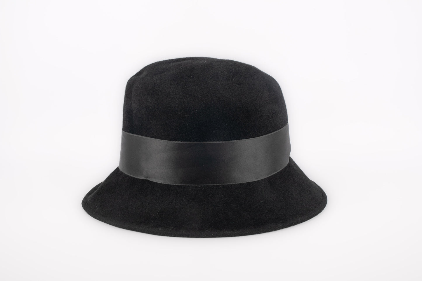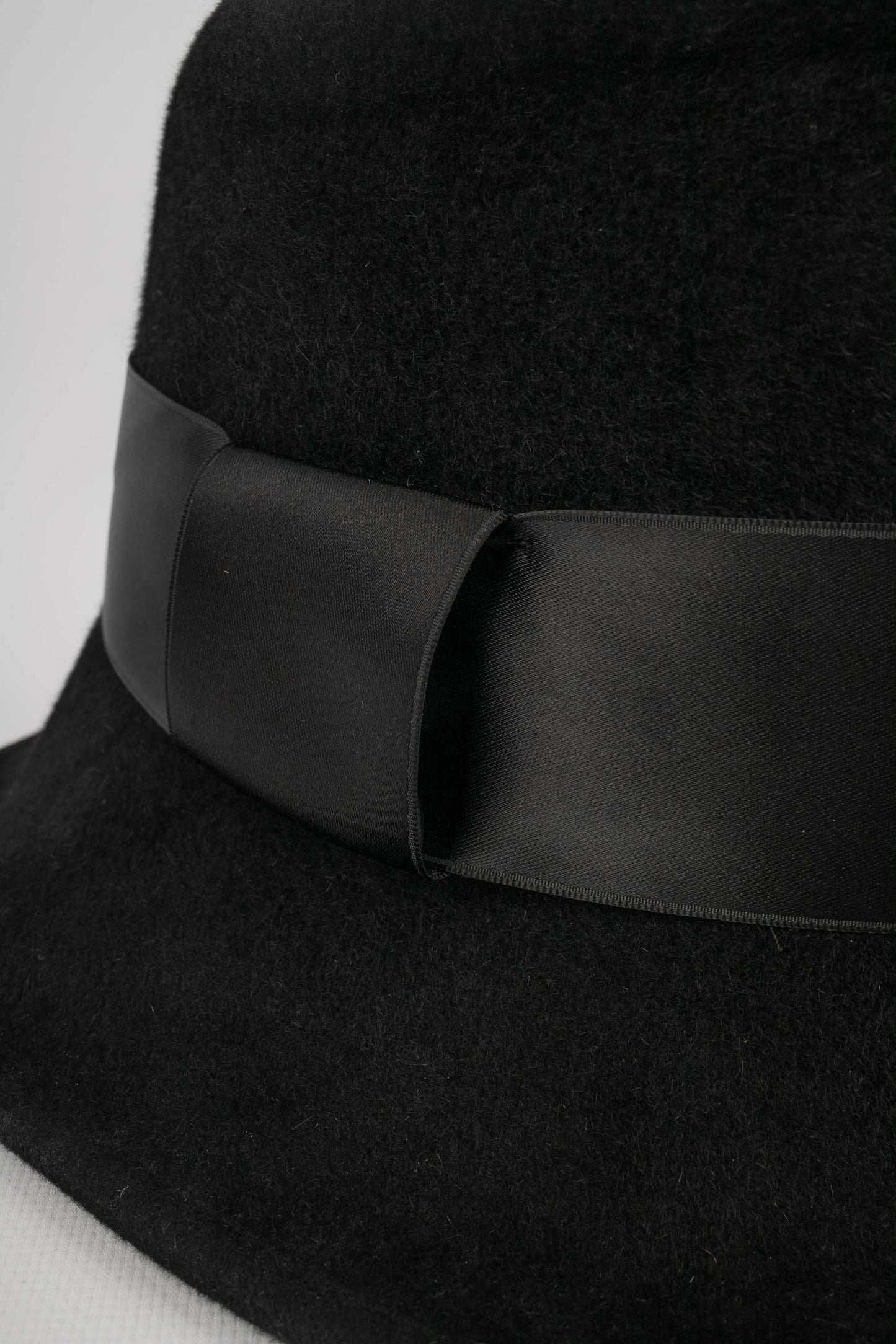 CHRISTIAN LACROIX -(Made in France) Chapeau en taupé noir et ruban de satin.