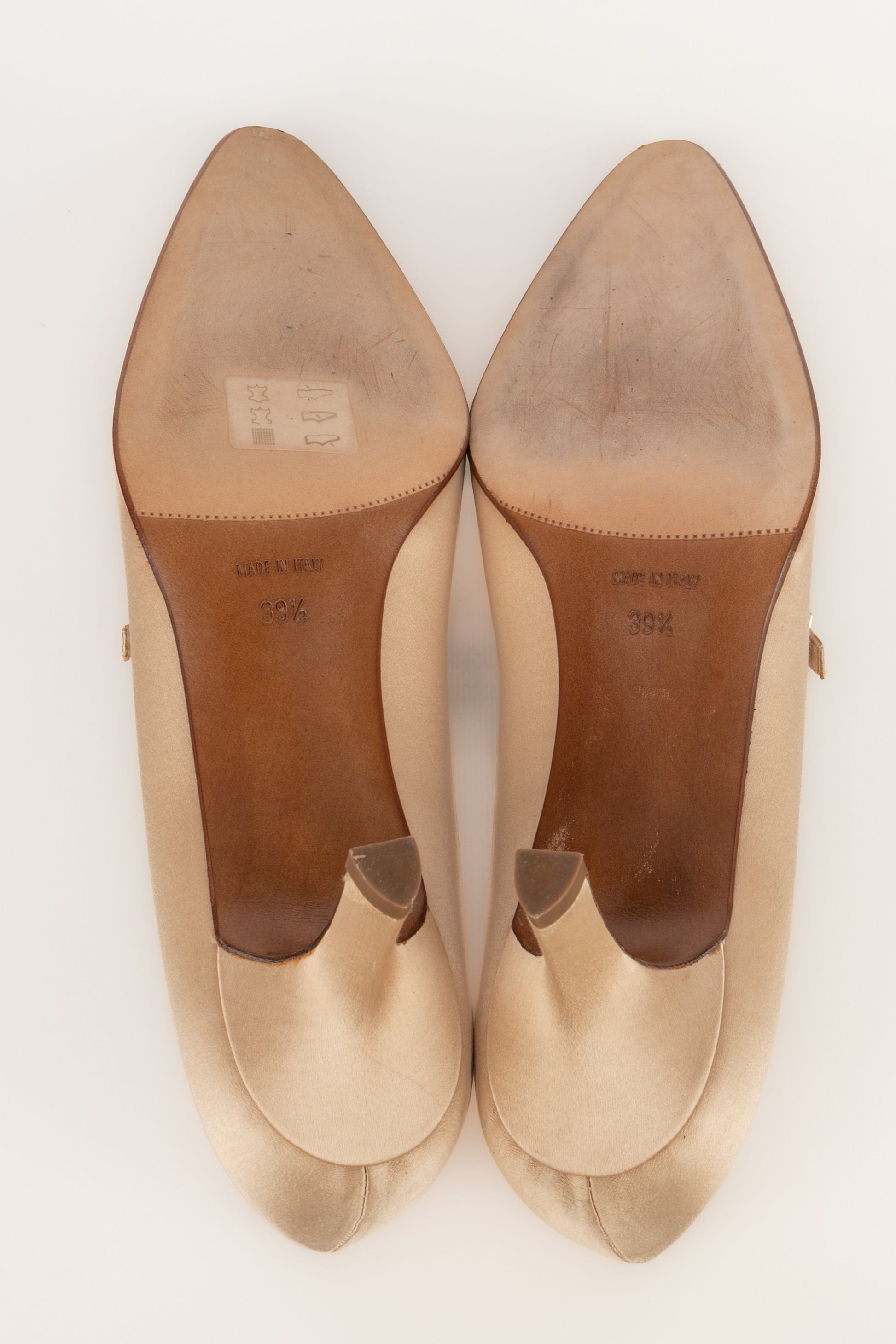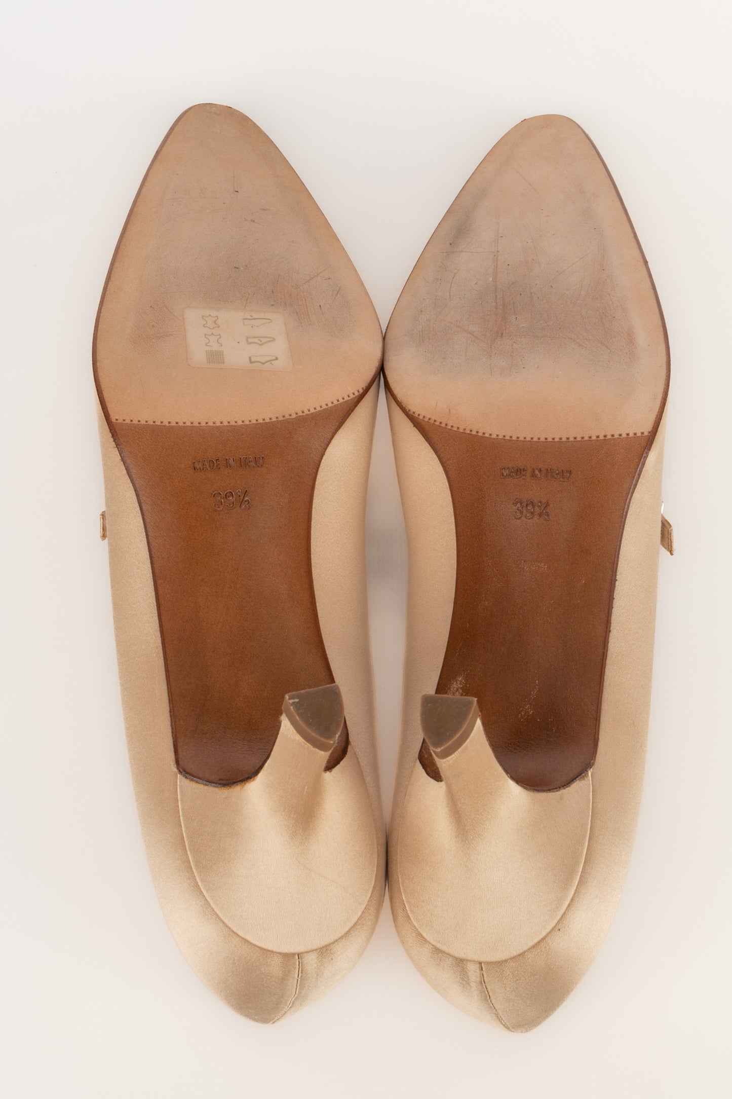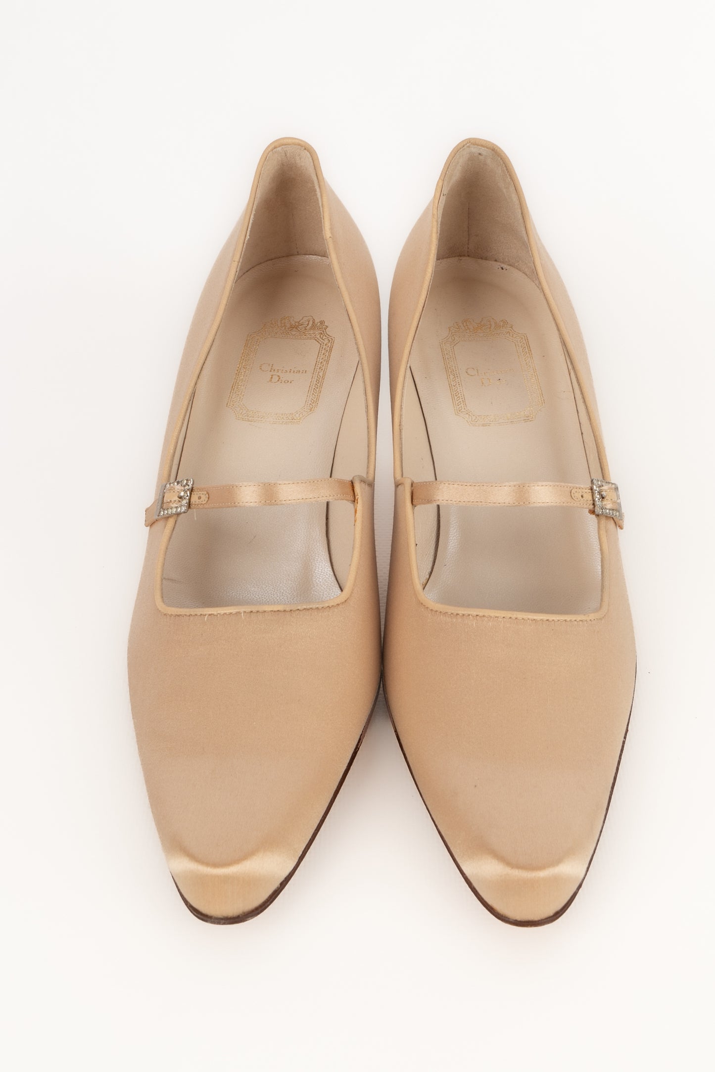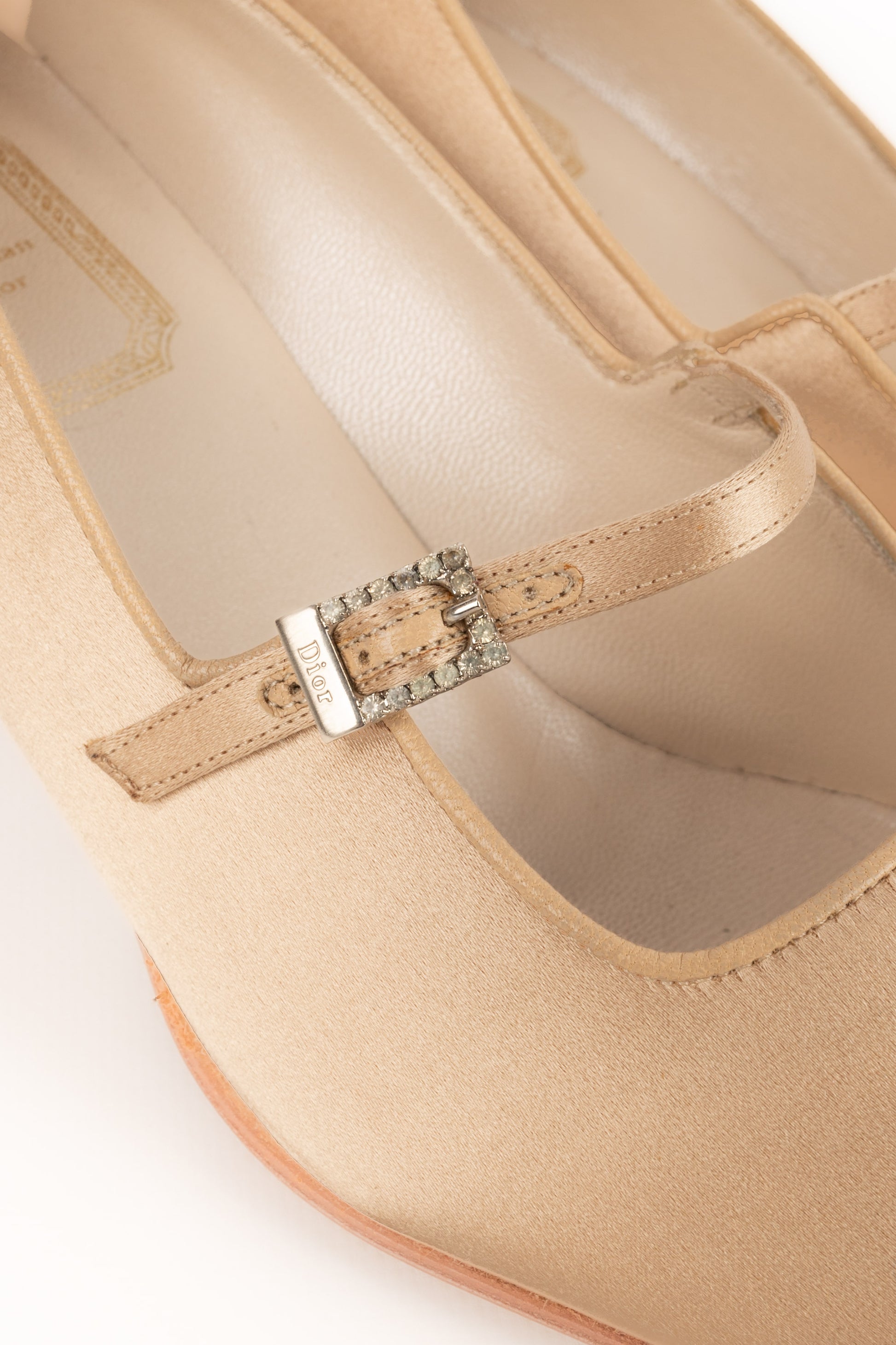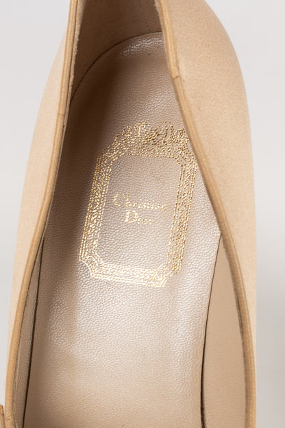 DIOR -(Made in Italy) Escarpins en satin beige et cuir.