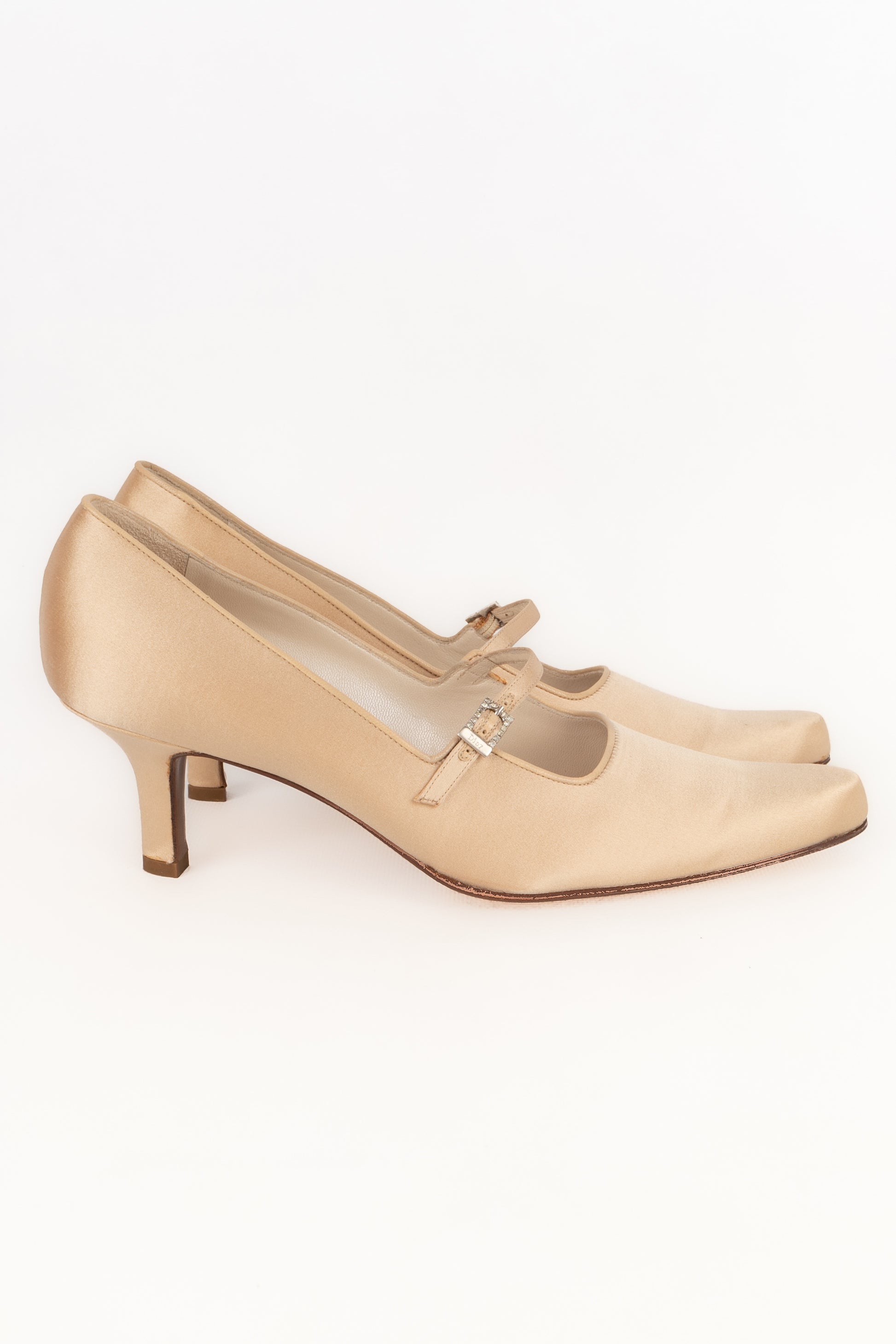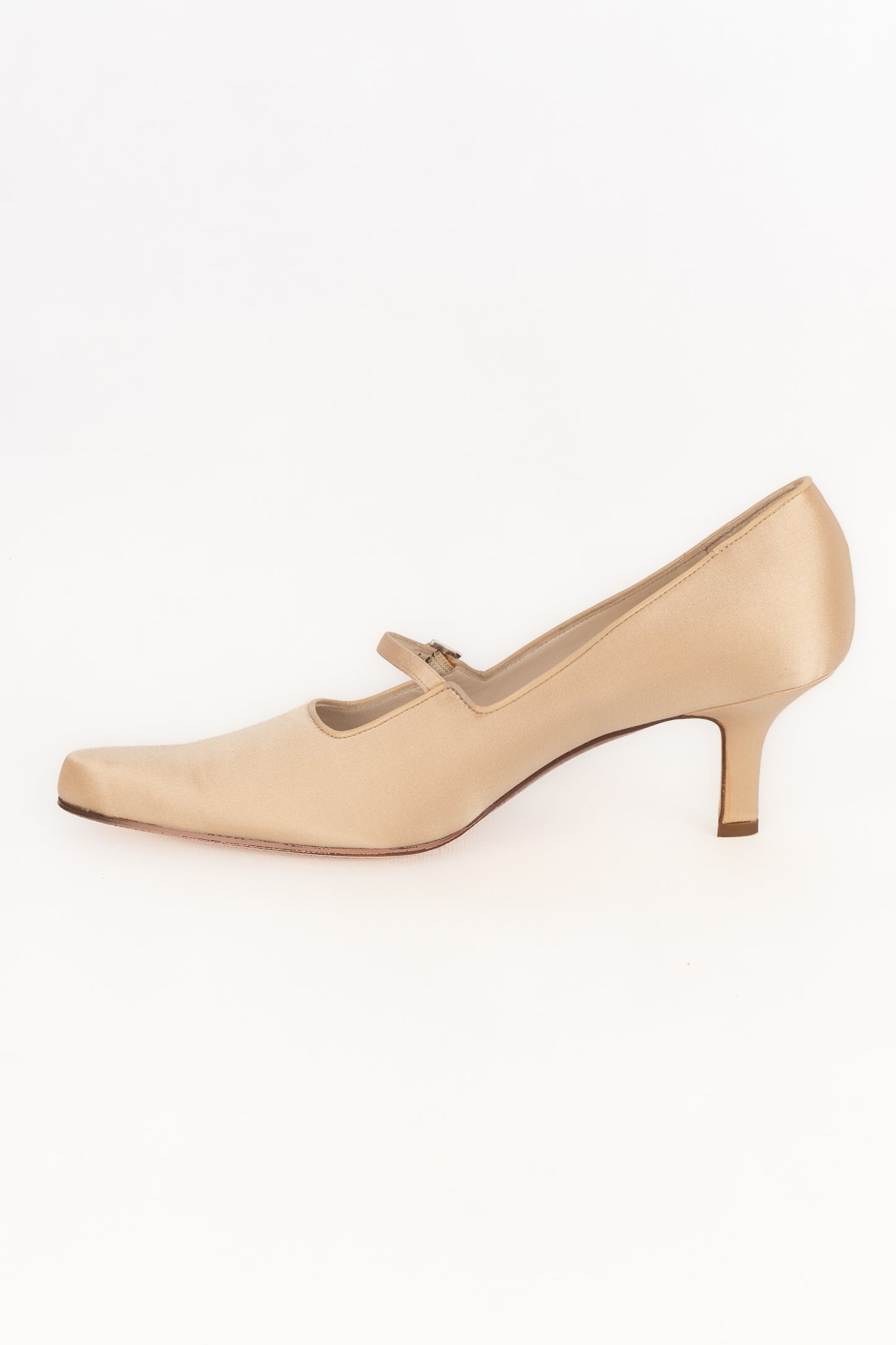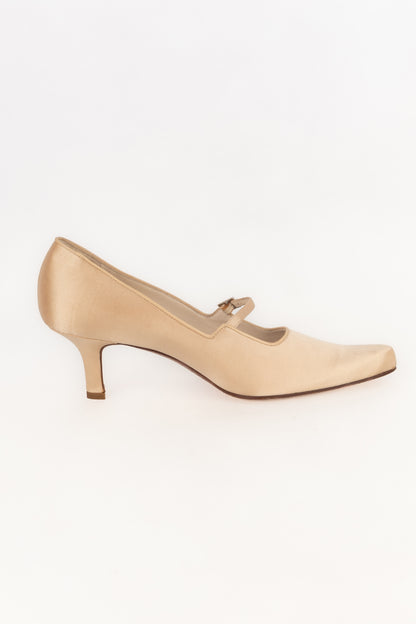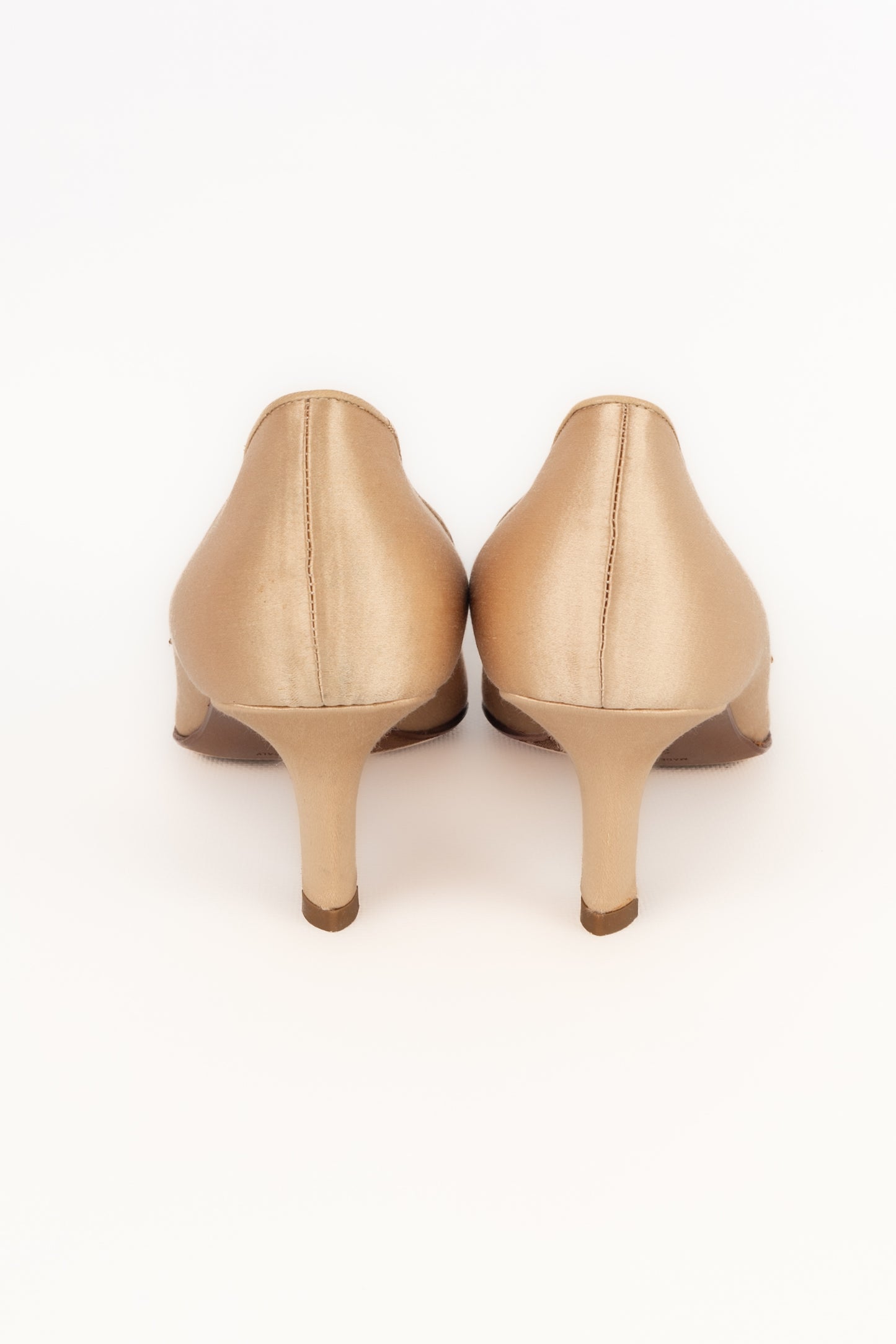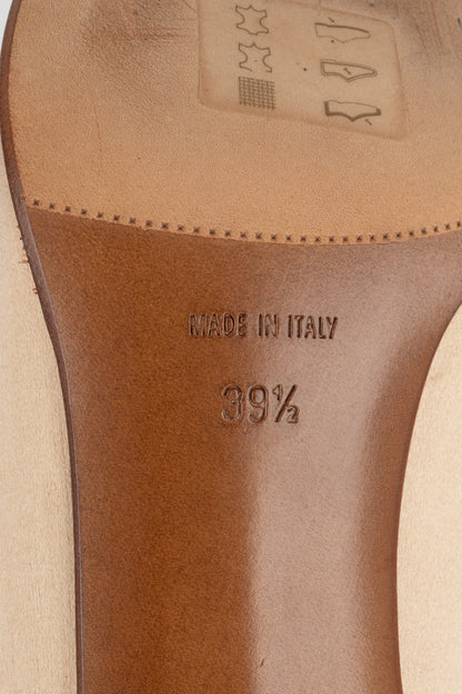 DIOR -(Made in Italy) Escarpins en satin beige et cuir.