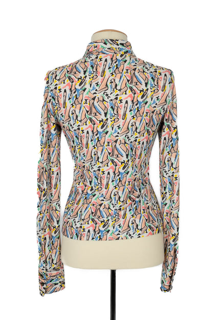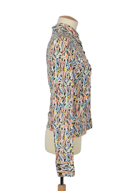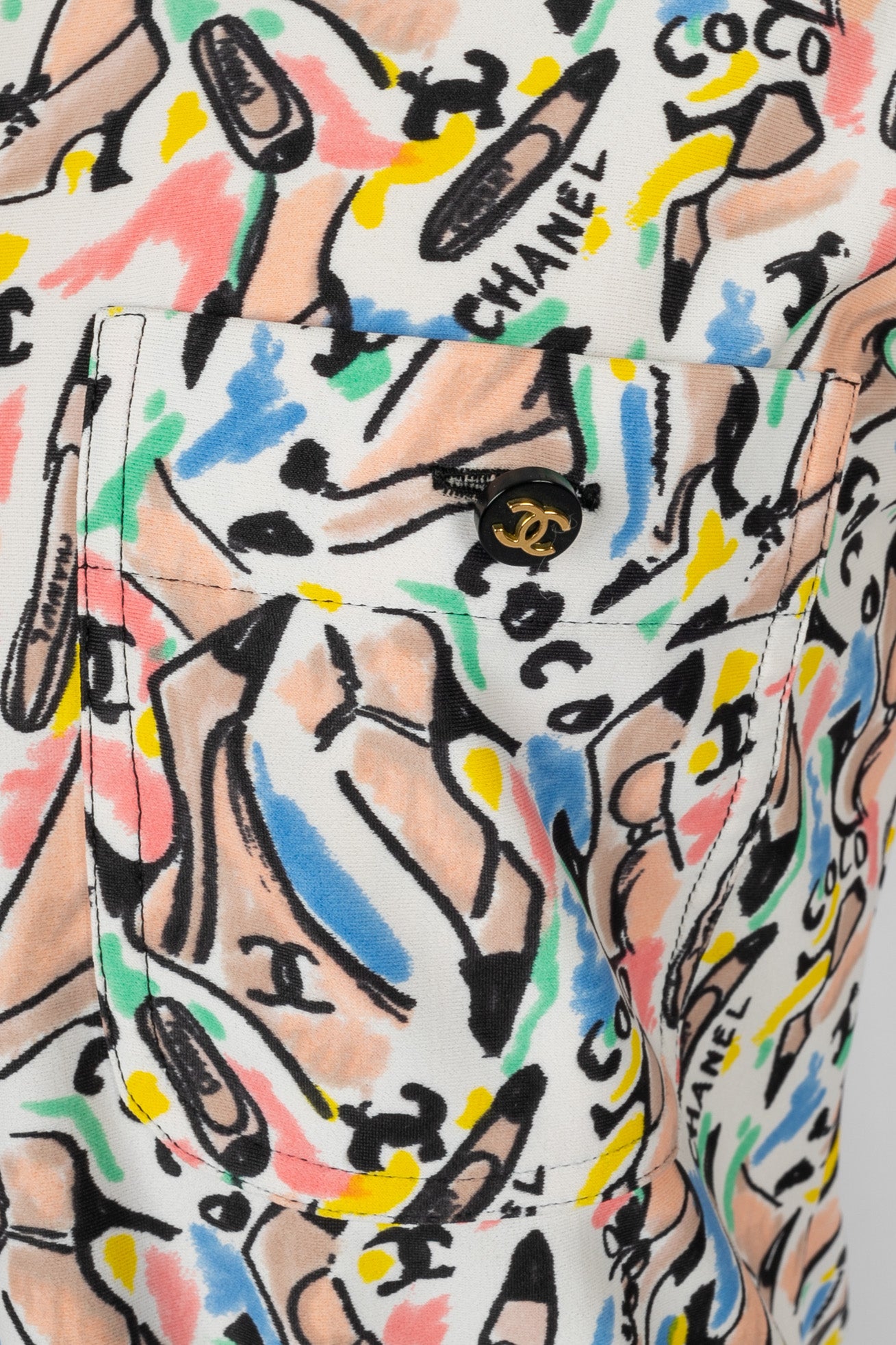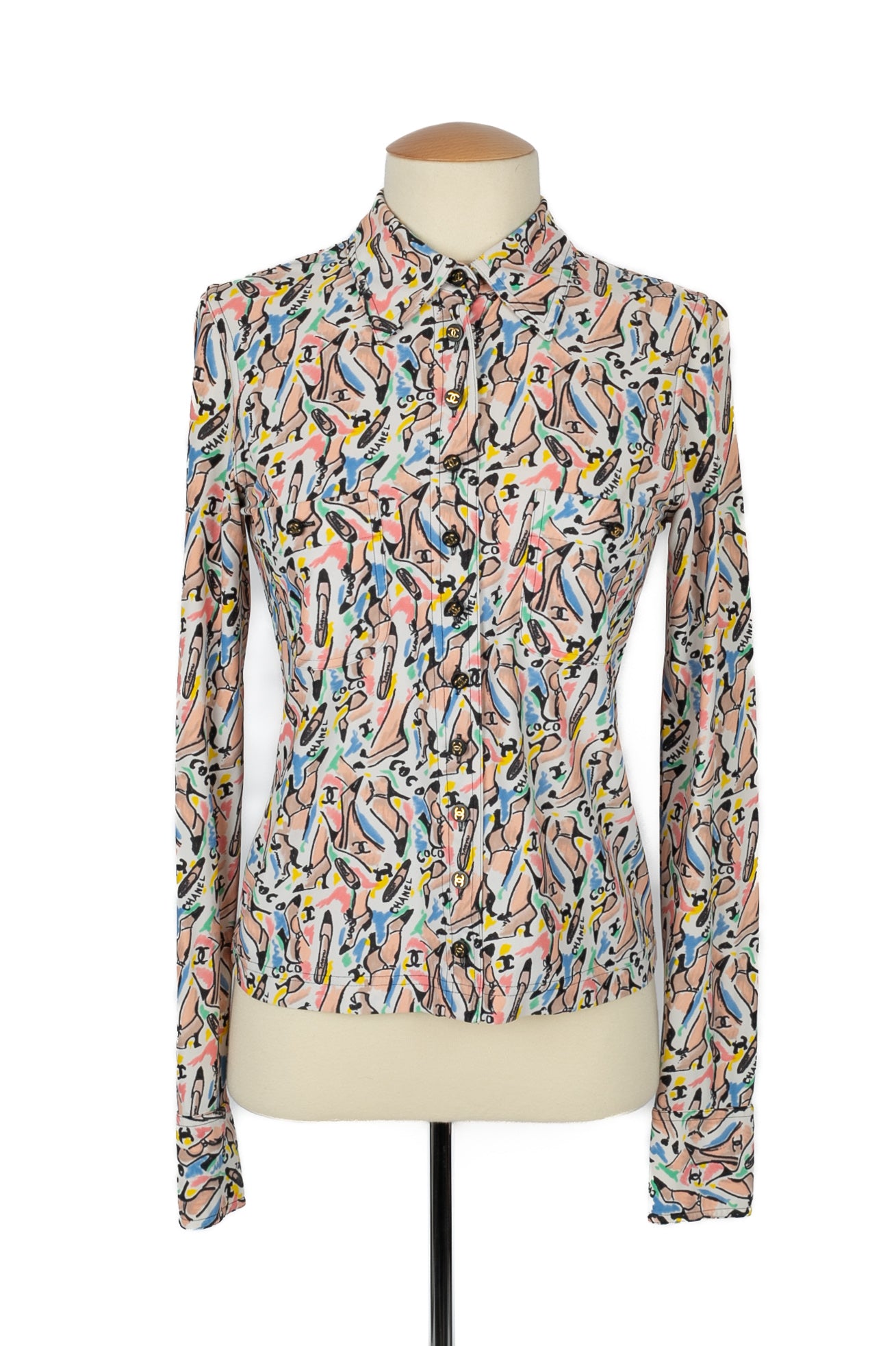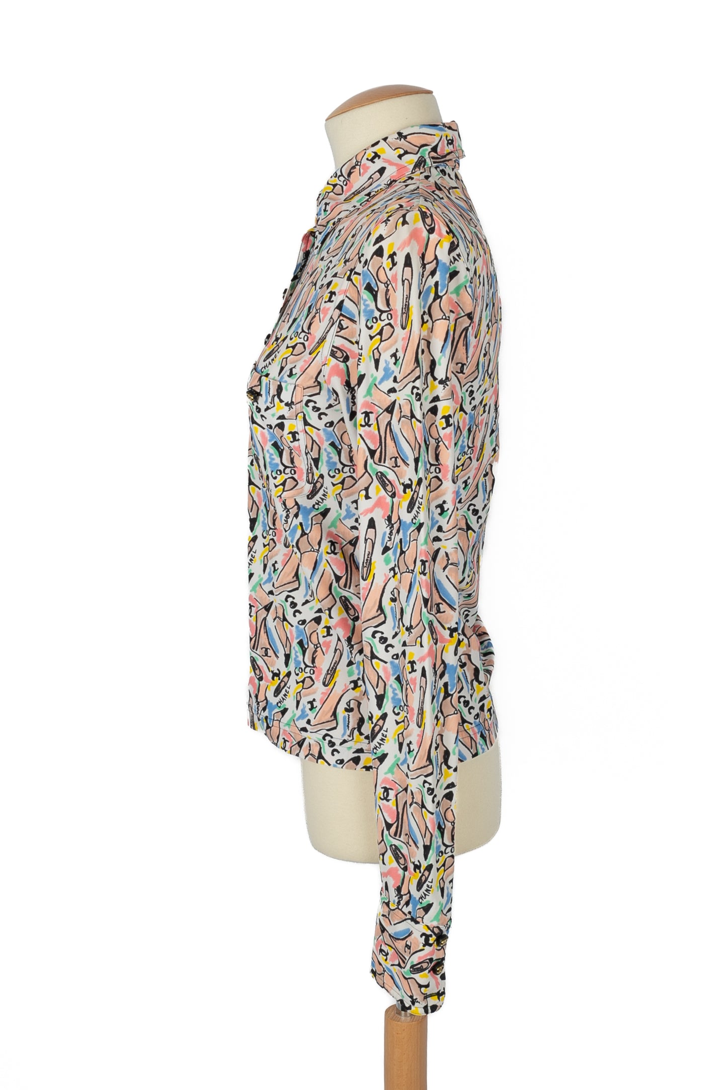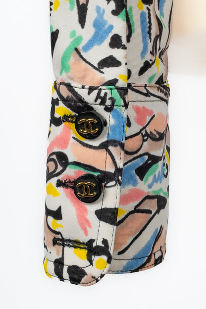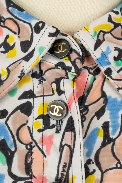 CHANEL - (Made in France) Chemise à motif multicolore. Pas de taille indiquée, elle convient à un 38FR/40FR. Collection Printemps-Eté 1995 sous la direction artistique de Karl Lagerfeld.