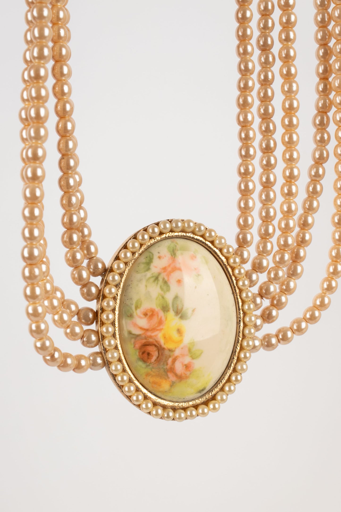 DIOR -(Made in France) Collier court composé de plusieurs rangs de perles nacrées fantaisies et de trois camées. Collection Printemps-Eté 1998 réalisé sous la direction artistique de John Galliano.