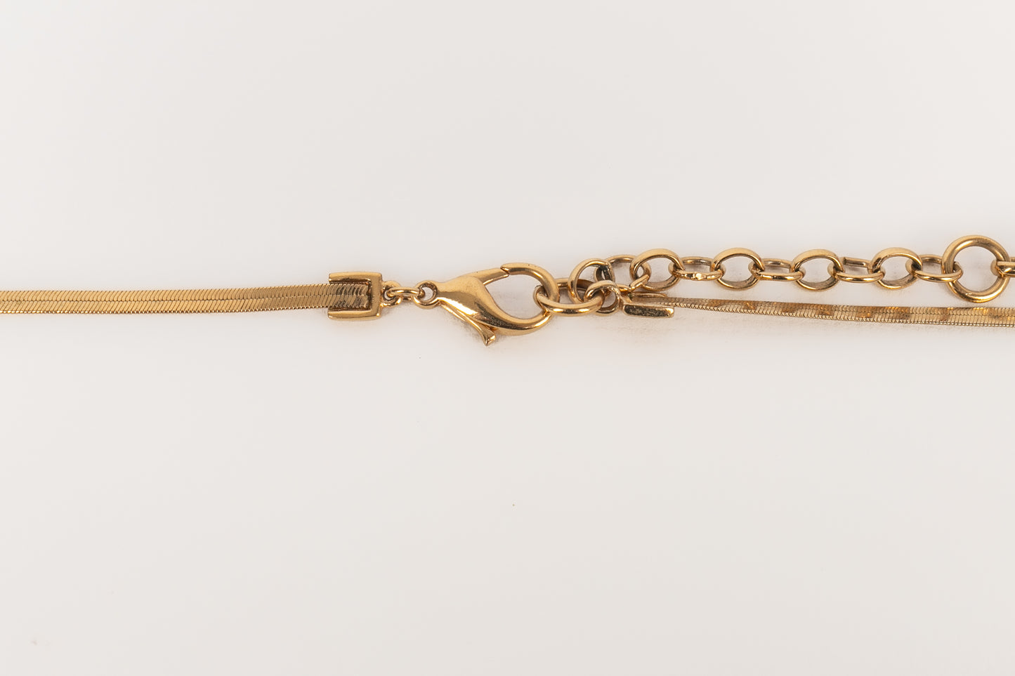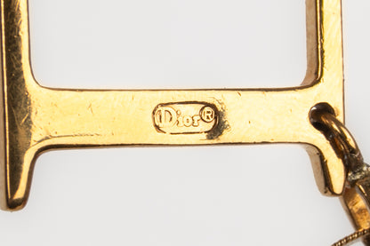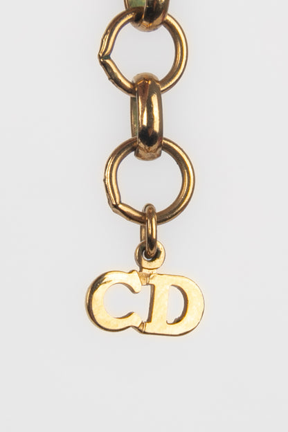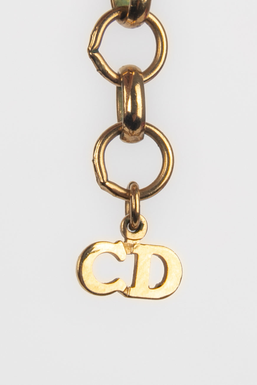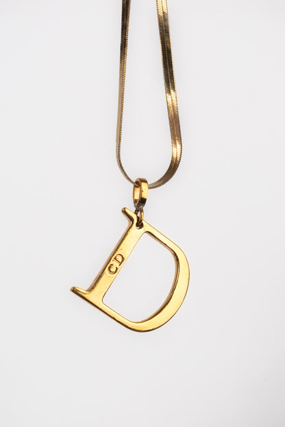 DIOR -Collier long en métal doré retenant un pendentif "D" en métal doré.