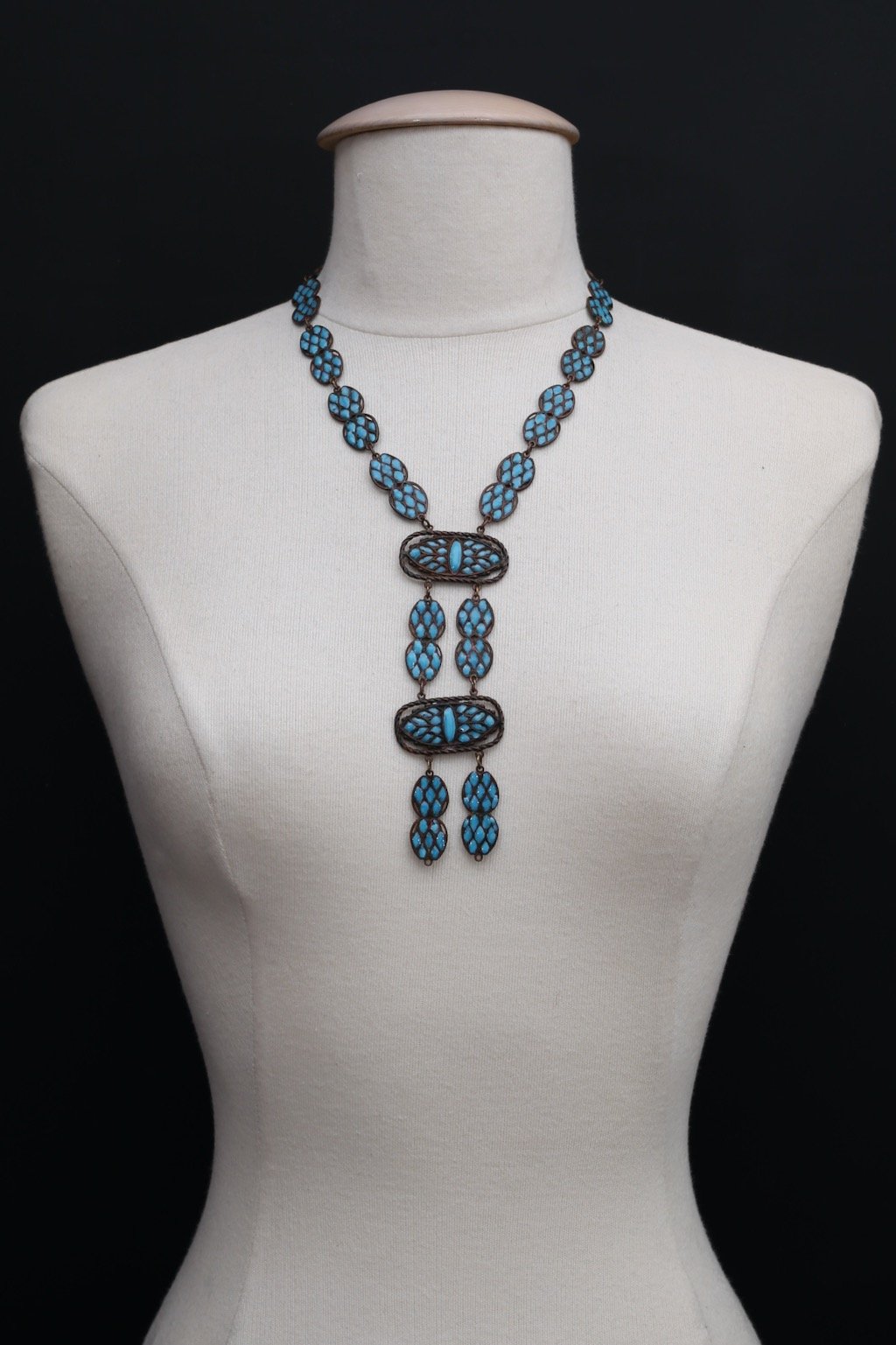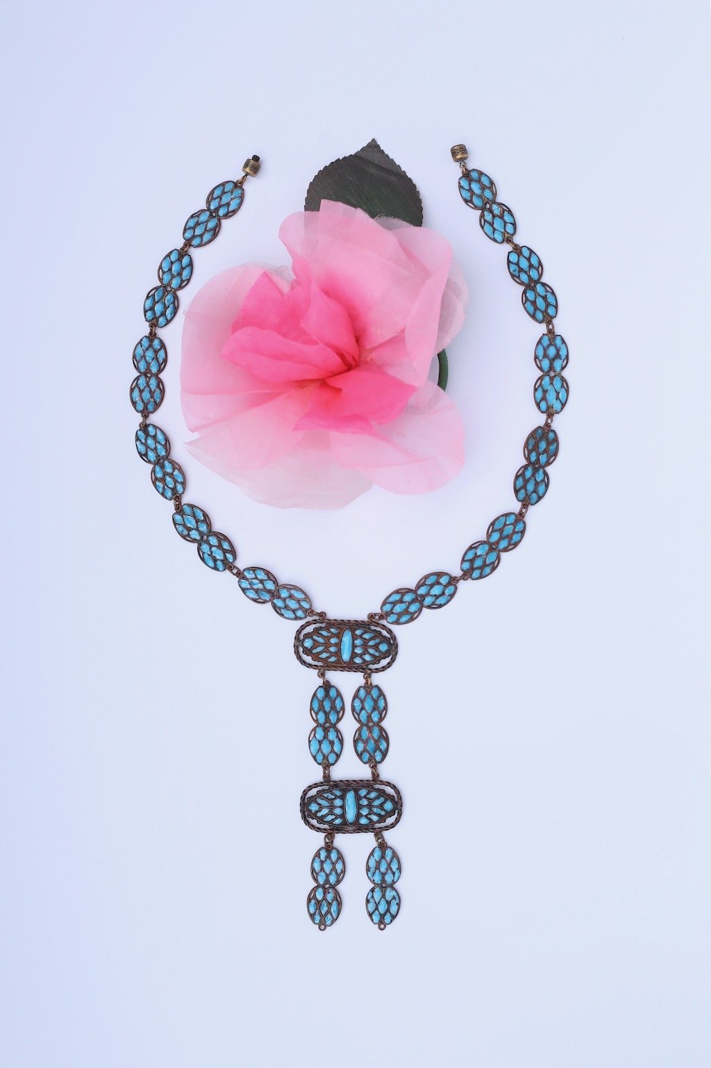 Des produits similaires à "Collier en pâte de verre turquoise 1925s"