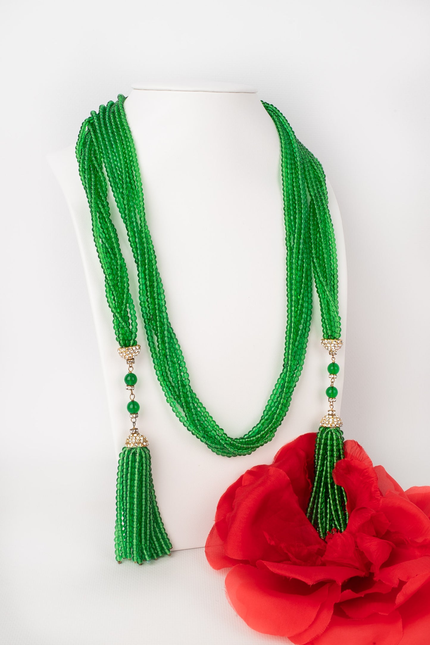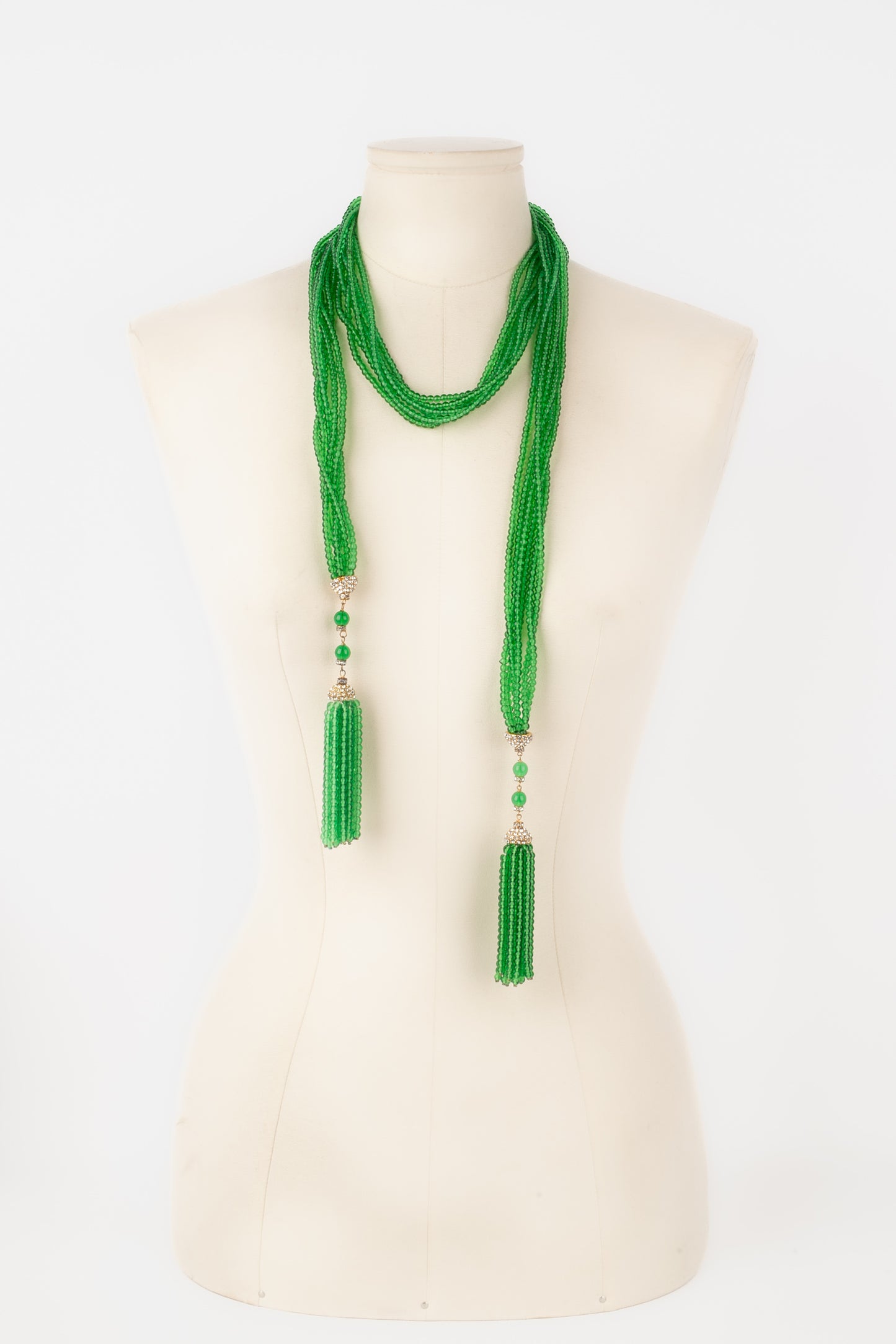 Collier en pâte de verre vert Gripoix