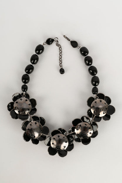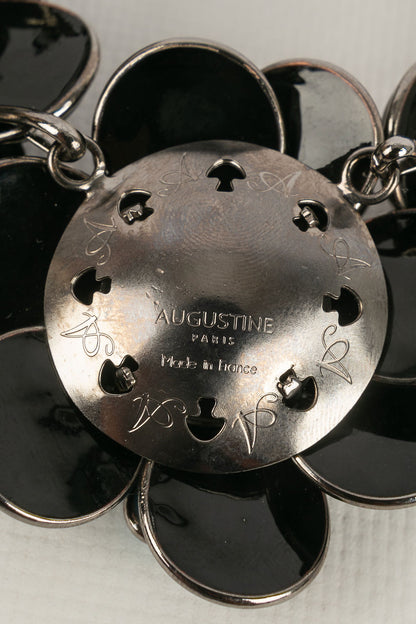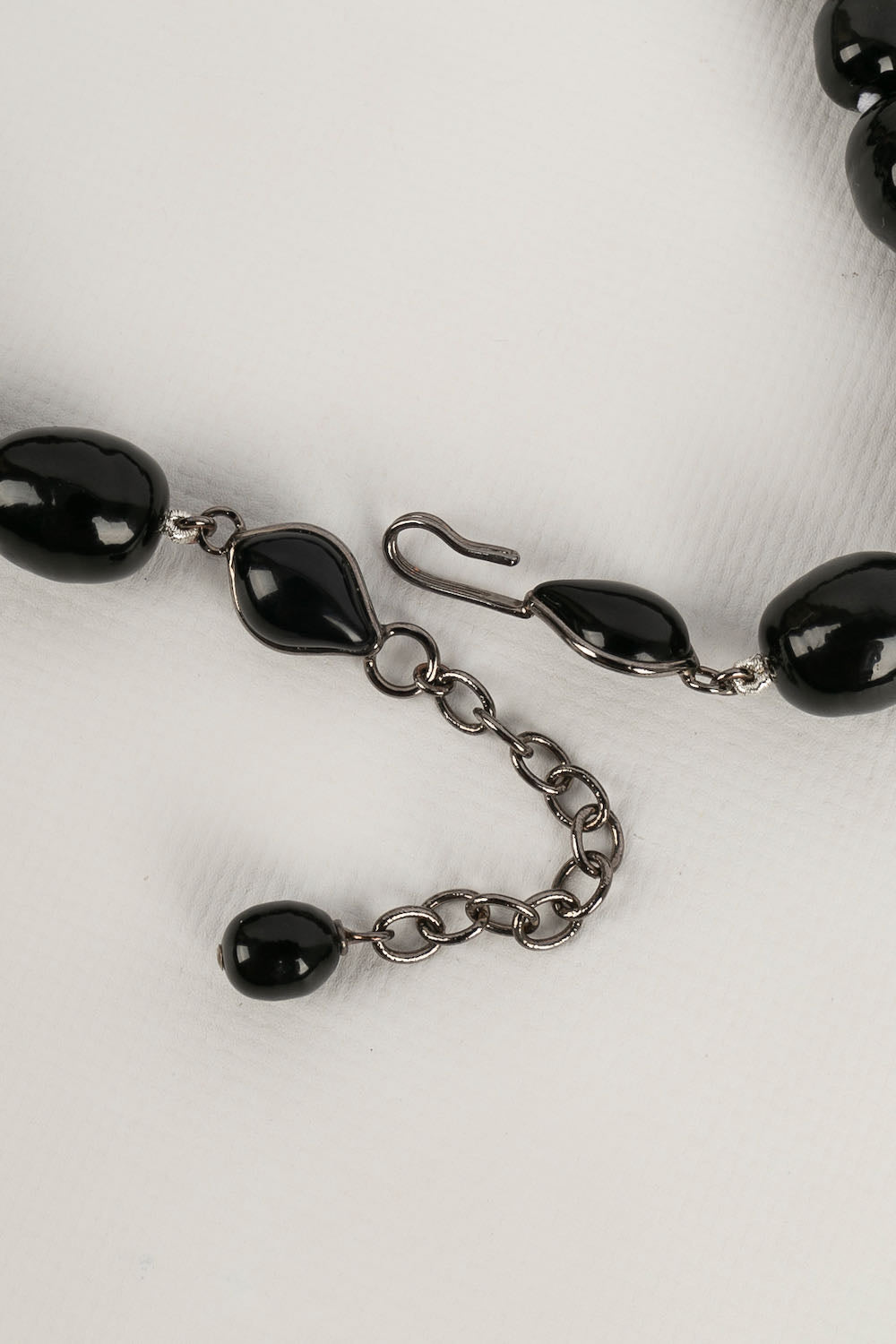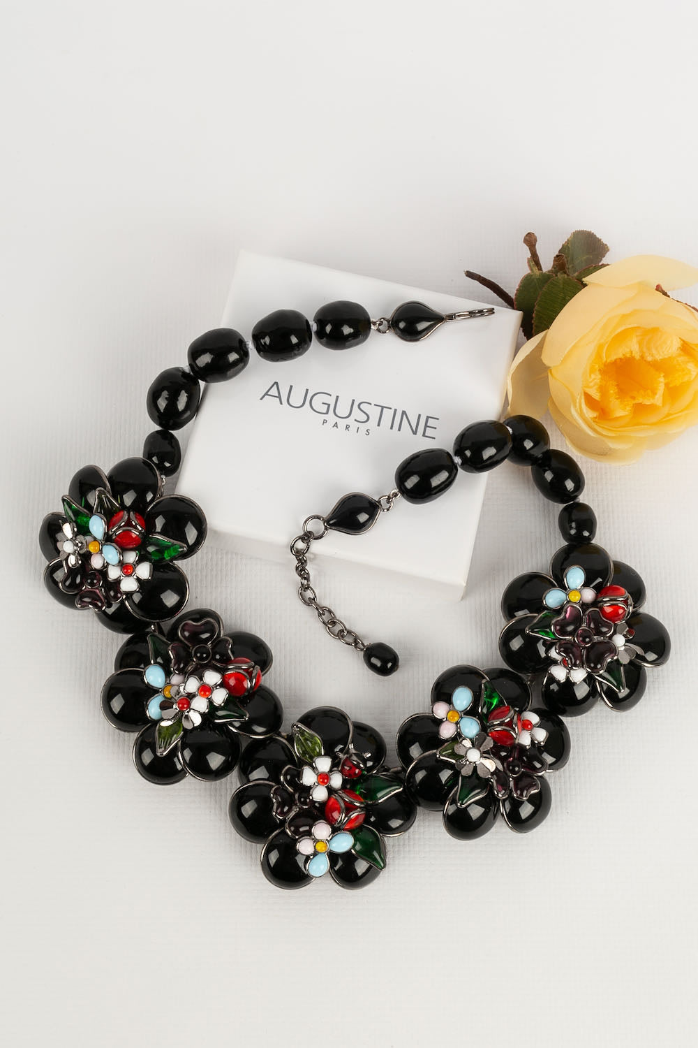 AUGUSTINE -(Made in France) Collier en métal argenté et pâte de verre noir.